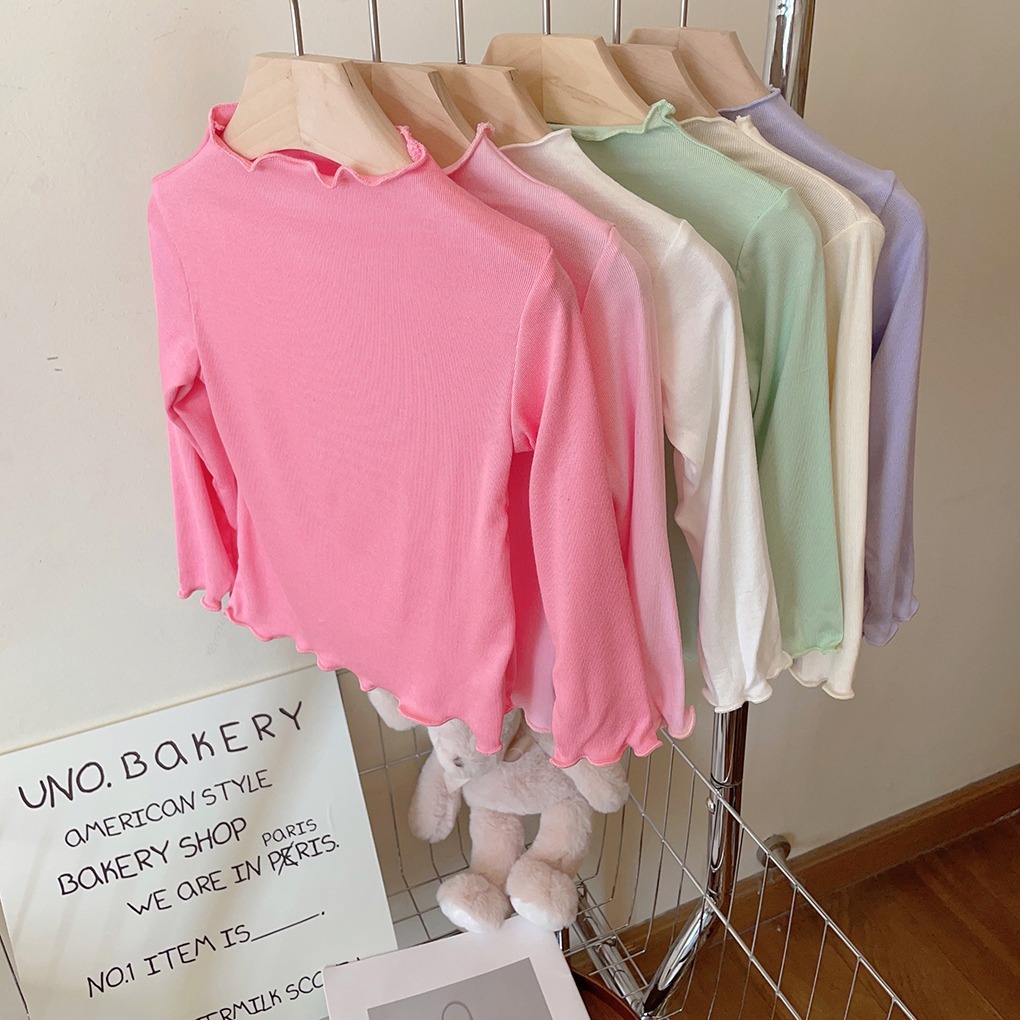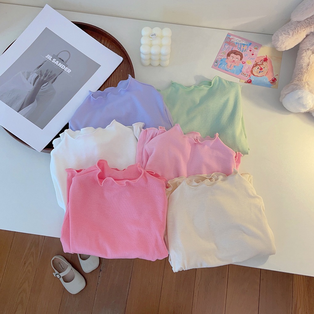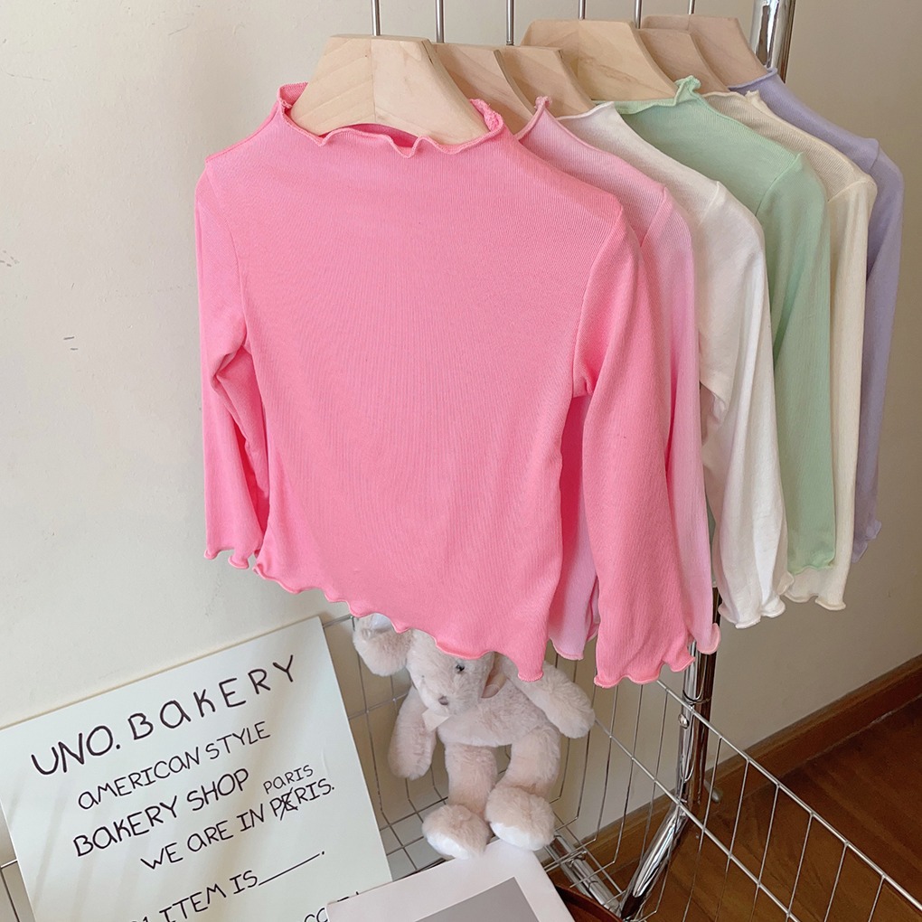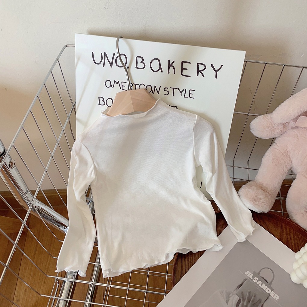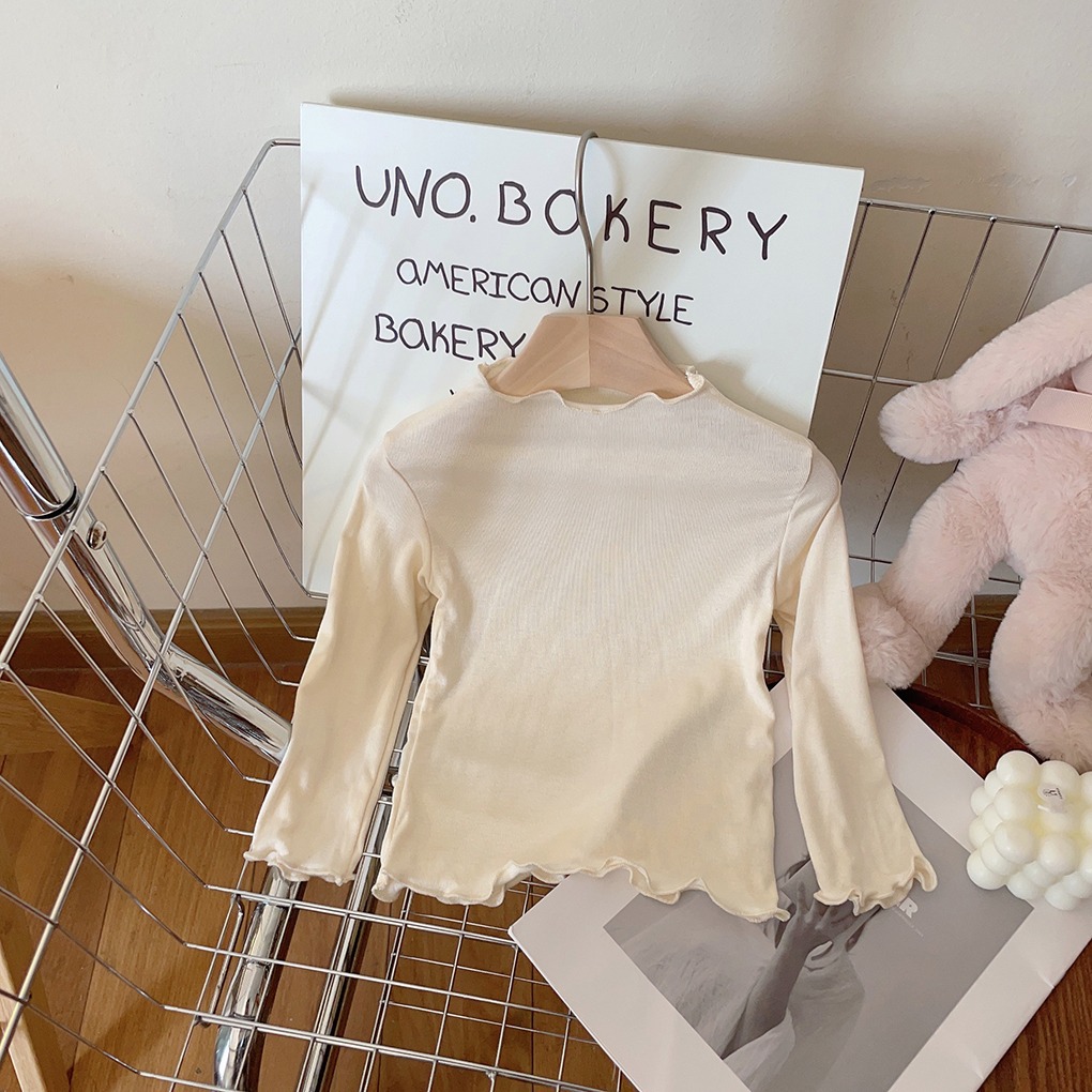 아동용 세미 하이 칼라 베이스 셔츠 2023 봄과 가을 다용도 우드 이어 탑 여아 솔리드 컬러 내부 티셔츠