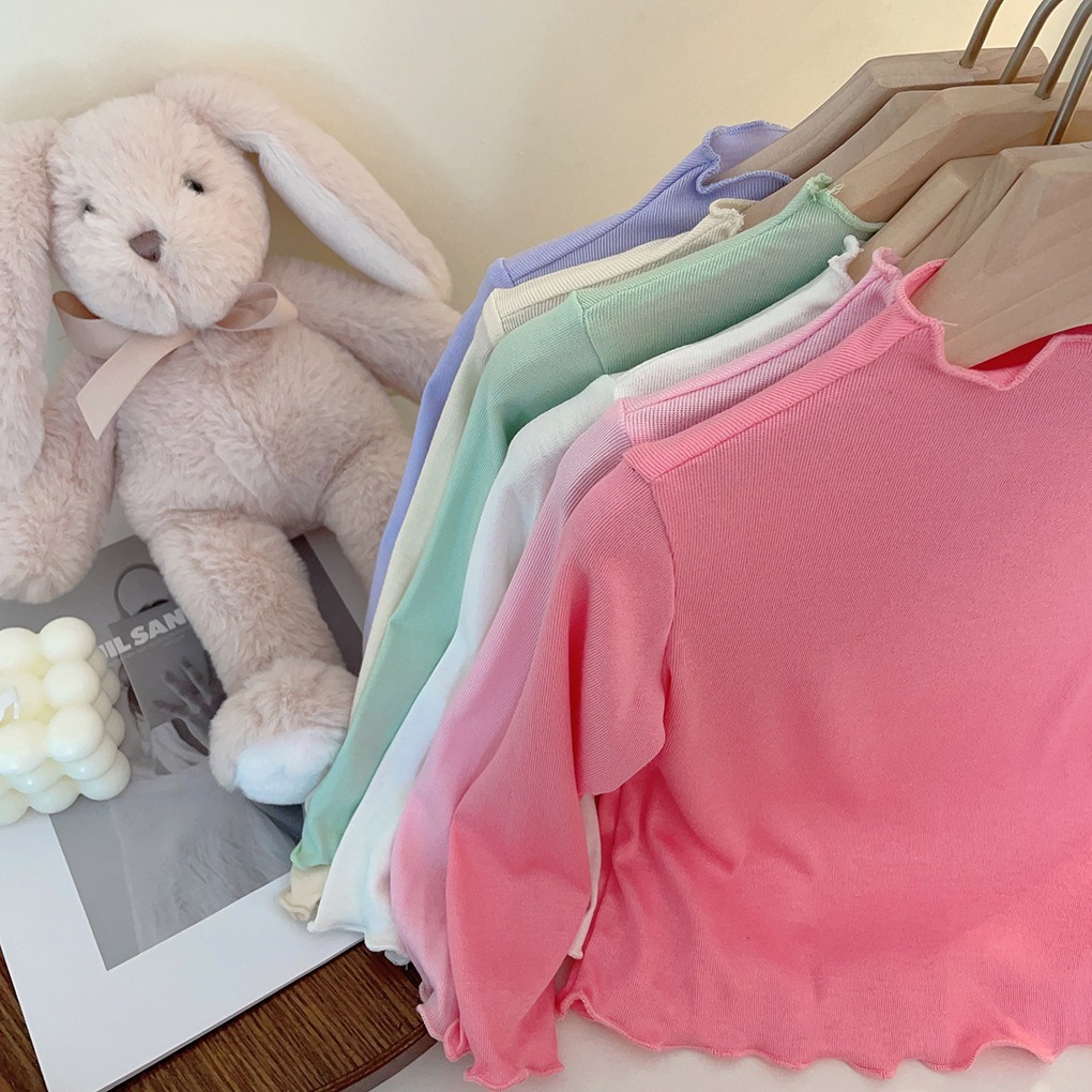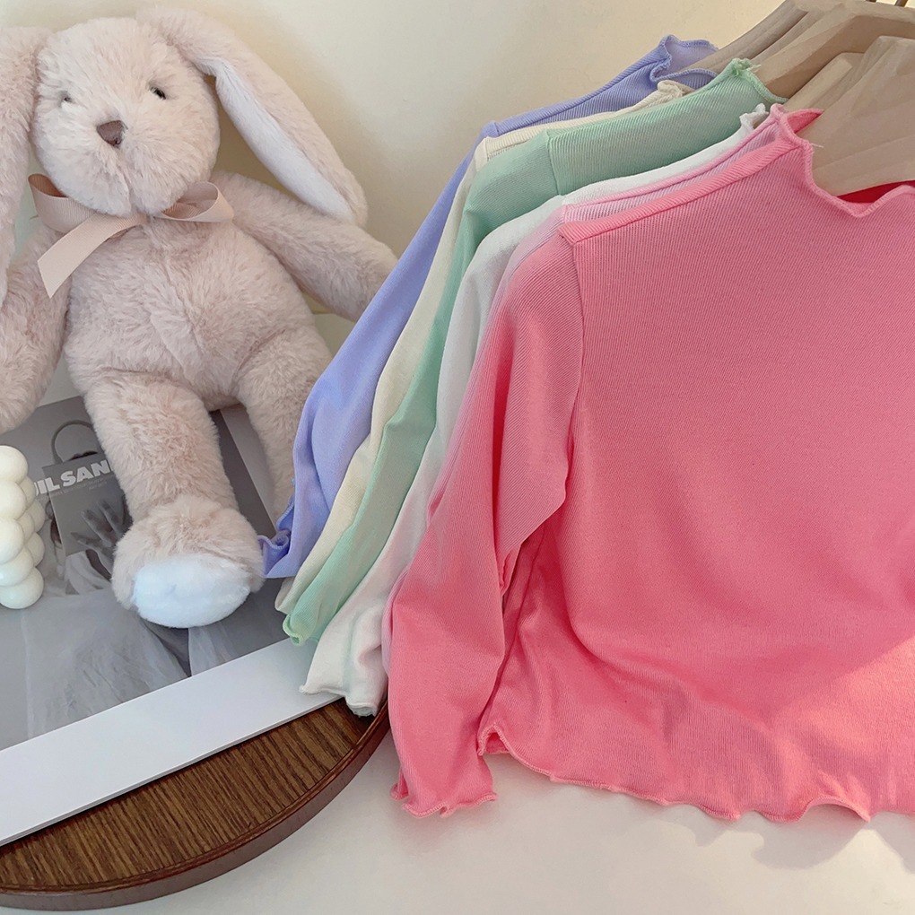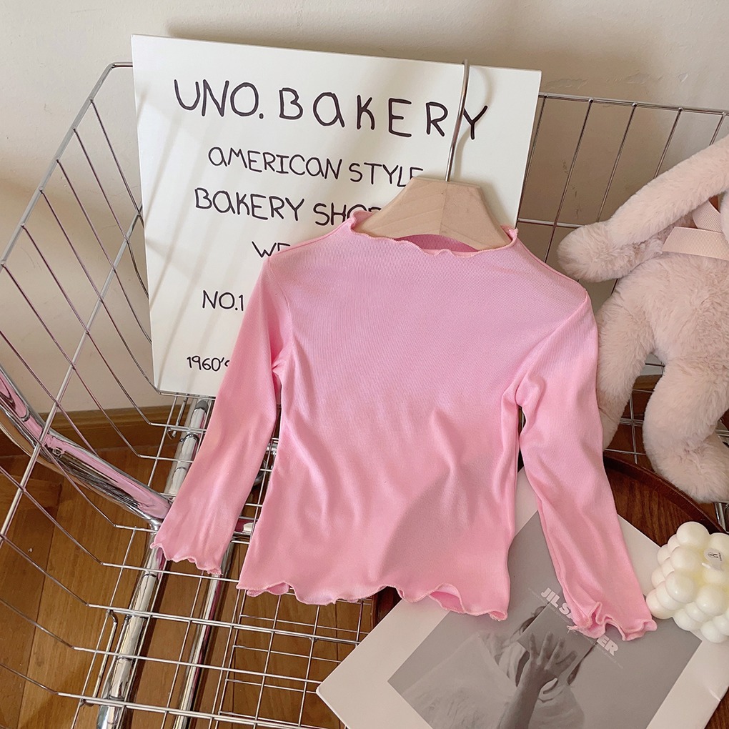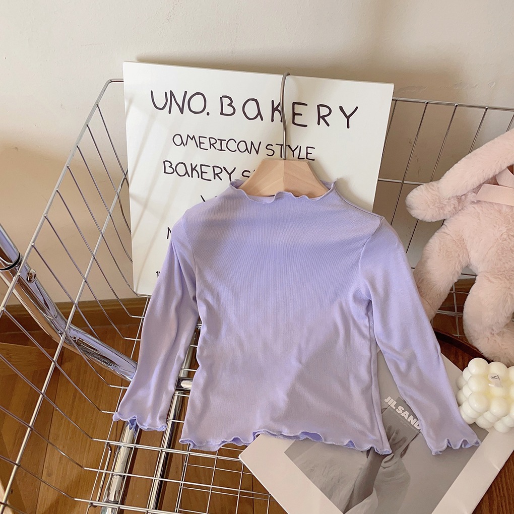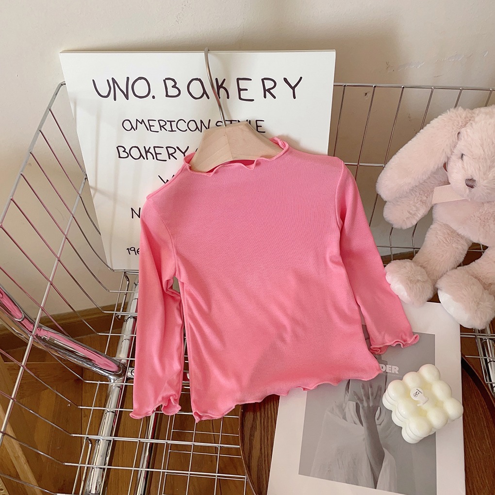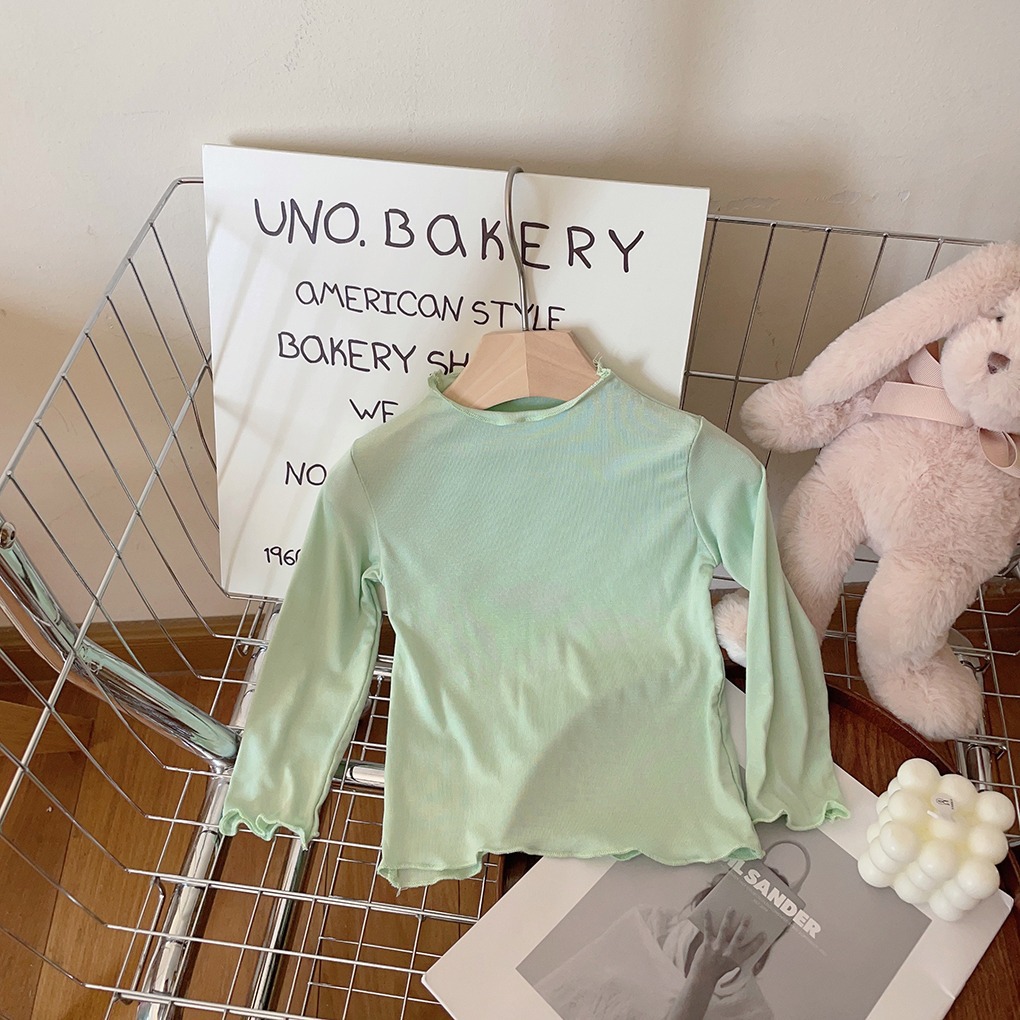 아동용 세미 하이 칼라 베이스 셔츠 2023 봄과 가을 다용도 우드 이어 탑 여아 솔리드 컬러 내부 티셔츠