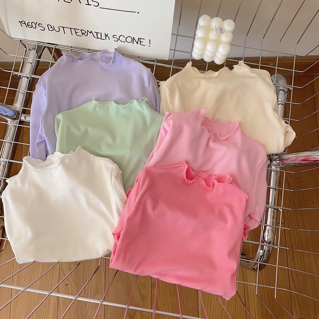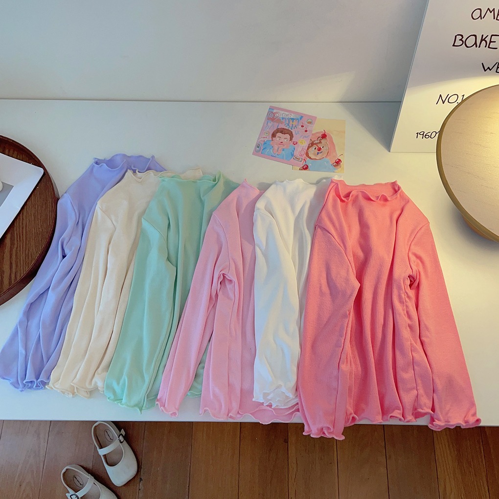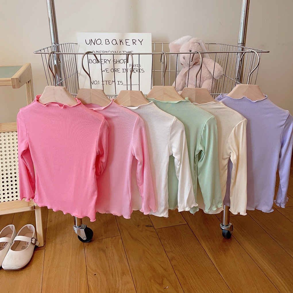 아동용 세미 하이 칼라 베이스 셔츠 2023 봄과 가을 다용도 우드 이어 탑 여아 솔리드 컬러 내부 티셔츠스토어 가기