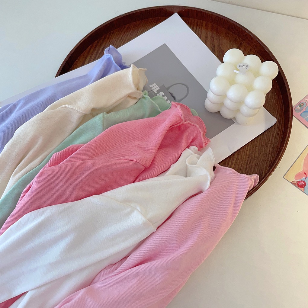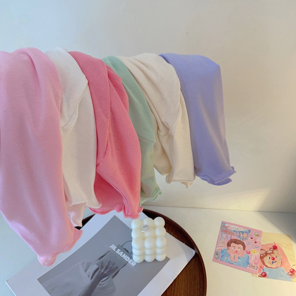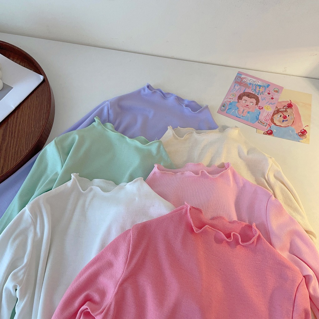 아동용 세미 하이 칼라 베이스 셔츠 2023 봄과 가을 다용도 우드 이어 탑 여아 솔리드 컬러 내부 티셔츠스토어 가기