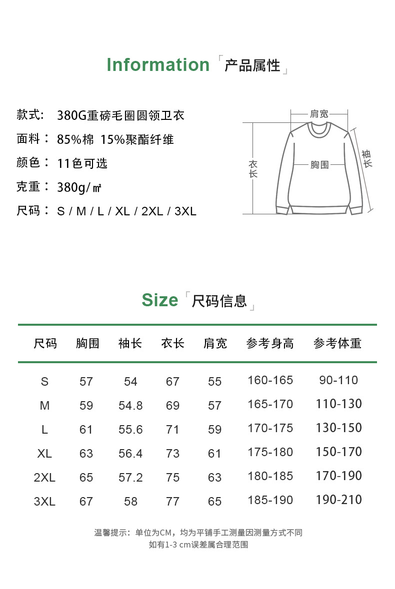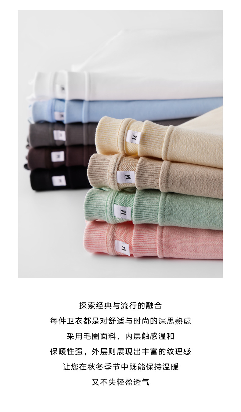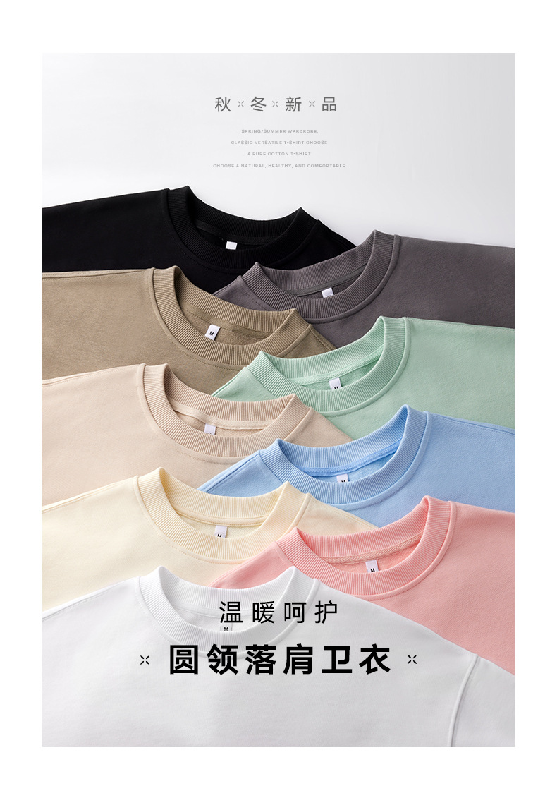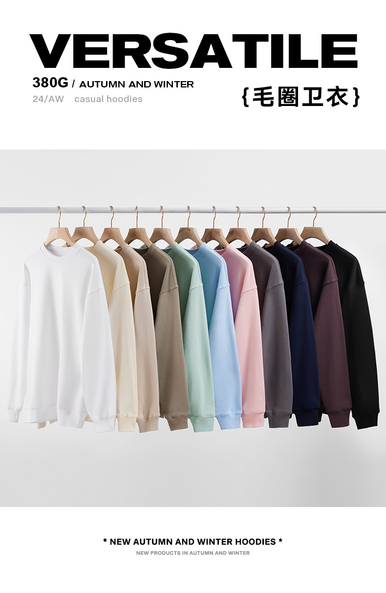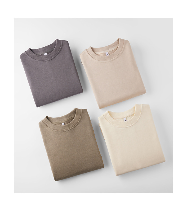 380g 헤비웨이트 테리 남성용 루즈 풀오버 라운드 넥 스웨트셔츠, 초가을 루즈한 긴팔 오프숄더 가을 겨울 베이스 레이어스토어 가기