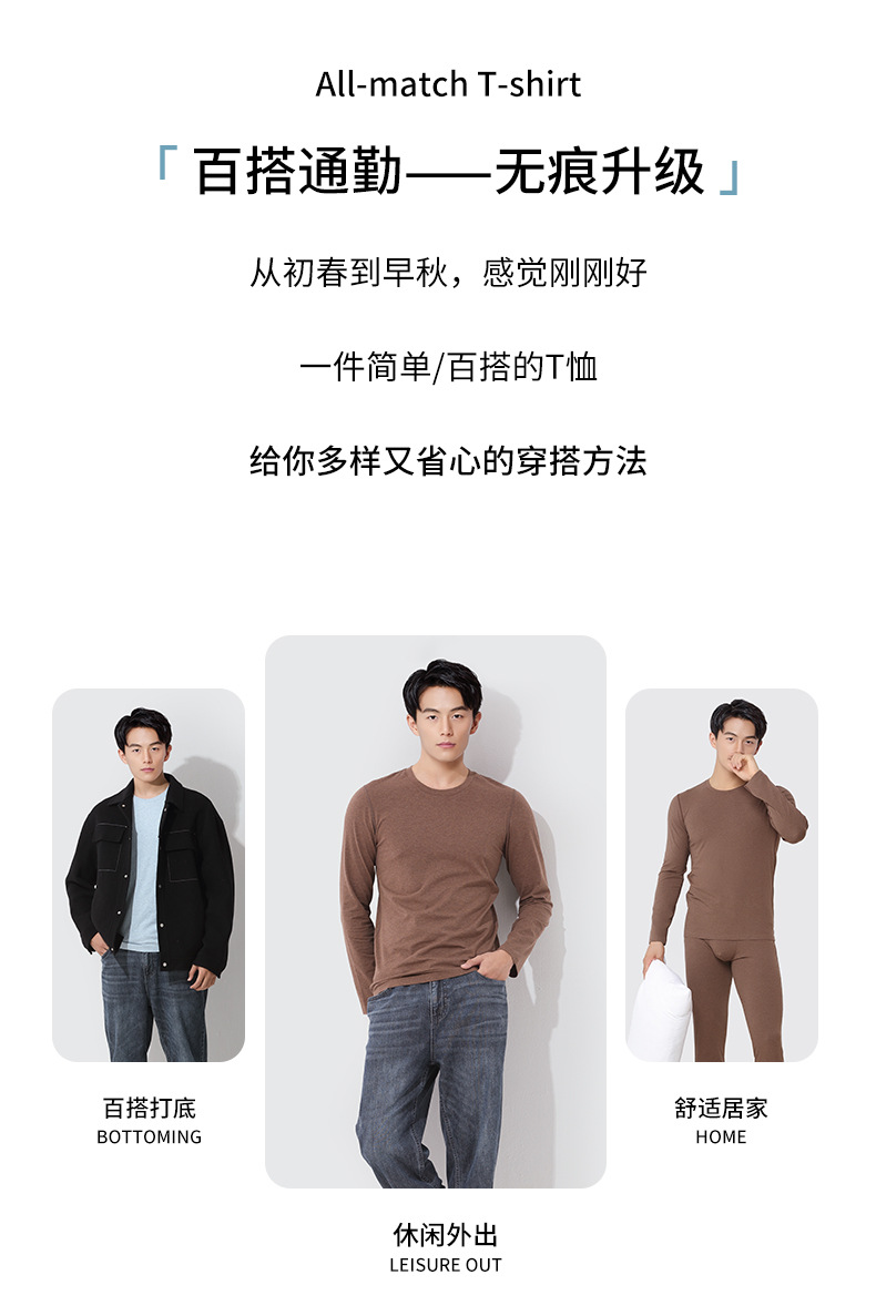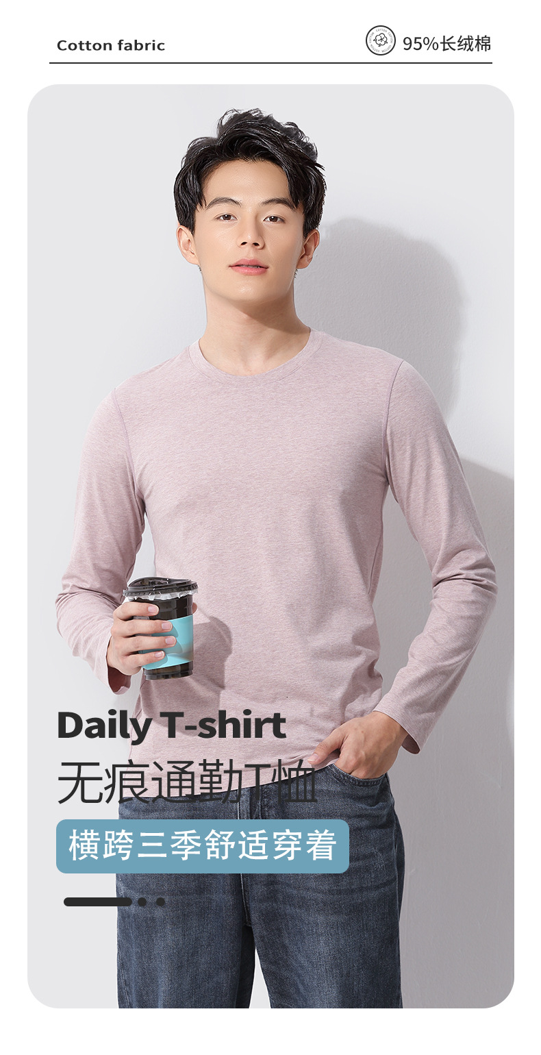 새로운 무봉제 컬러 코튼 봄, 가을, 겨울 남성용 이너웨어 긴팔 상의 반팔 캐주얼 라운드넥 티셔츠 재고 있음스토어 가기