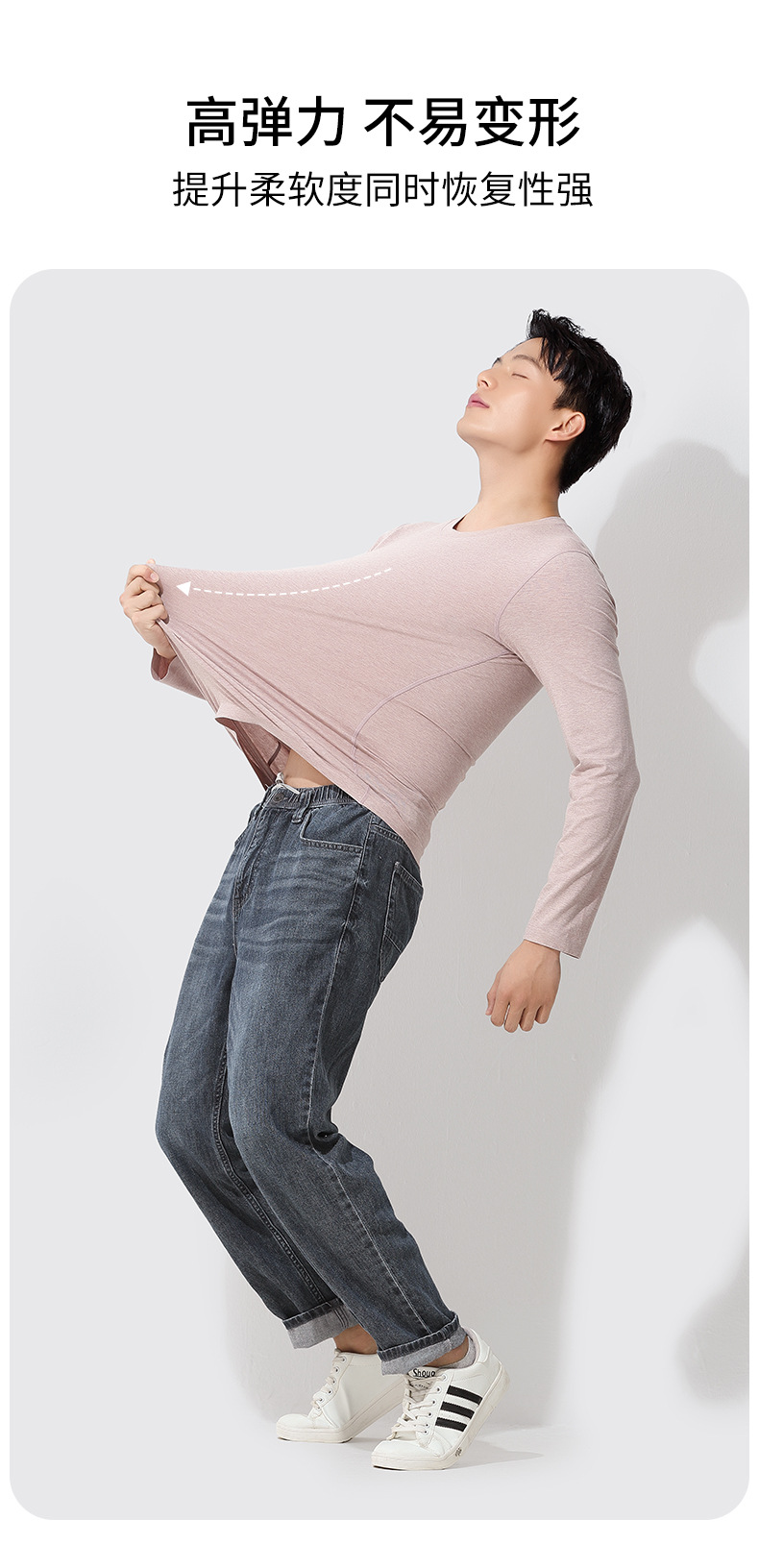 새로운 무봉제 컬러 코튼 봄, 가을, 겨울 남성용 이너웨어 긴팔 상의 반팔 캐주얼 라운드넥 티셔츠 재고 있음