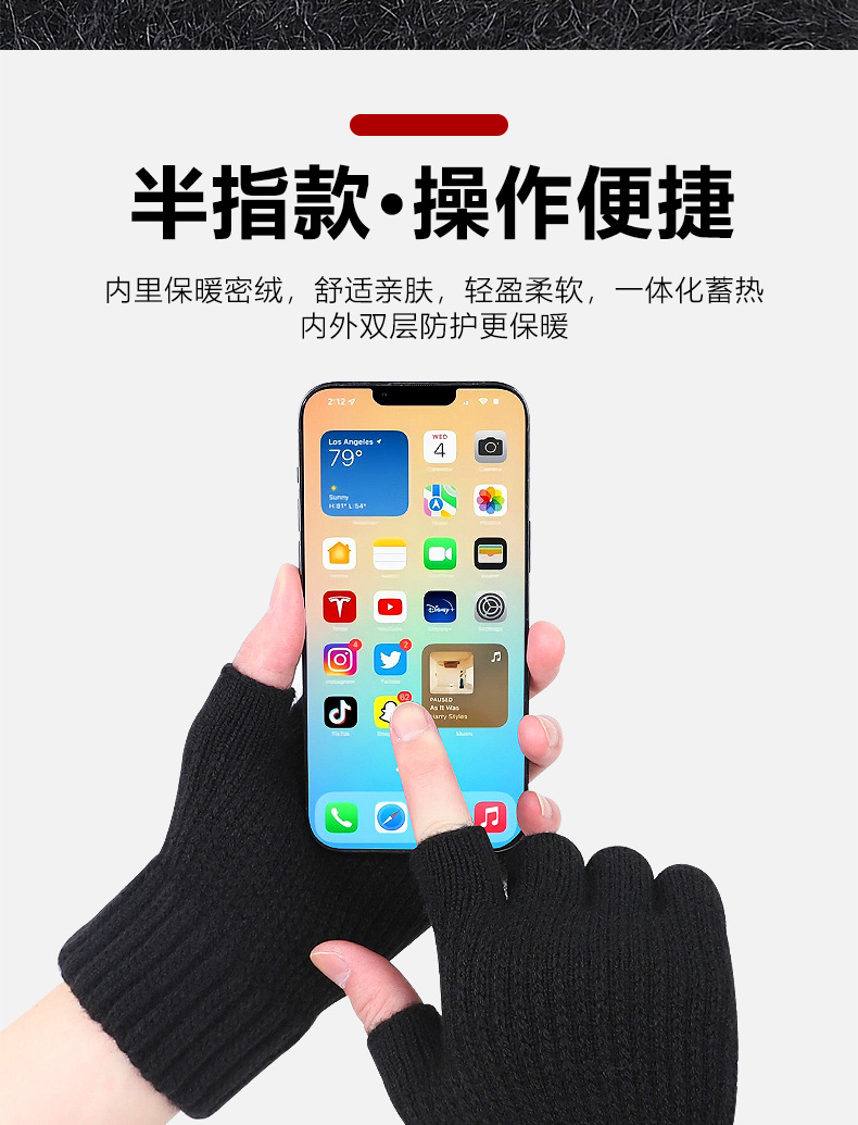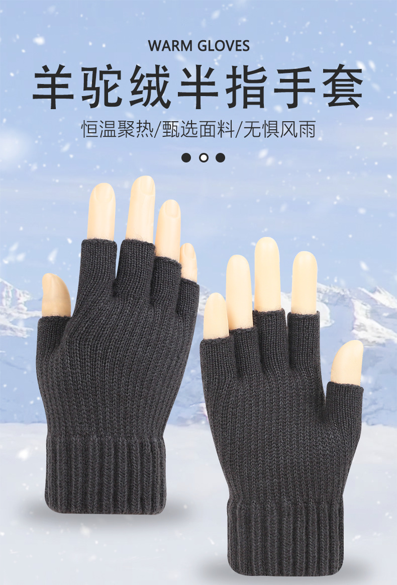 알파카 울 남성과 여성의 반 손가락 장갑 가을과 겨울 기모 두꺼운 차가운 따뜻한 니트 장갑 공장 직접 재고스토어 가기