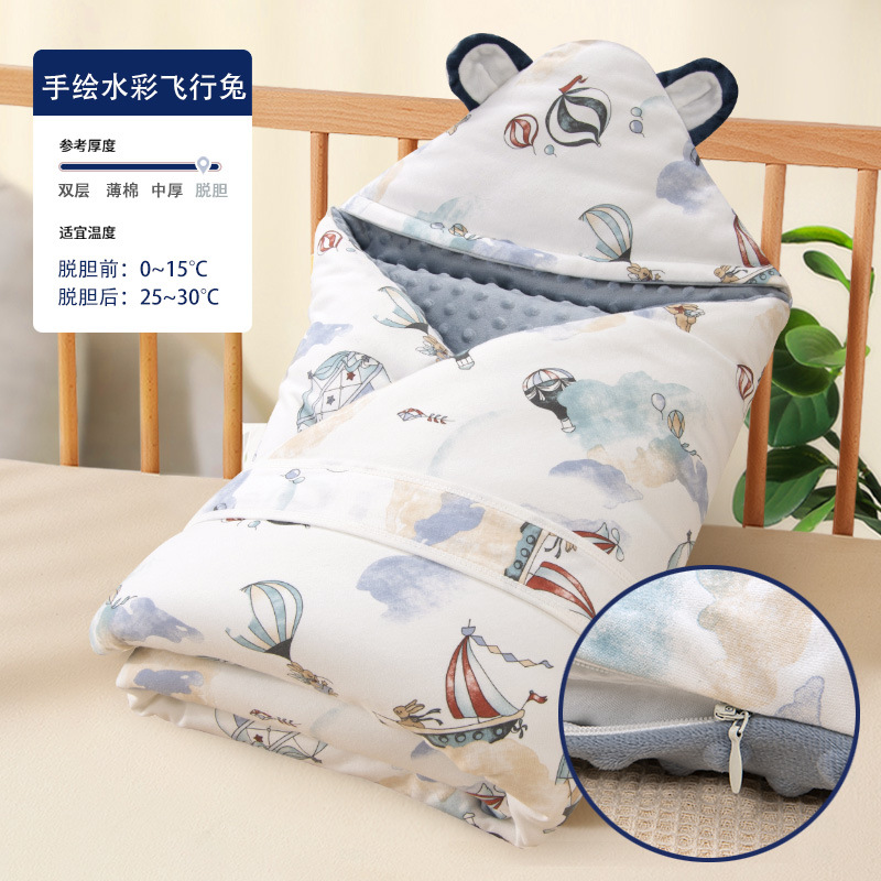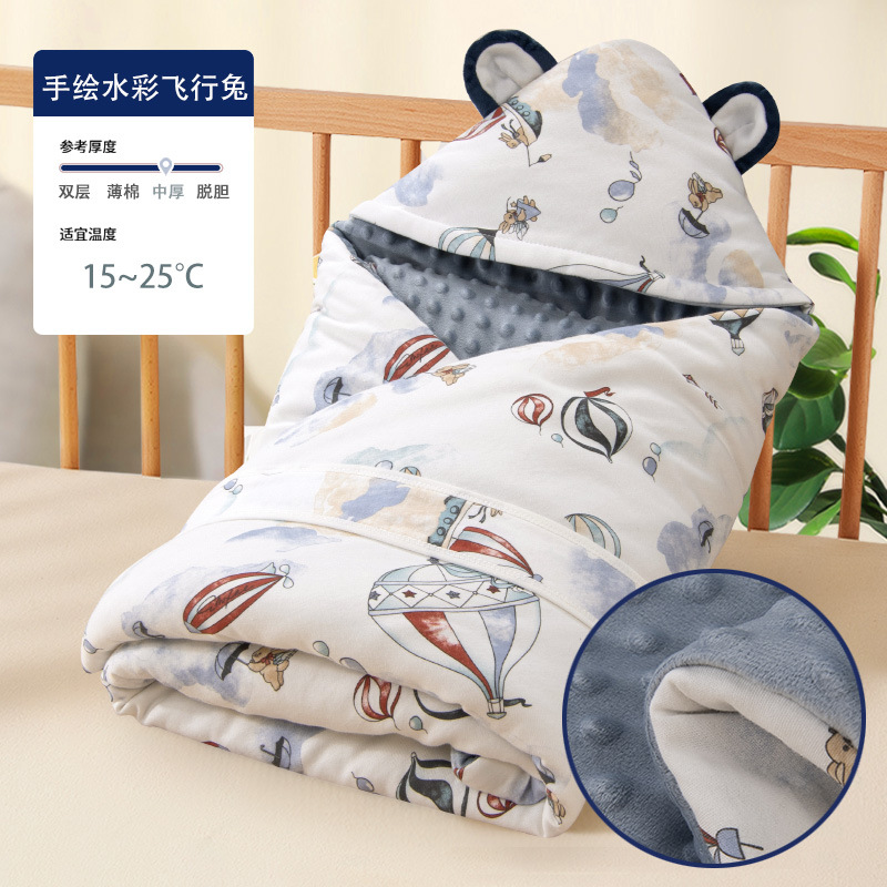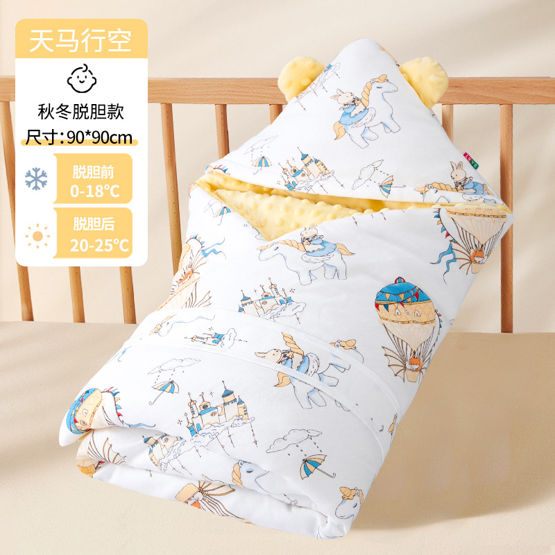 아기 Doudou 벨벳 이불 면화 가을과 겨울 신생아 가방 이불면은 수건에서 담낭이 두꺼워 진 작은 이불을 벗을 수 있습니다