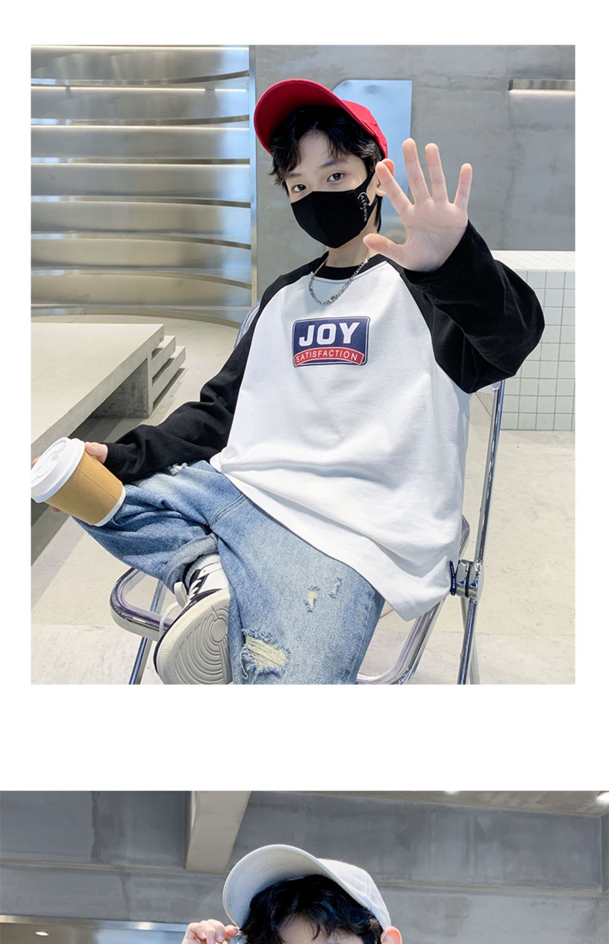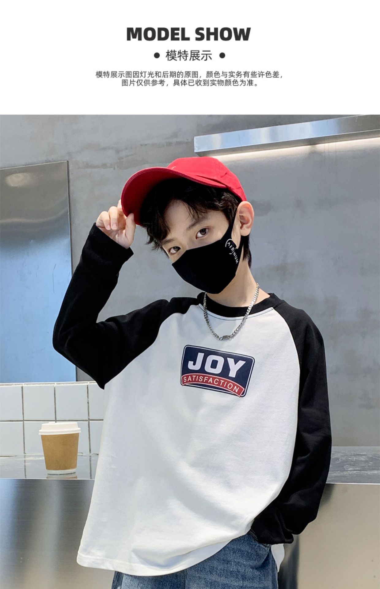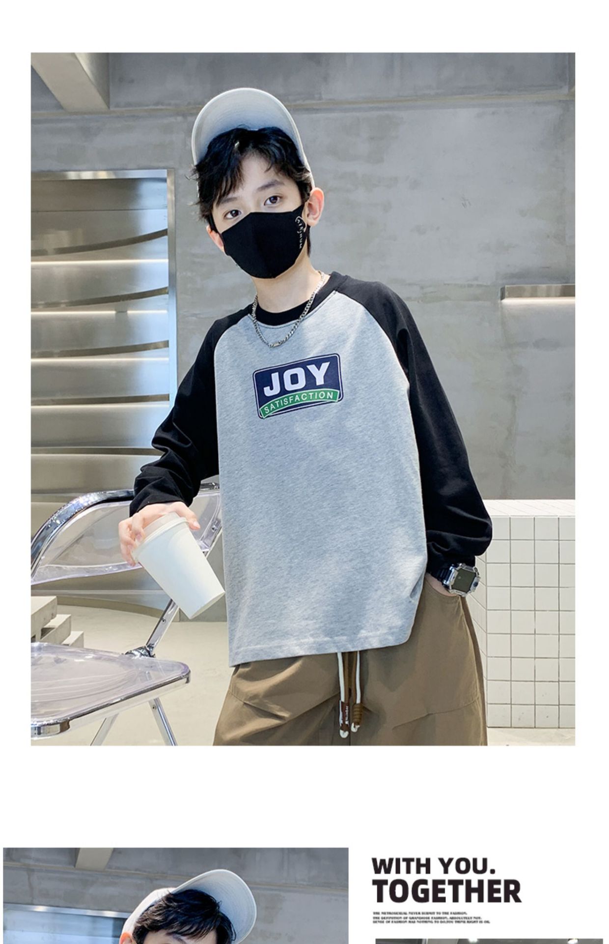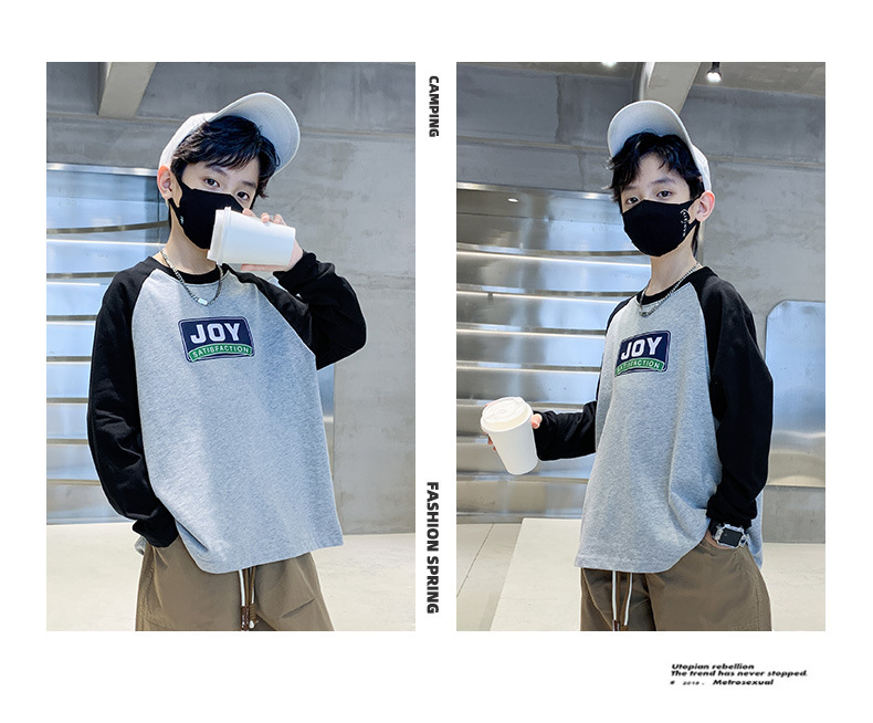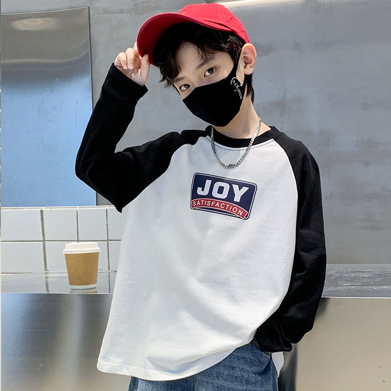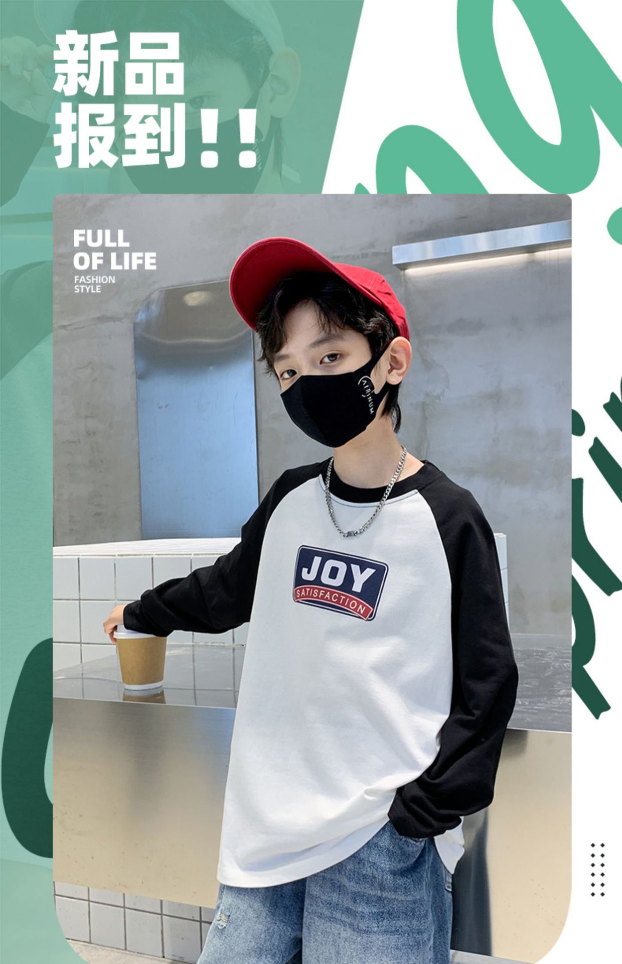 소년 라글란 슬리브 얇은 티셔츠 가을 새로운 봄과 가을 아기 어린이 착용 서양식 중대형 어린이 캐주얼 탑 트렌디 브랜드스토어 가기