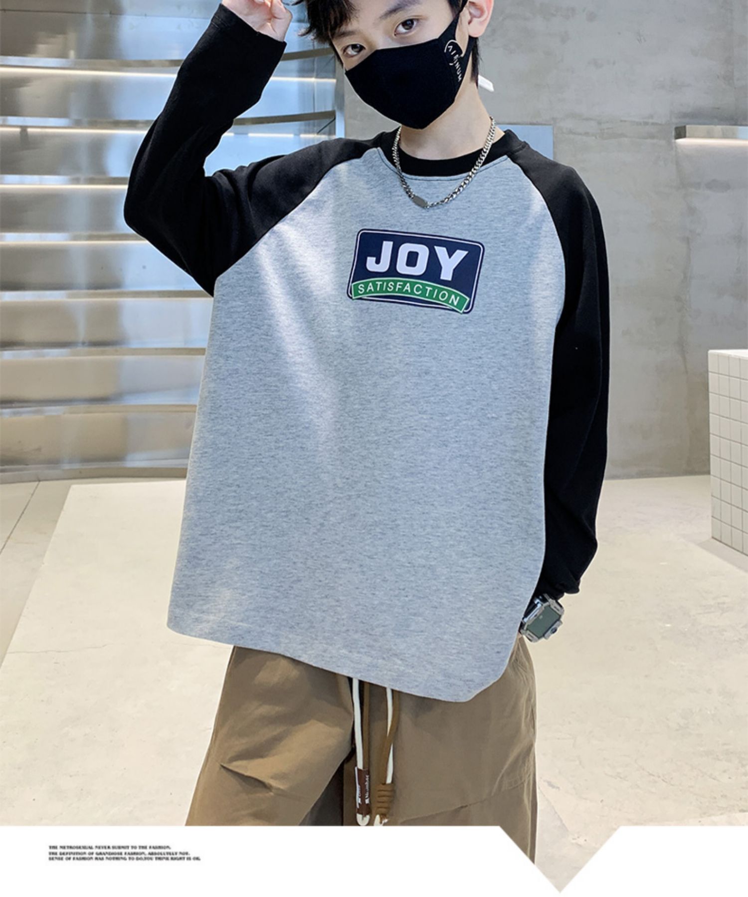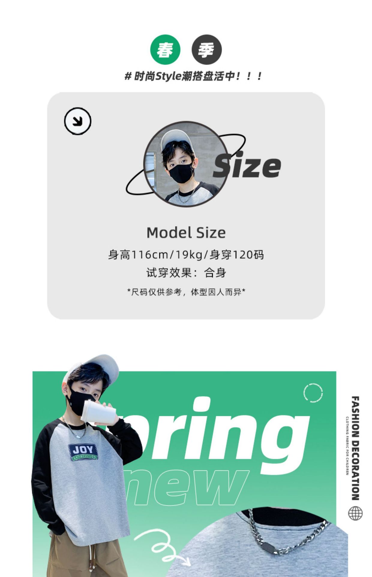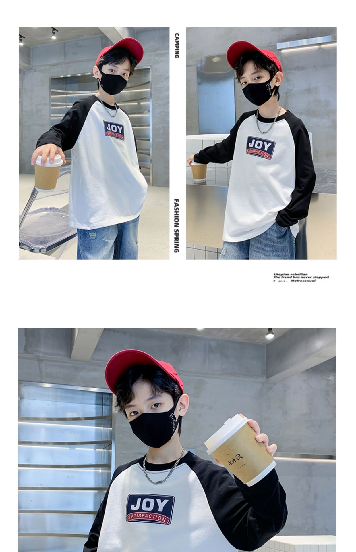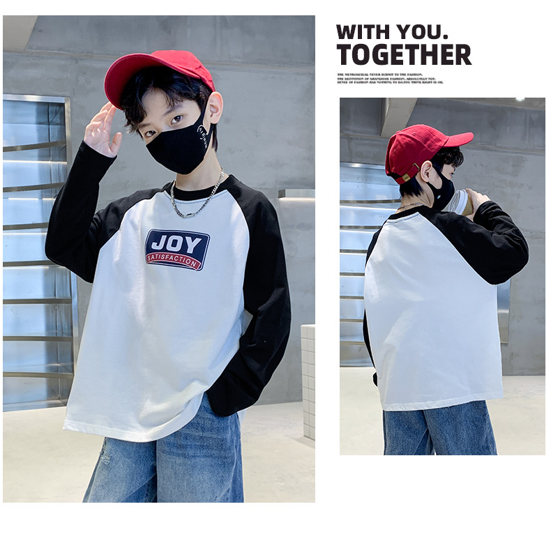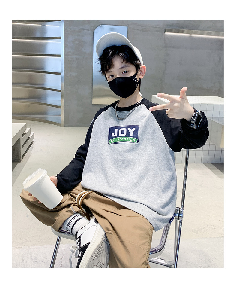 소년 라글란 슬리브 얇은 티셔츠 가을 새로운 봄과 가을 아기 어린이 착용 서양식 중대형 어린이 캐주얼 탑 트렌디 브랜드스토어 가기