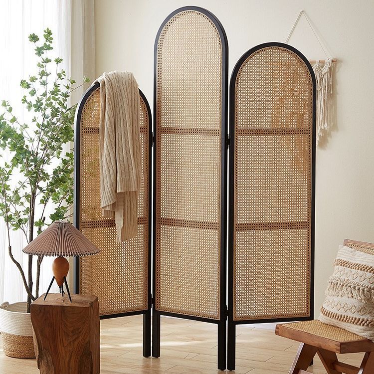 북유럽 솔리드 우드 스크린 작은 아파트 거실 등나무 파티션 침실 간단한 그늘 이동식 장식 접는 화면스토어 가기