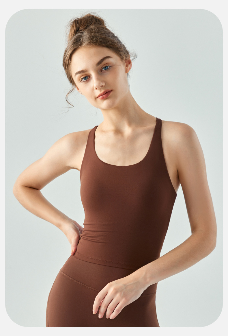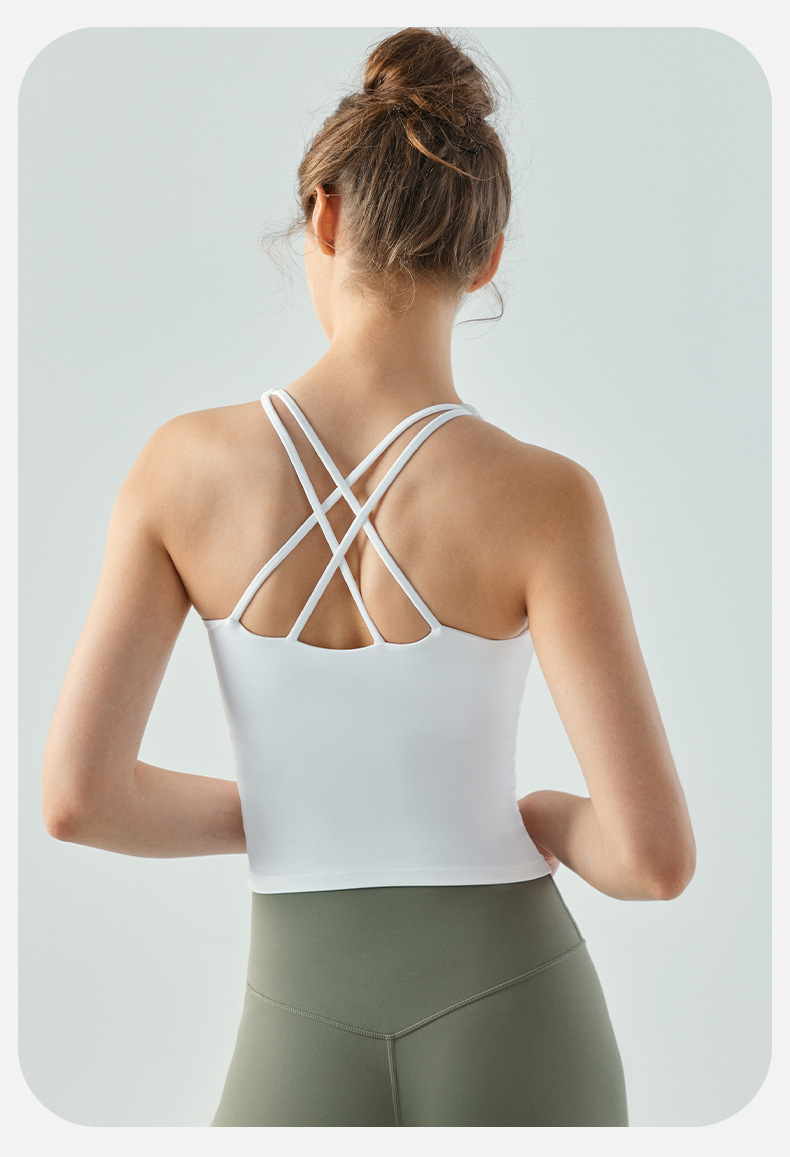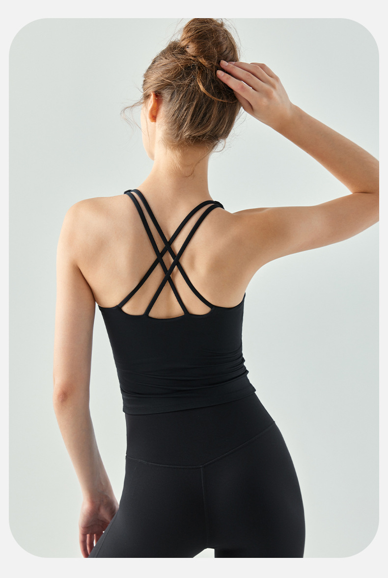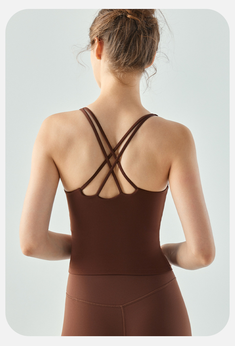가슴 패드가있는 요가 조끼 반 고정 드롭 컵 크로스 뷰티 백 피트니스 브라 여성용 통기성 슬리밍 스포츠 조끼