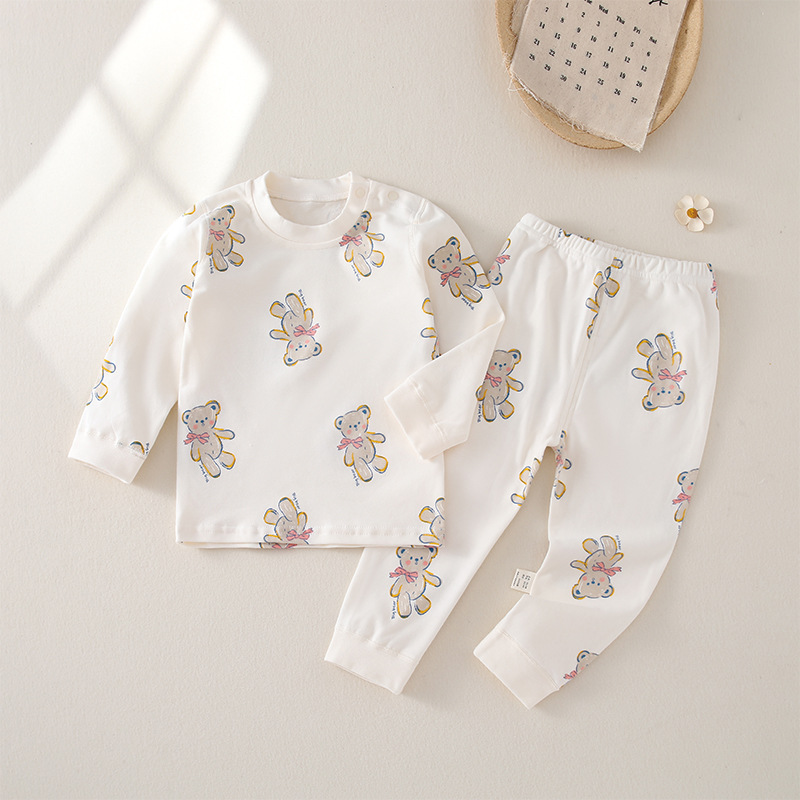 어린이 가을 옷과 바지 봄과 가을 순면 유아 스플릿 플랫 웨이스트 세트 기본 남성과 여성의 아기 면 스웨터 속옷