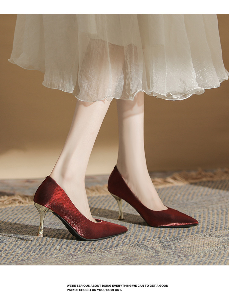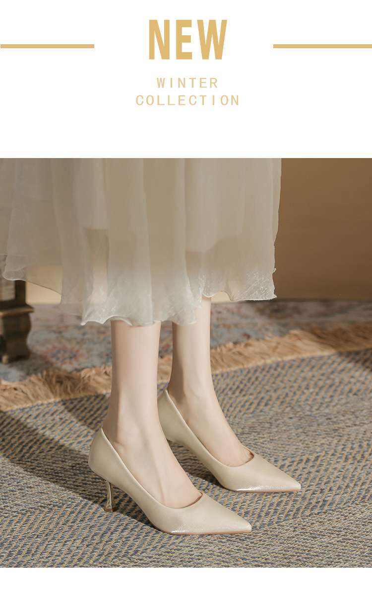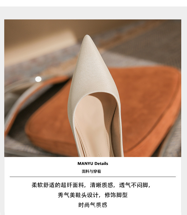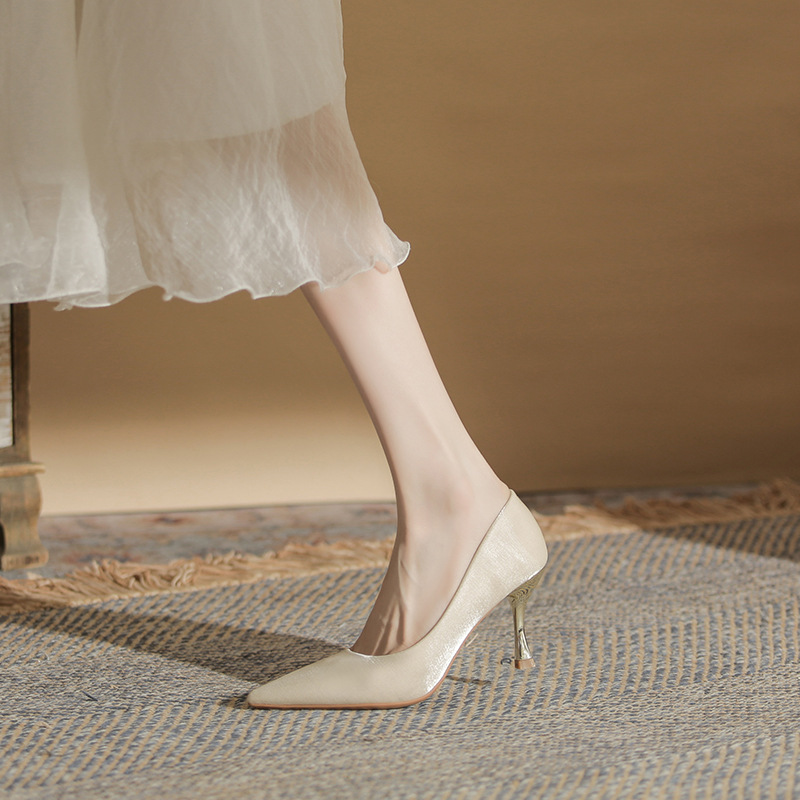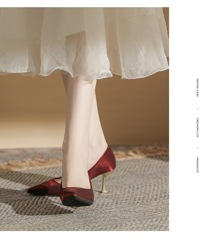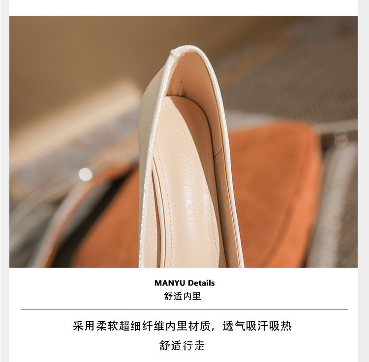 진강 CG6006 뾰족코 하이힐 여성용 얇은 굽 2024년 신상 실크 새틴 다용도 편안한 신발