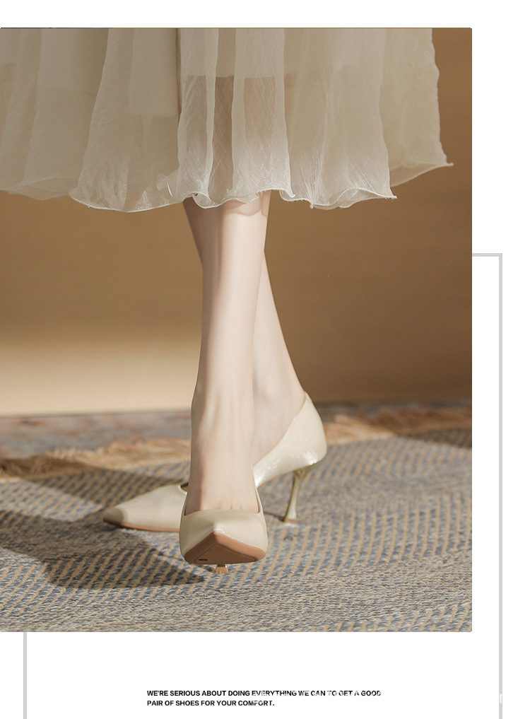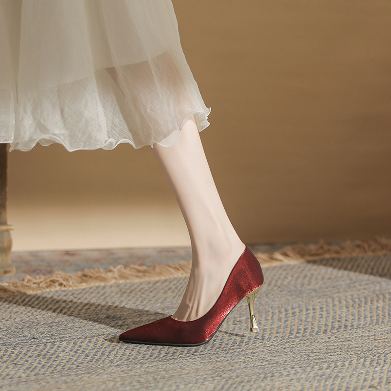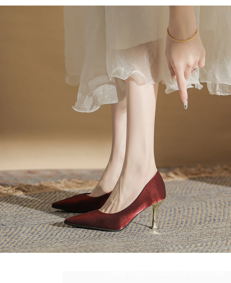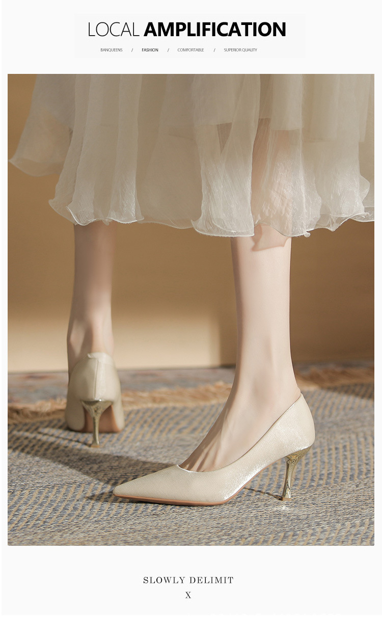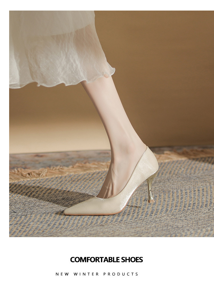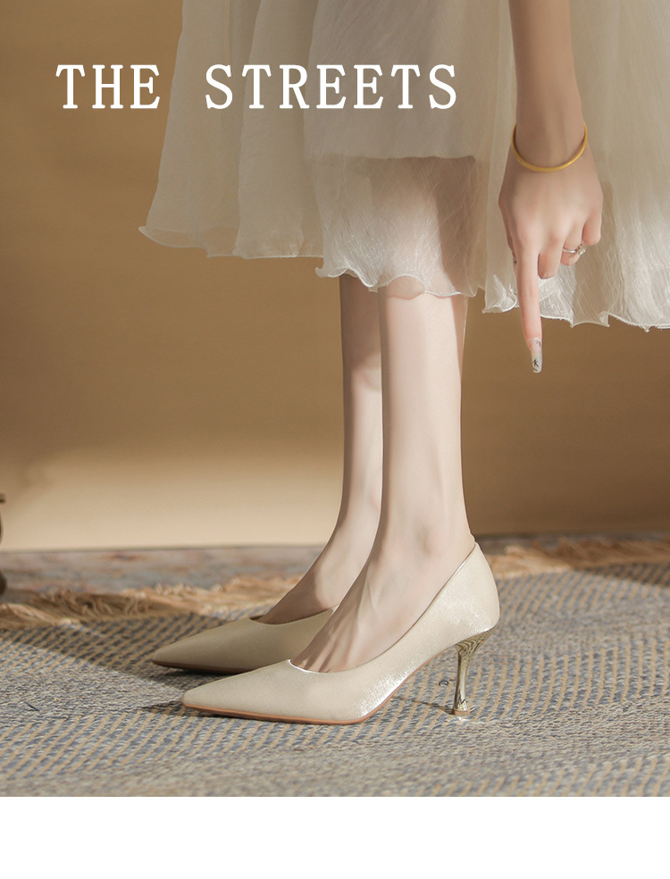 진강 CG6006 뾰족코 하이힐 여성용 얇은 굽 2024년 신상 실크 새틴 다용도 편안한 신발