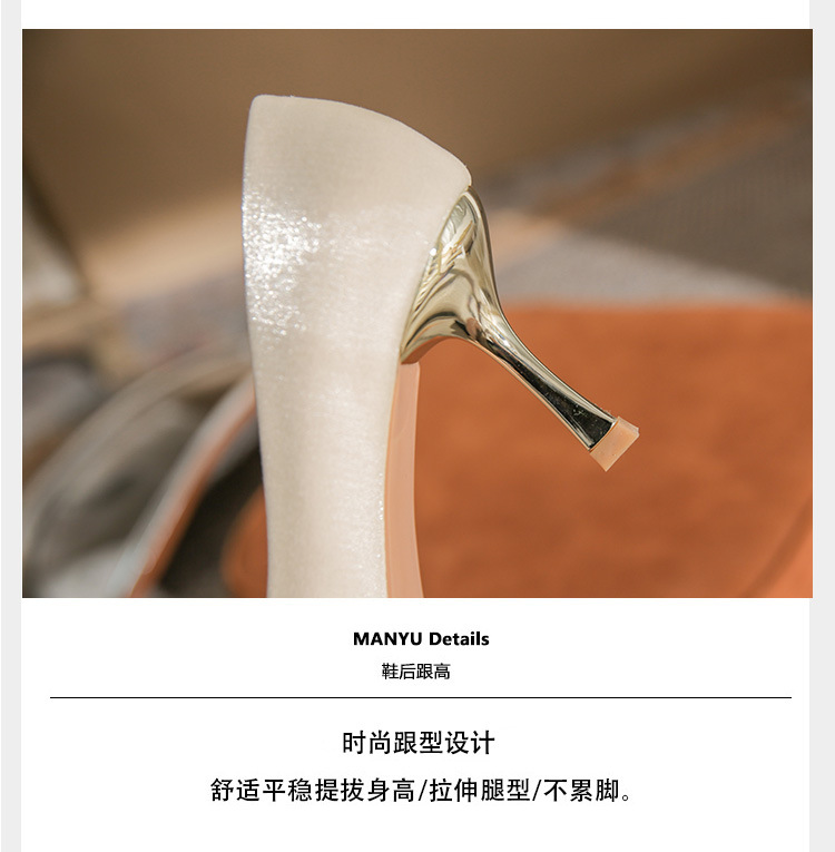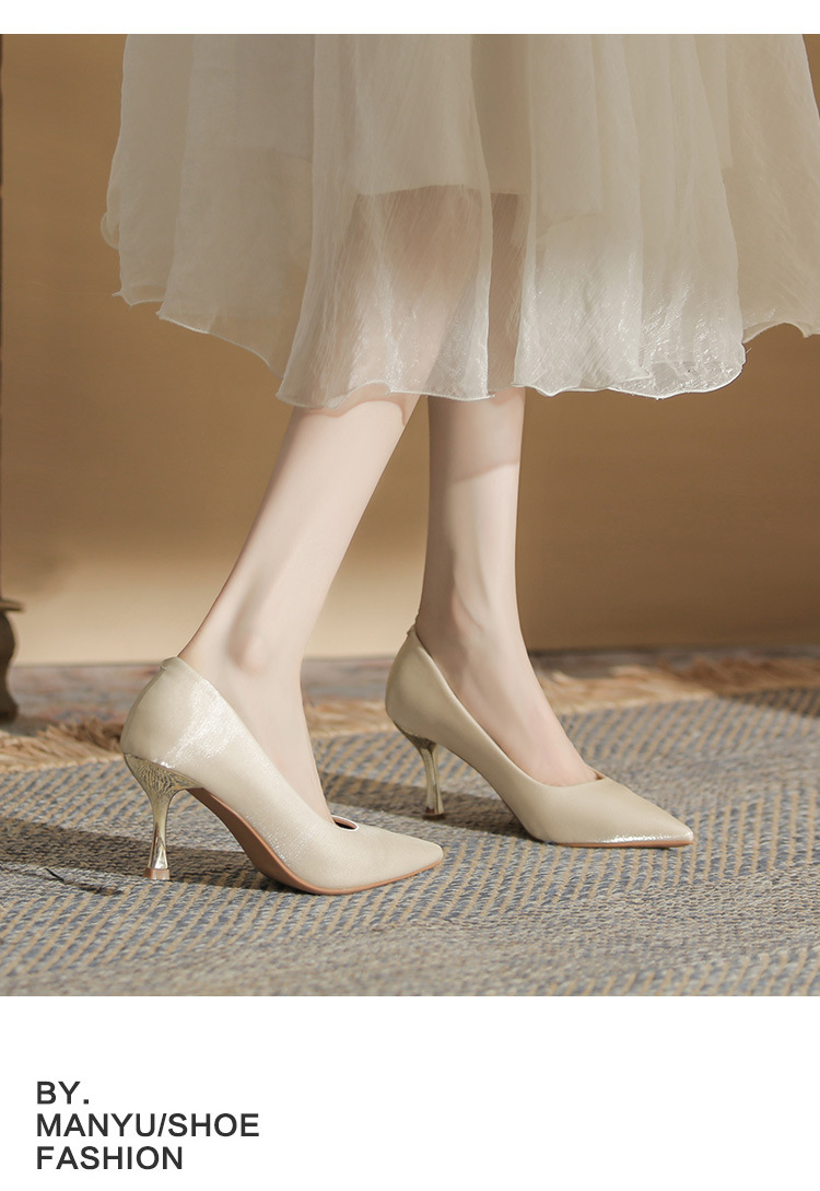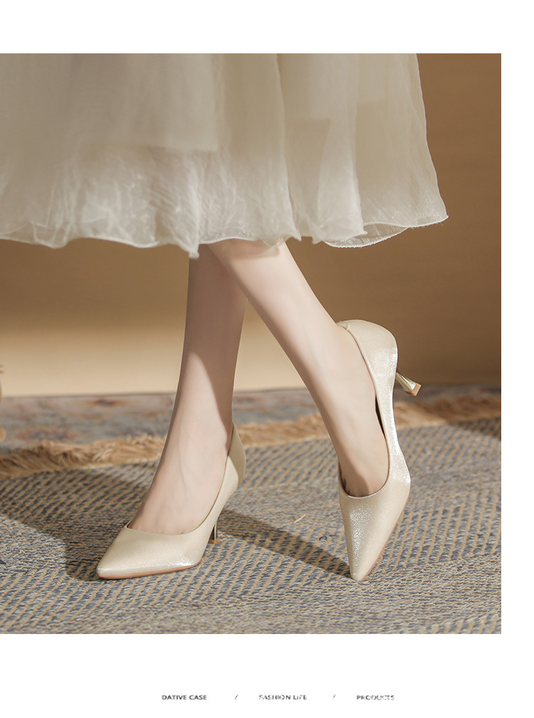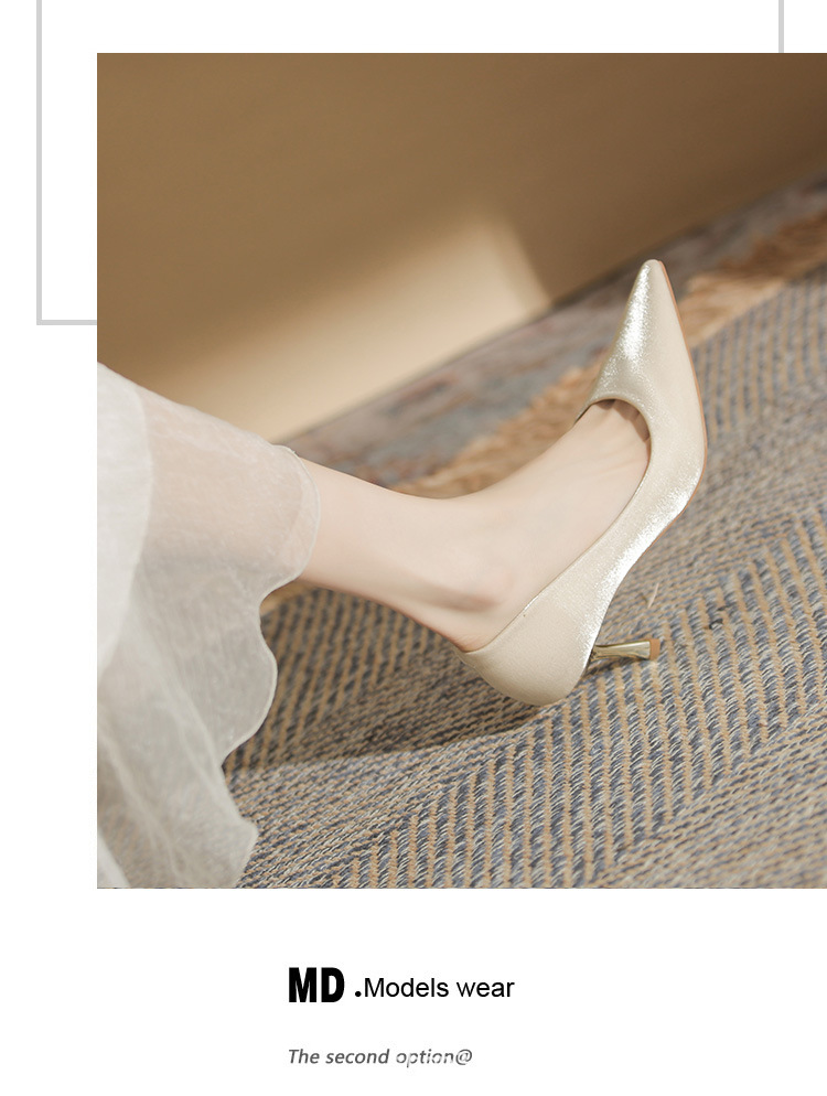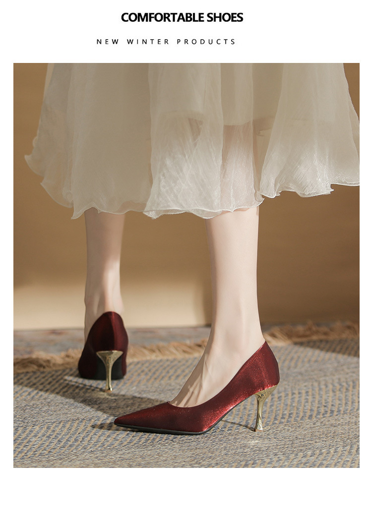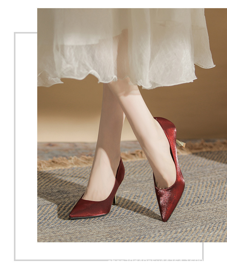 진강 CG6006 뾰족코 하이힐 여성용 얇은 굽 2024년 신상 실크 새틴 다용도 편안한 신발