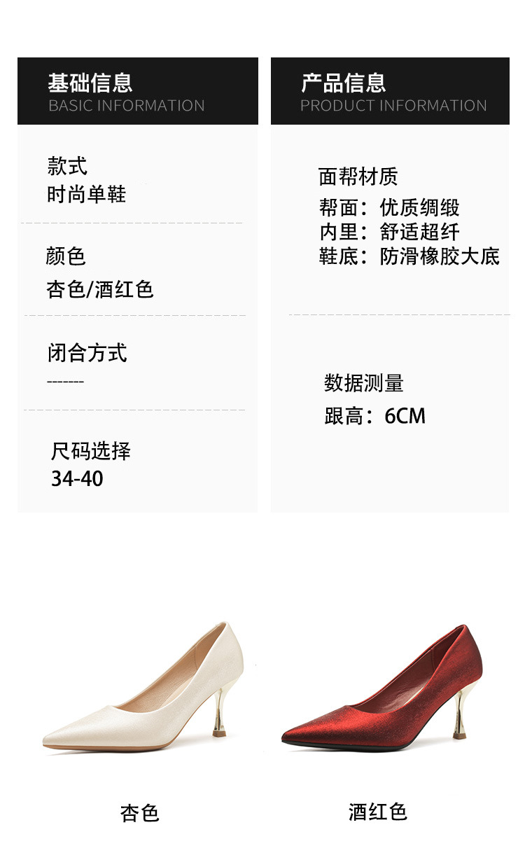 진강 CG6006 뾰족코 하이힐 여성용 얇은 굽 2024년 신상 실크 새틴 다용도 편안한 신발스토어 가기