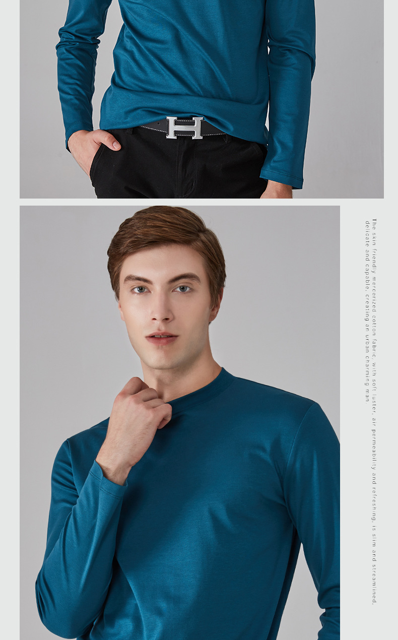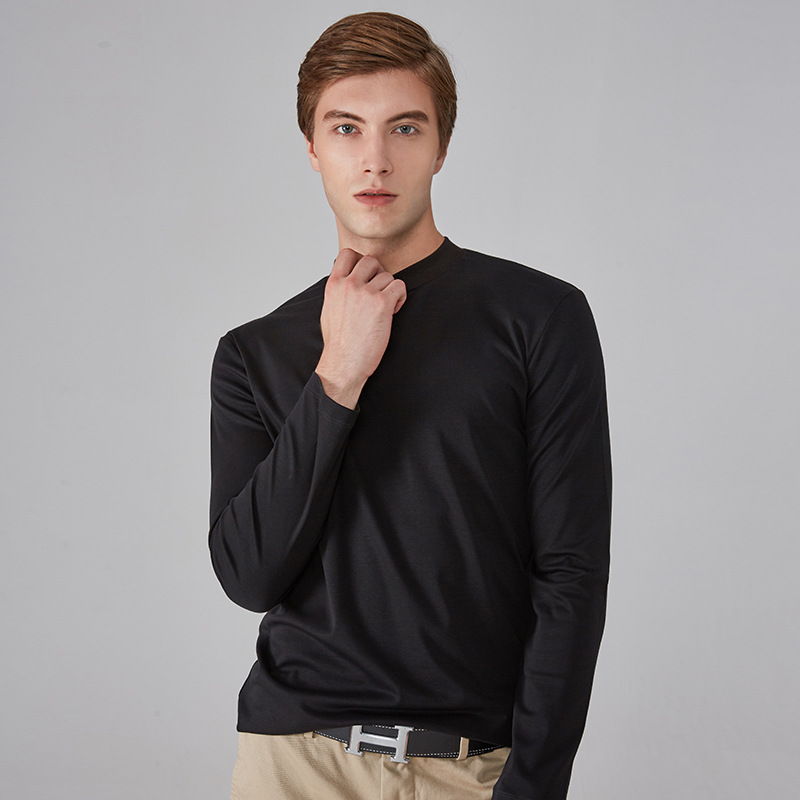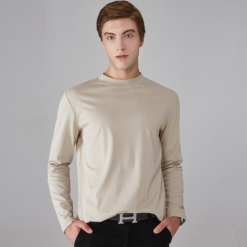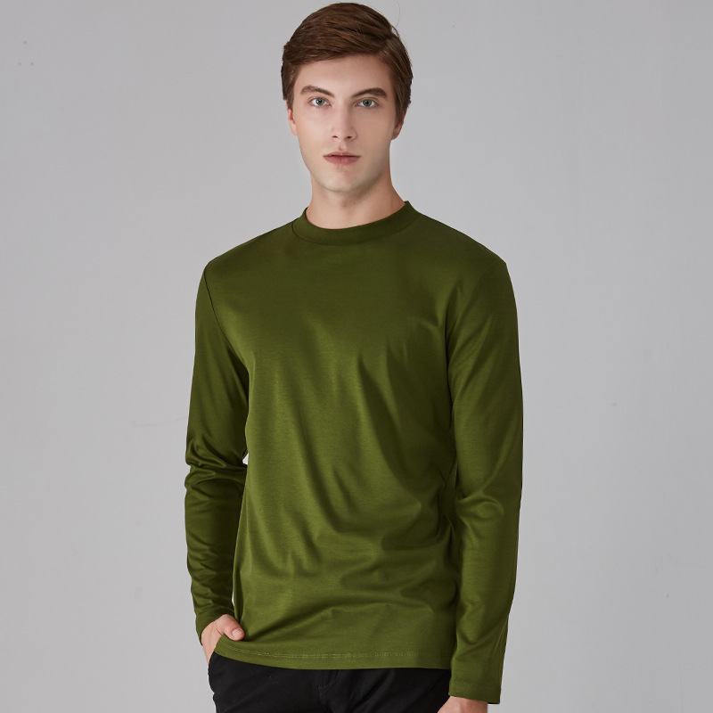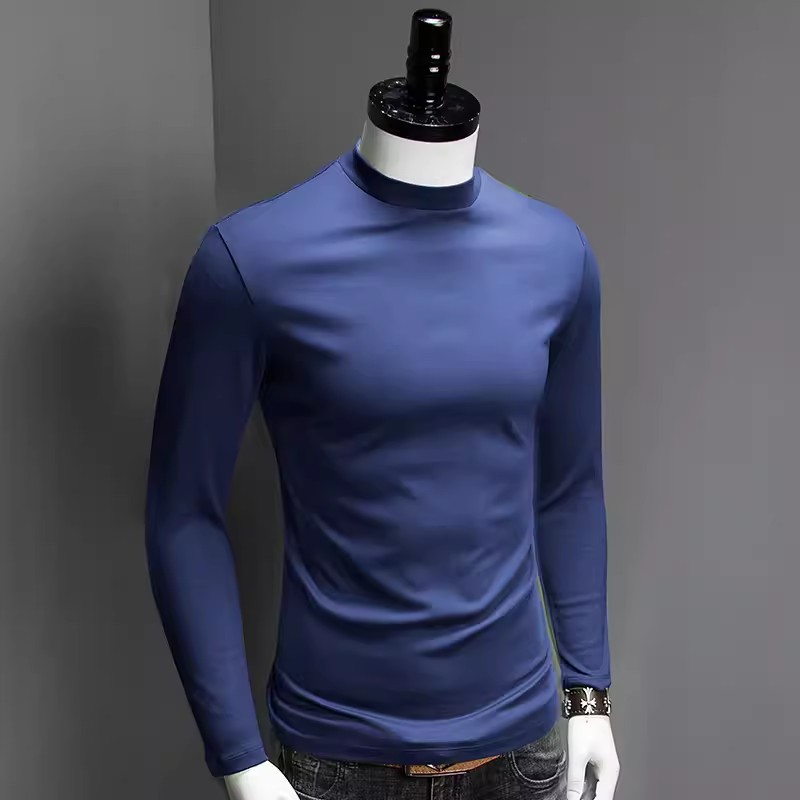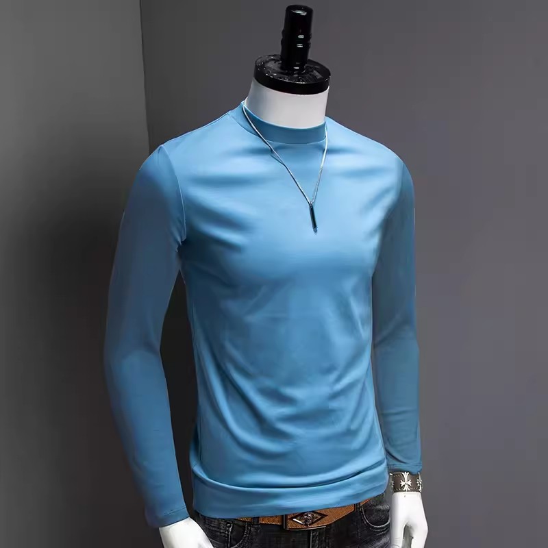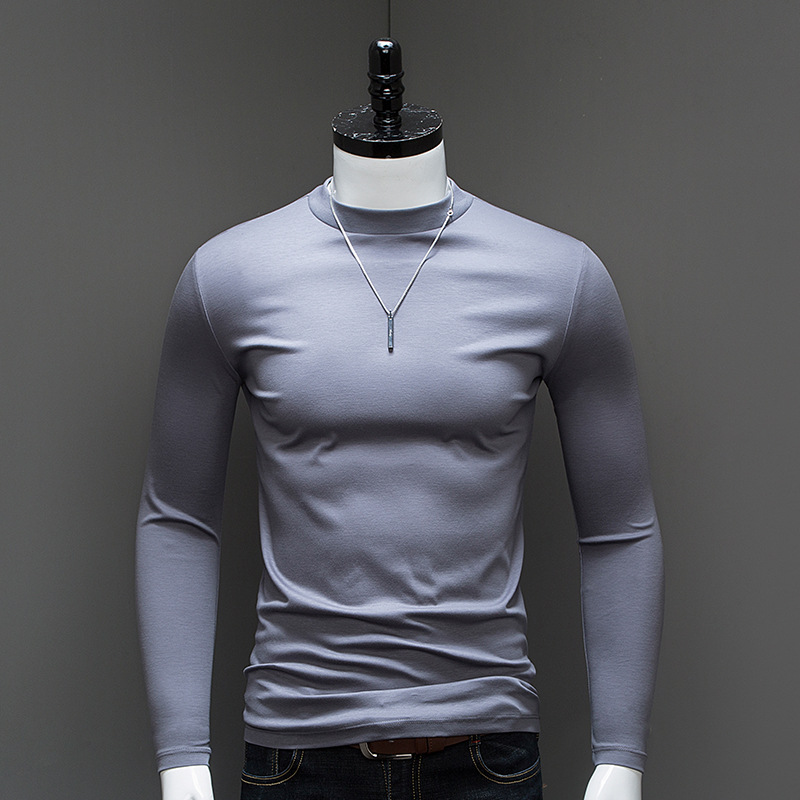 가을과 겨울 소년 더블 머서리 면화 작은 하이 칼라 긴 소매 가을 옷 유행 단색 면 슬림 핏 탑 하이 칼라 베이스 셔츠