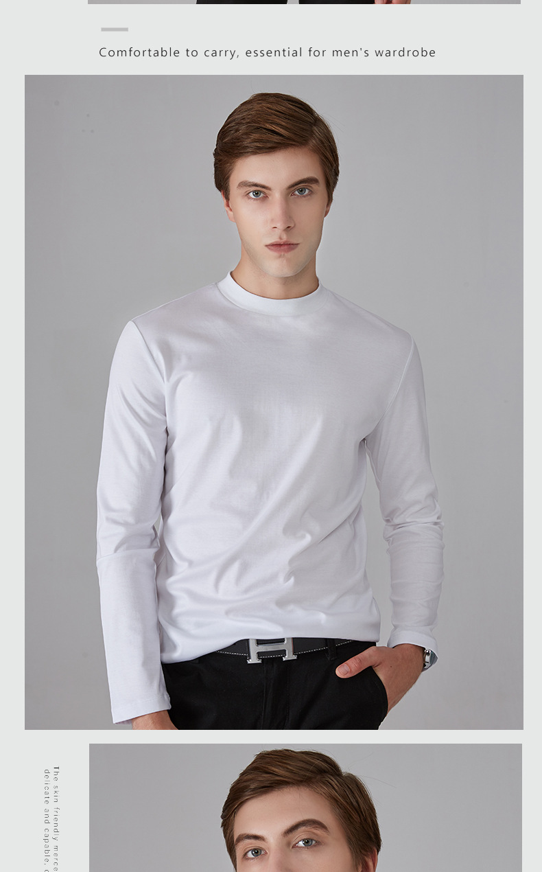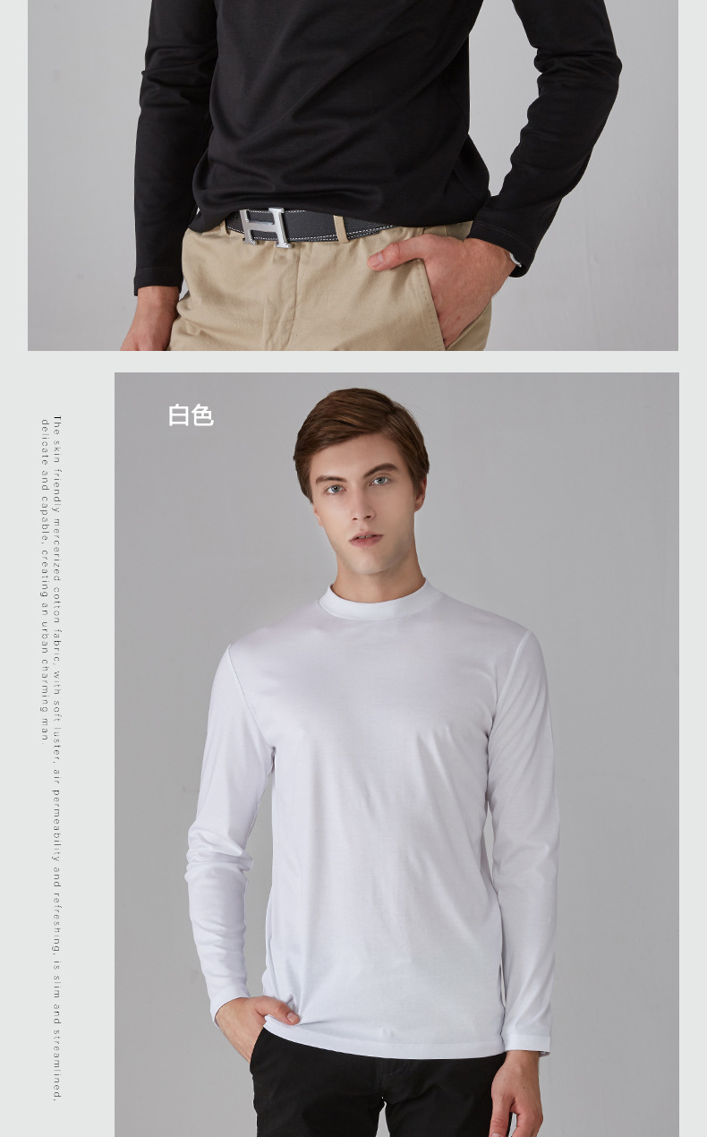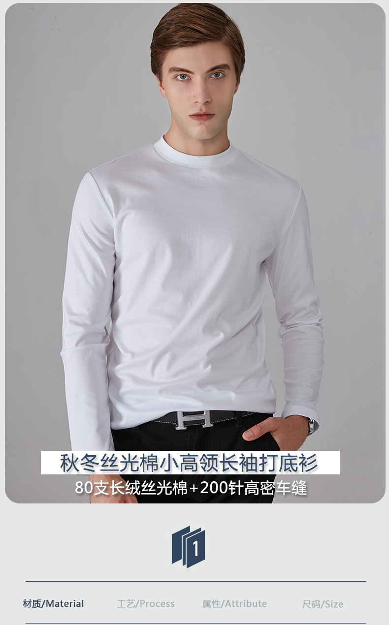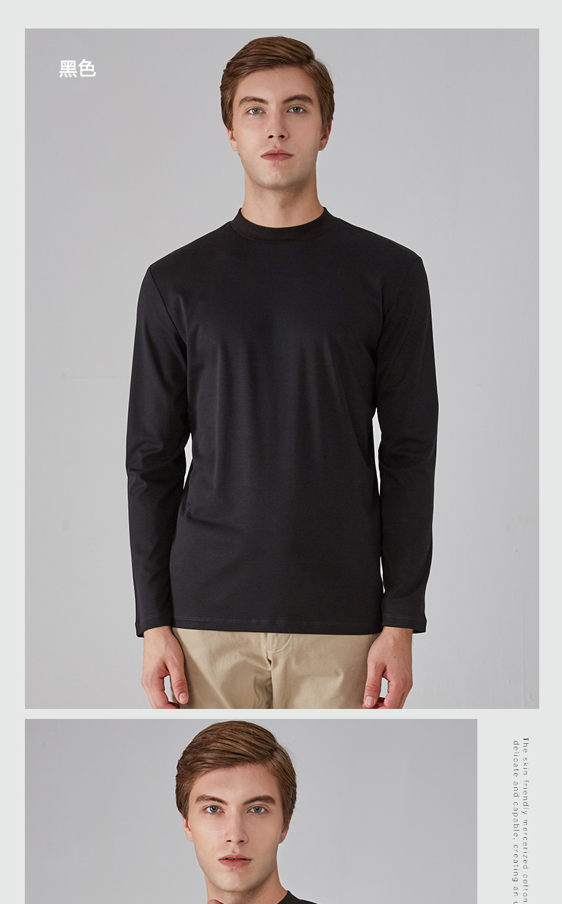 가을과 겨울 소년 더블 머서리 면화 작은 하이 칼라 긴 소매 가을 옷 유행 단색 면 슬림 핏 탑 하이 칼라 베이스 셔츠스토어 가기