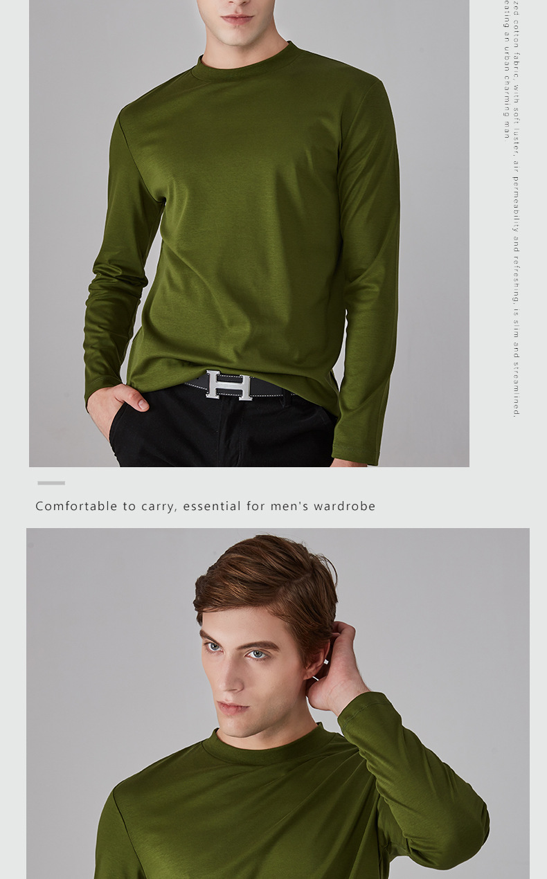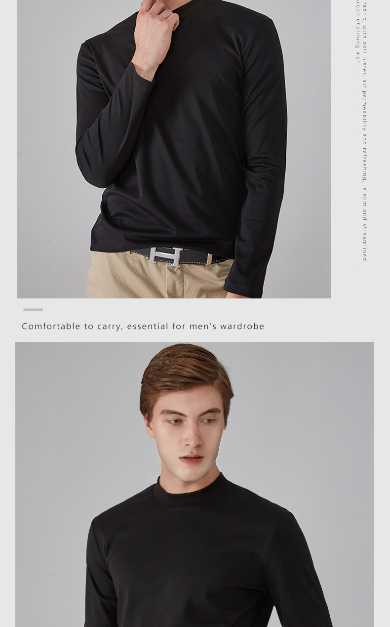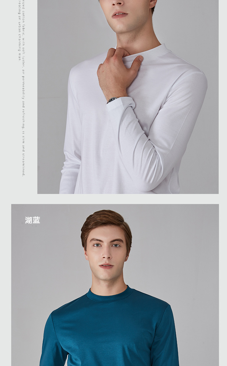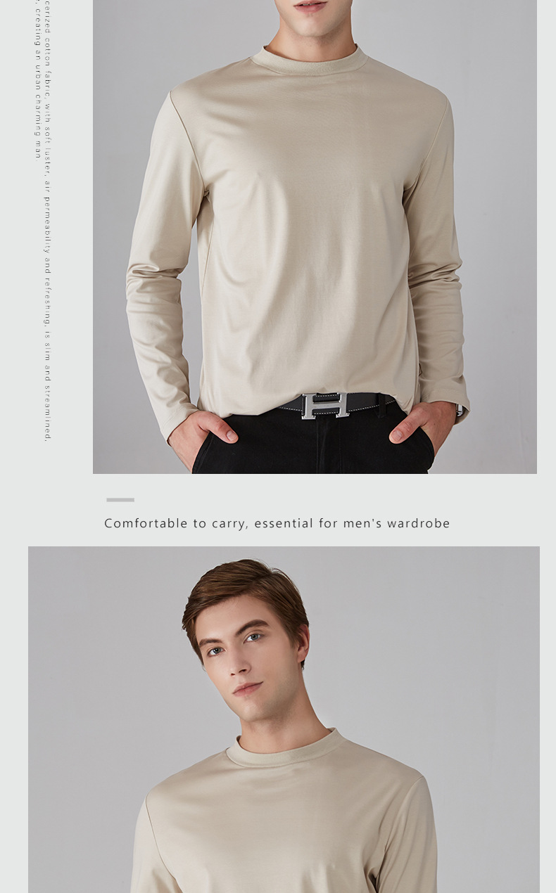 가을과 겨울 소년 더블 머서리 면화 작은 하이 칼라 긴 소매 가을 옷 유행 단색 면 슬림 핏 탑 하이 칼라 베이스 셔츠스토어 가기