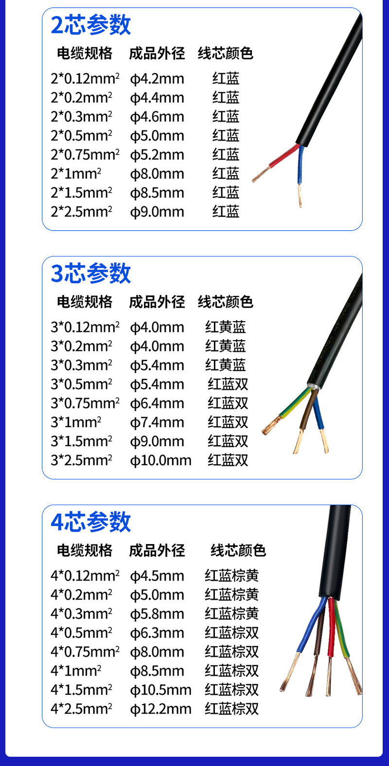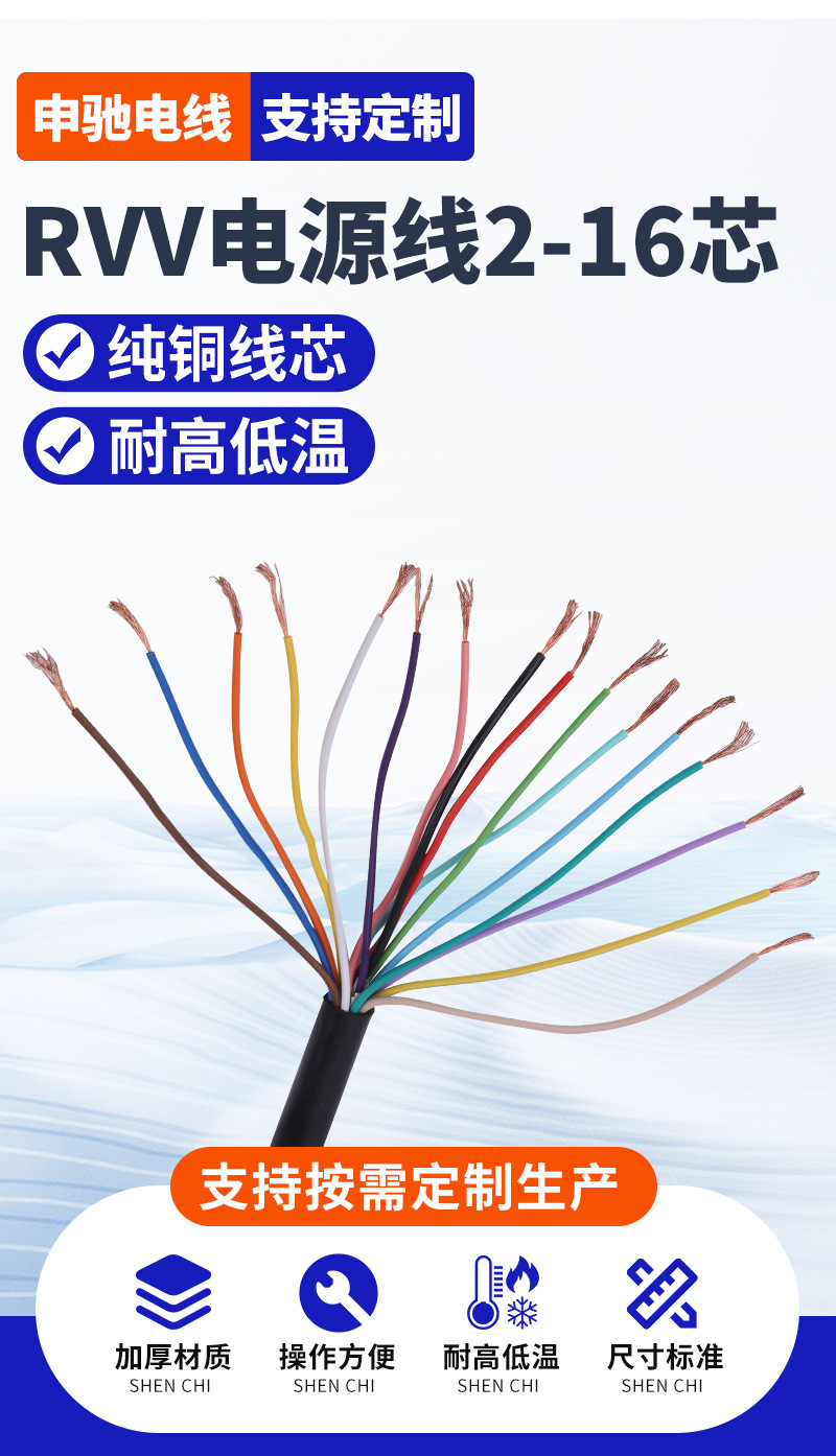 공장 도매 RVV 전원 코드 2/3/4 코어 소프트 시스 와이어 구리 코어 케이블 엔지니어링 GB 전원 케이블스토어 가기