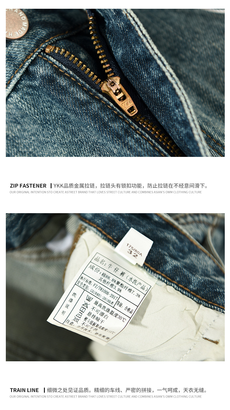 G7165 남성용 빈티지 세탁 청바지 한 세대의 머리카락스토어 가기