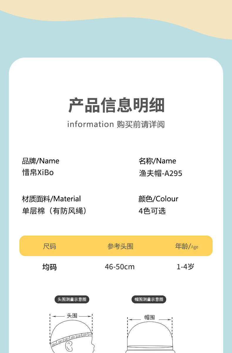 • 모자 둘레 44-48cm, 약 6-24 개월에 적합