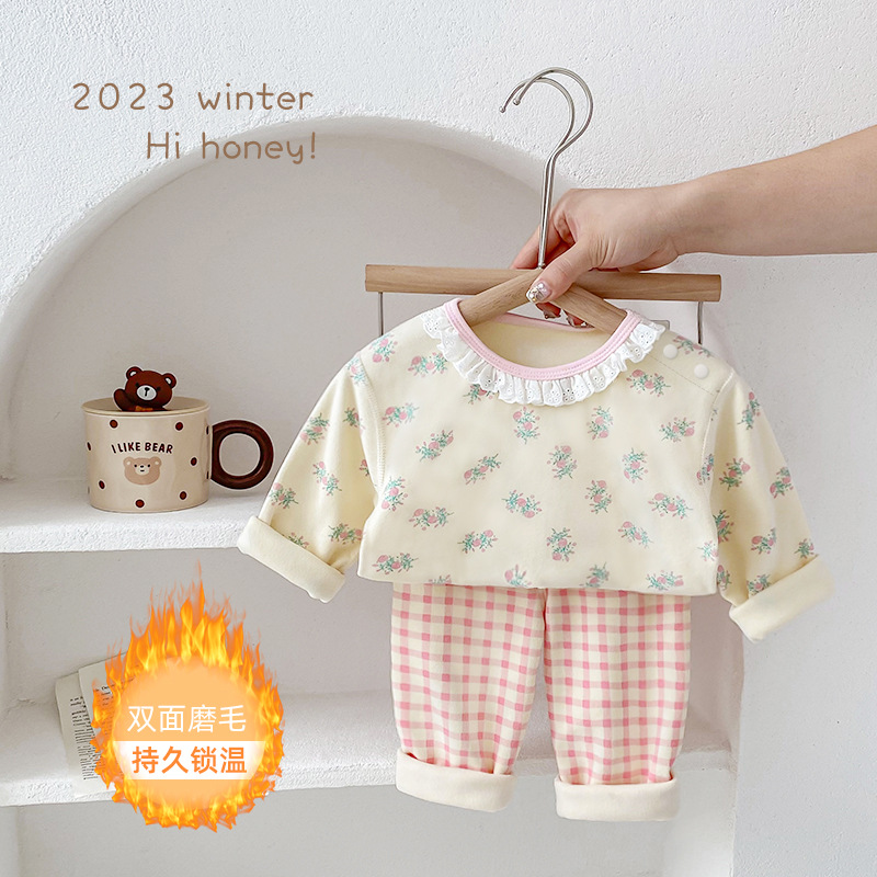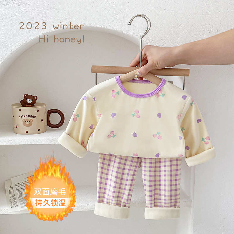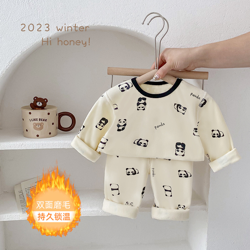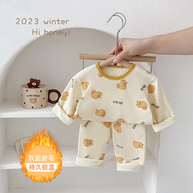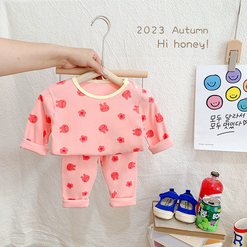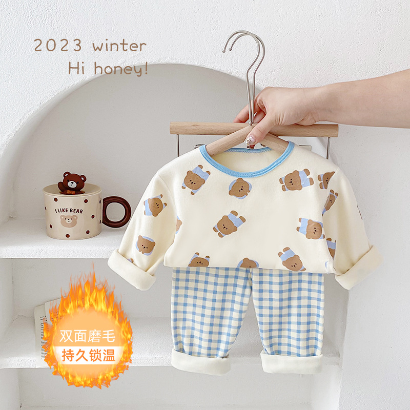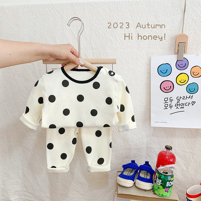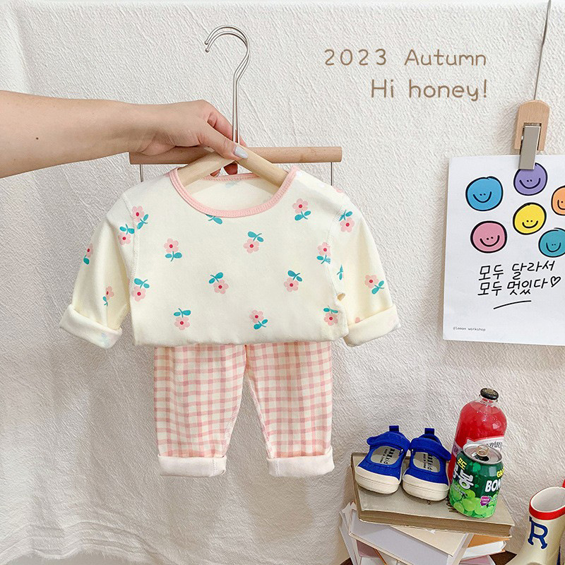 25가지 새로운 한국 스타일 아동복 세트, 면 소재의 무봉제 가을 옷, 남성 및 여성 잠옷, 아기 가을 겨울 옷스토어 가기