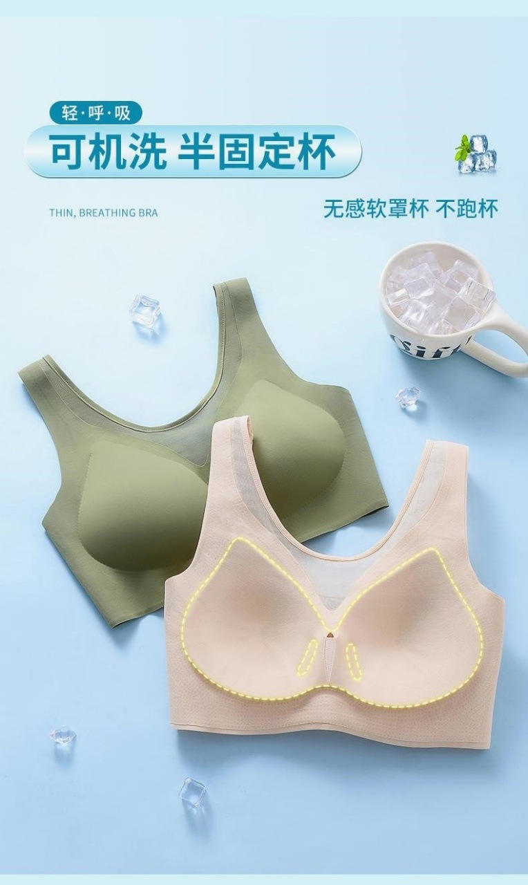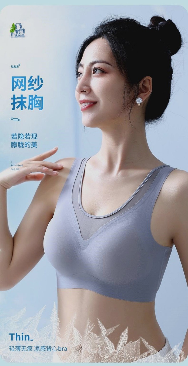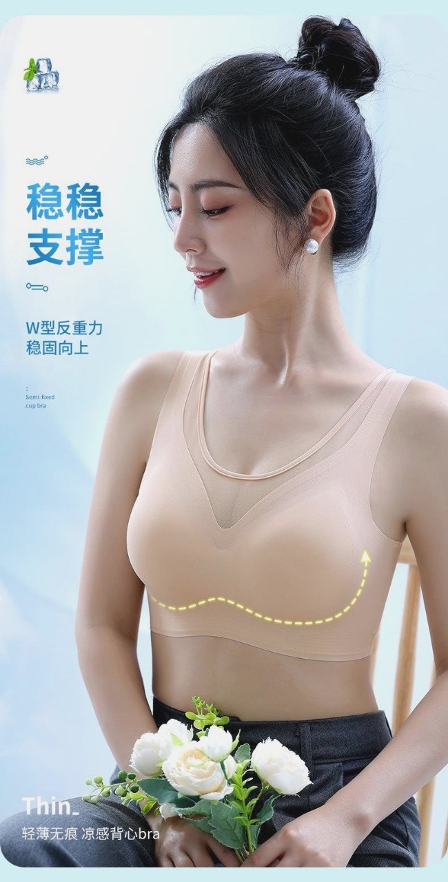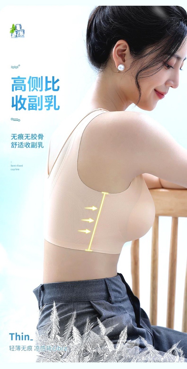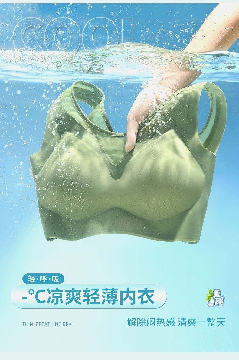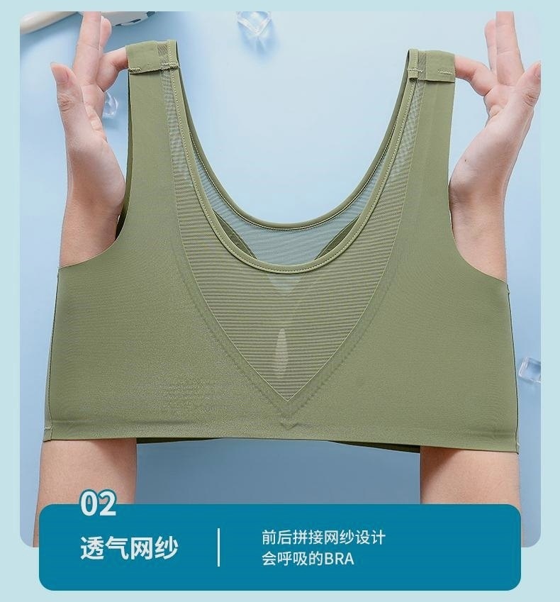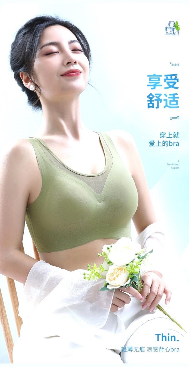 초박형 아이스 실크 추적 속옷 여성용 무테 개더링 팜 안티 처짐 스포츠 백 브라 플러스 사이즈 브라스토어 가기