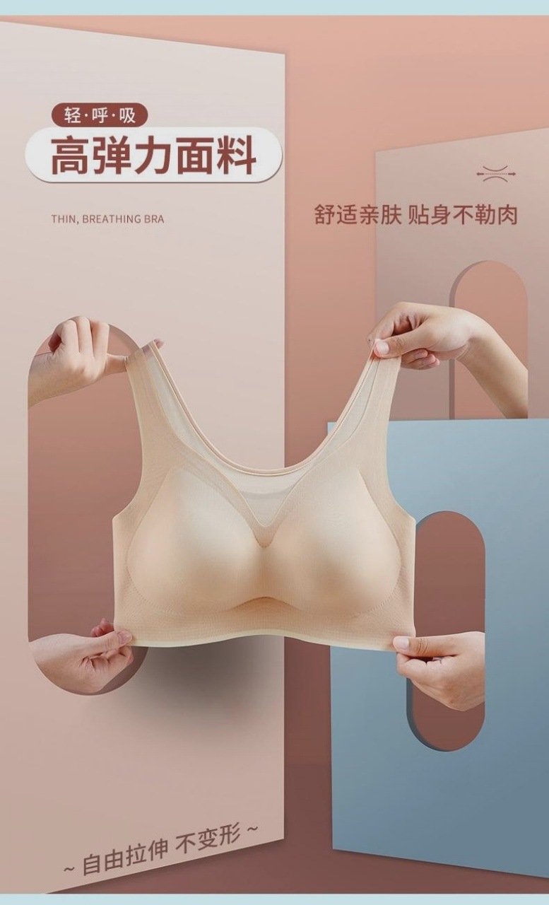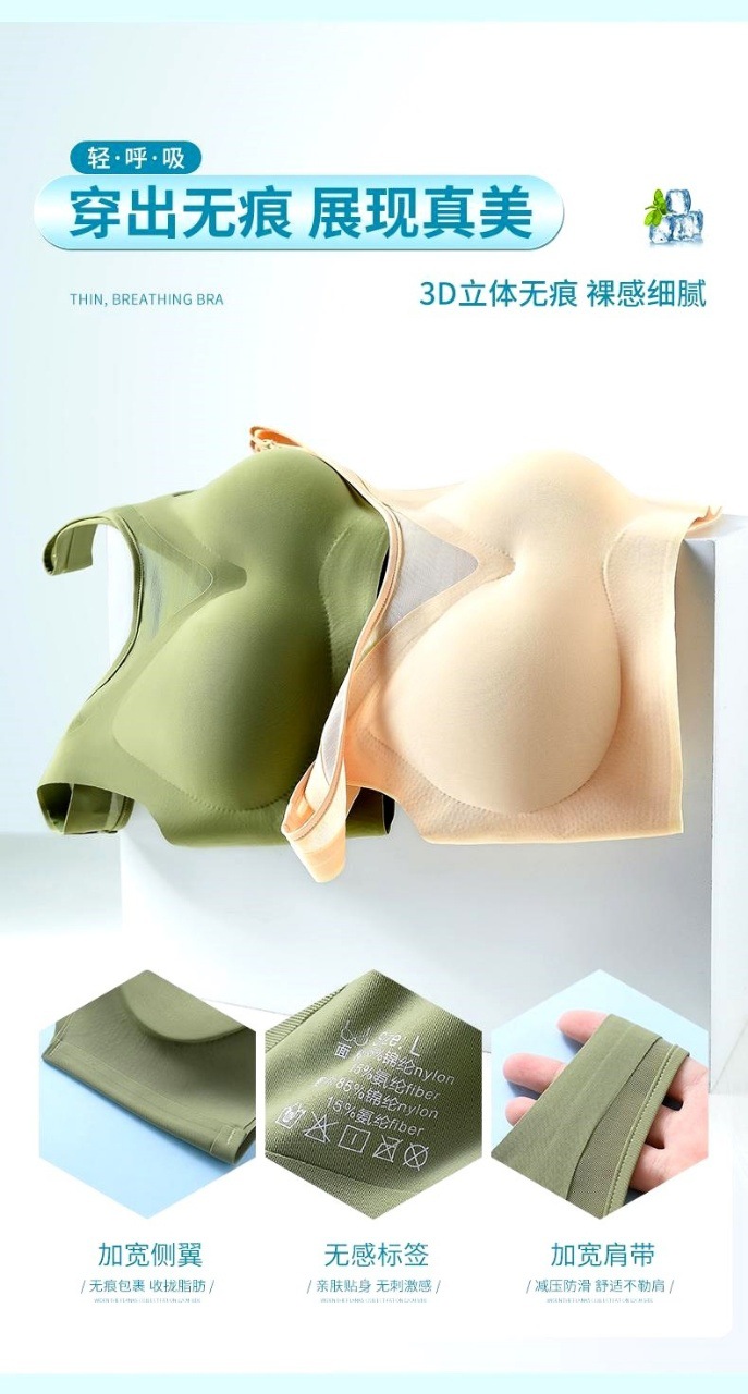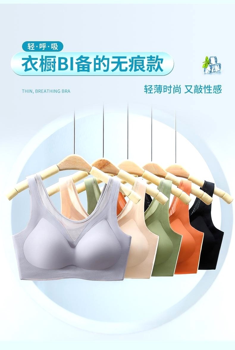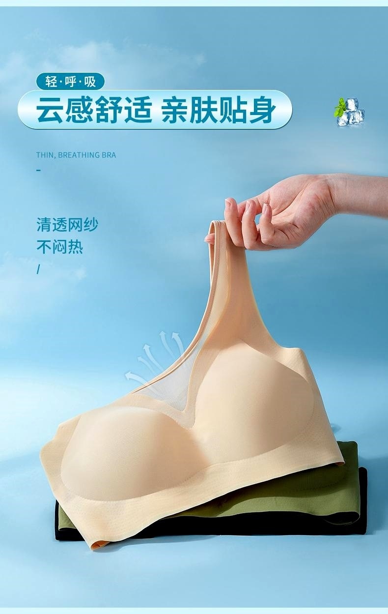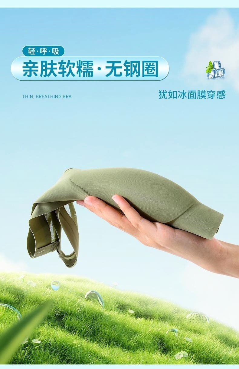 초박형 아이스 실크 추적 속옷 여성용 무테 개더링 팜 안티 처짐 스포츠 백 브라 플러스 사이즈 브라