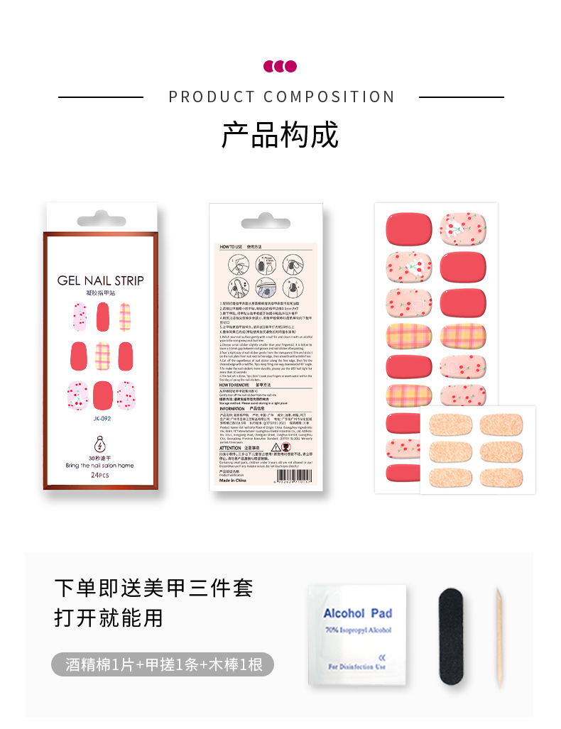 프렌치 매니큐어 UV 반경화 젤 스티커 풀커버 24개 네일 젤 스티커 반경화 네일 스티커(접착식) 고급스러운 디자인