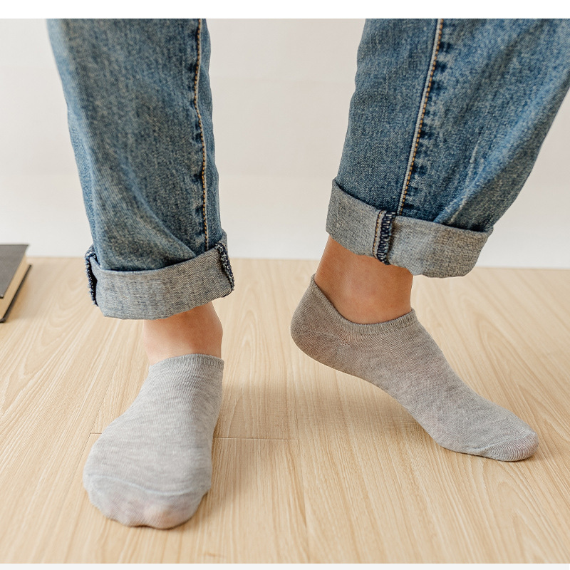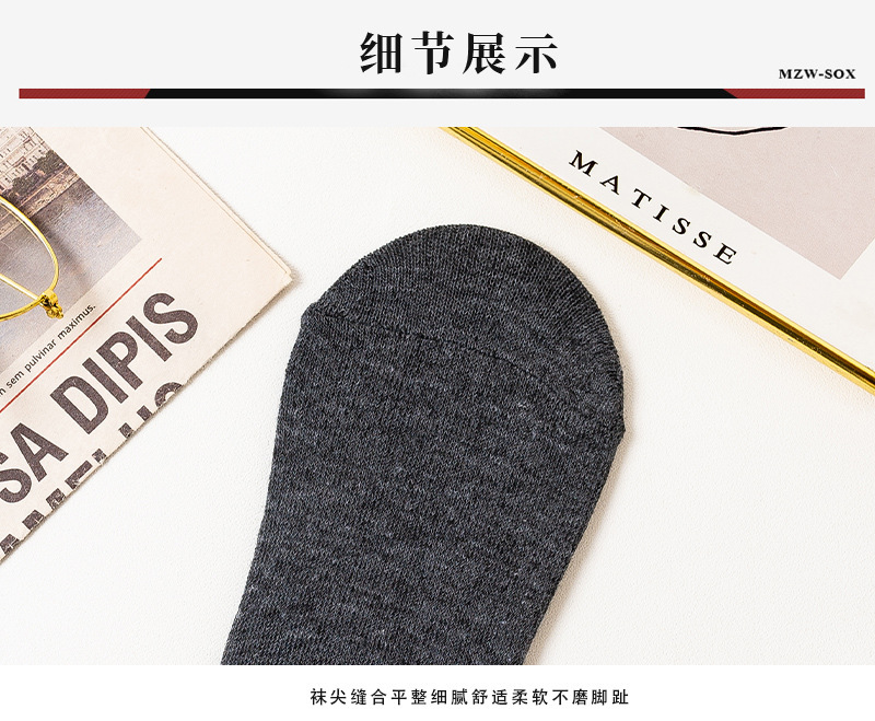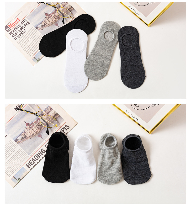 남자 보트 양말 단색 실리콘 미끄럼 방지 양말 캐주얼 보이지 않는 양말 얕은 입 보이지 않는 양말 면화 양말 제조 업체 흑백 회색스토어 가기