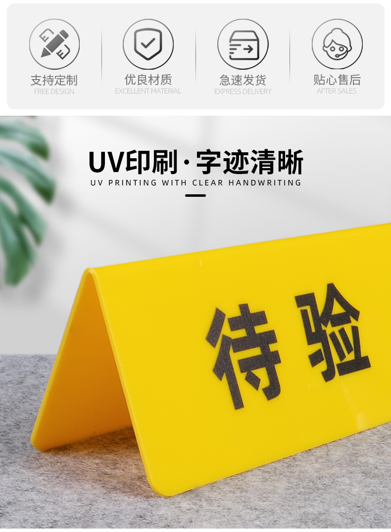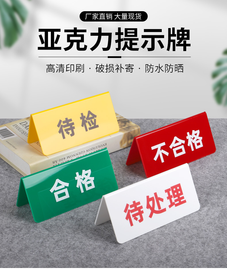 품질 검사되는 검사 플레이트 자격증 판별 구역 비품 상태 플레이트 아크릴 양면 삼각 테이블 카드 테이블 플레이트