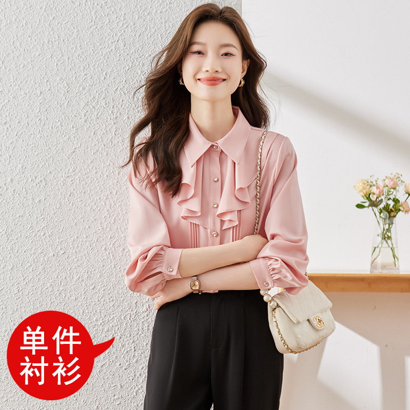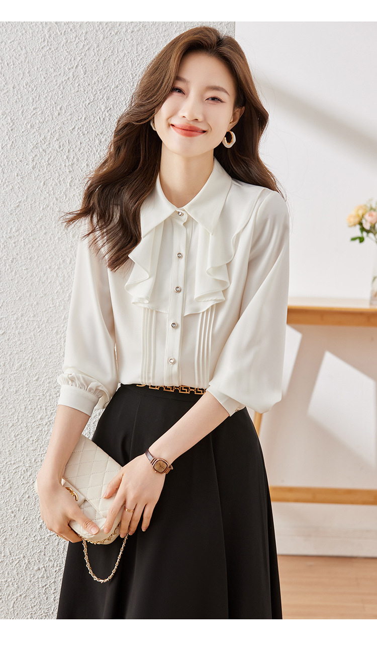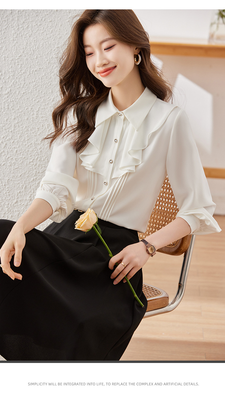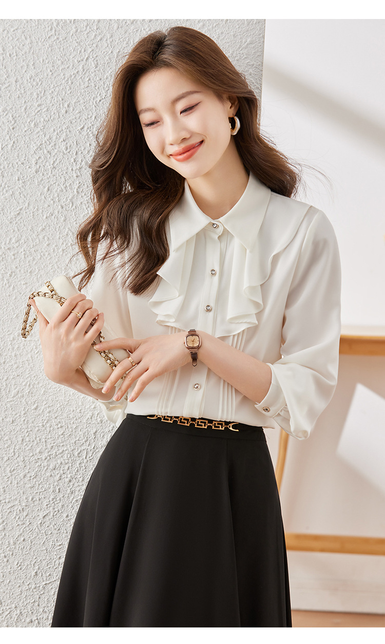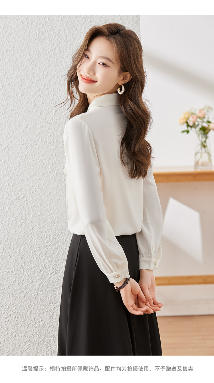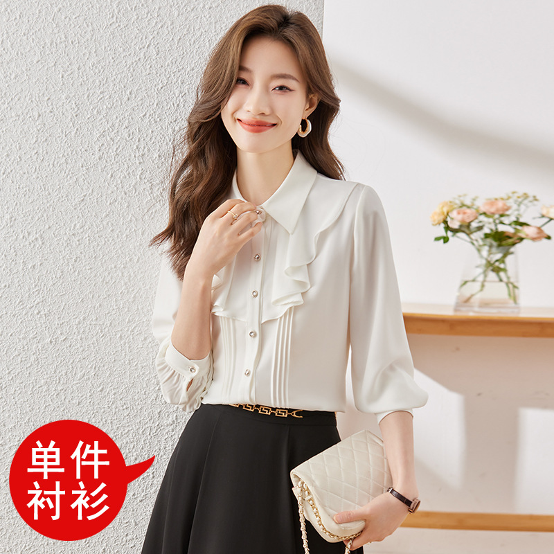Qigu Niang 이른 가을 흰색 긴팔 셔츠 여성용 새로운 여성용 느슨한 슬리밍 탑 라이트 성숙한 프랑스 틈새 셔츠
