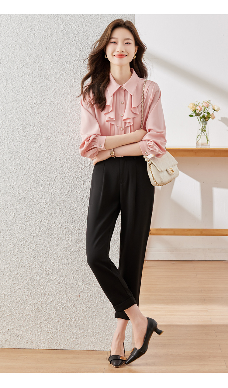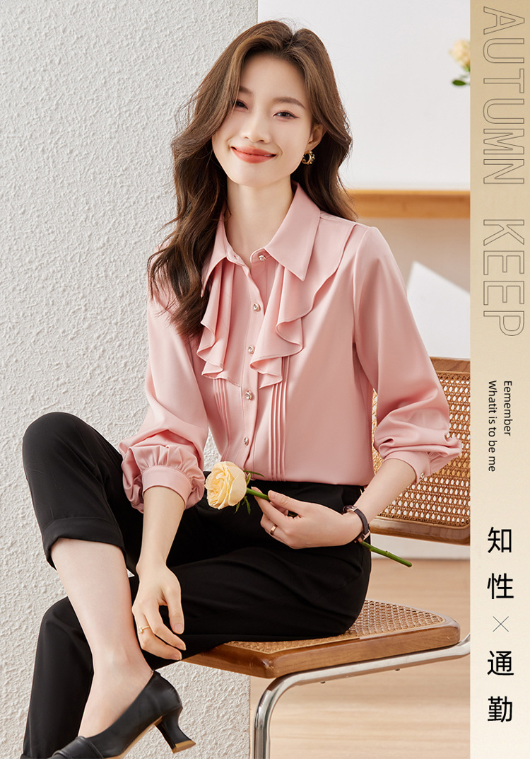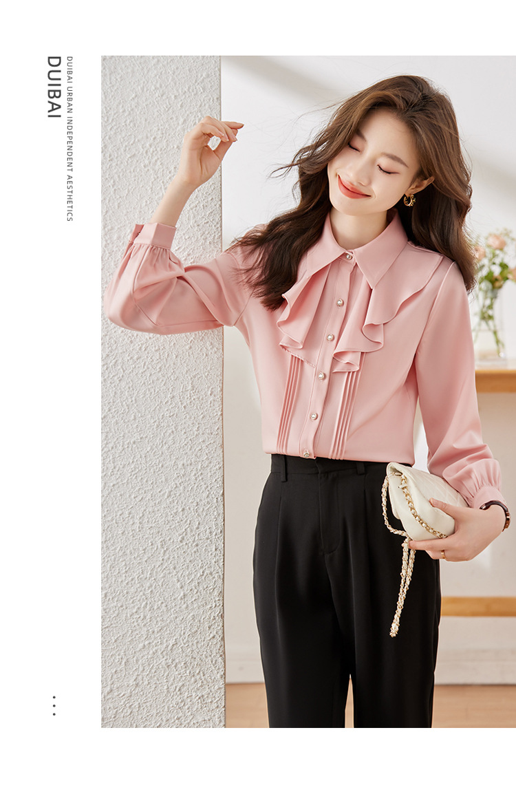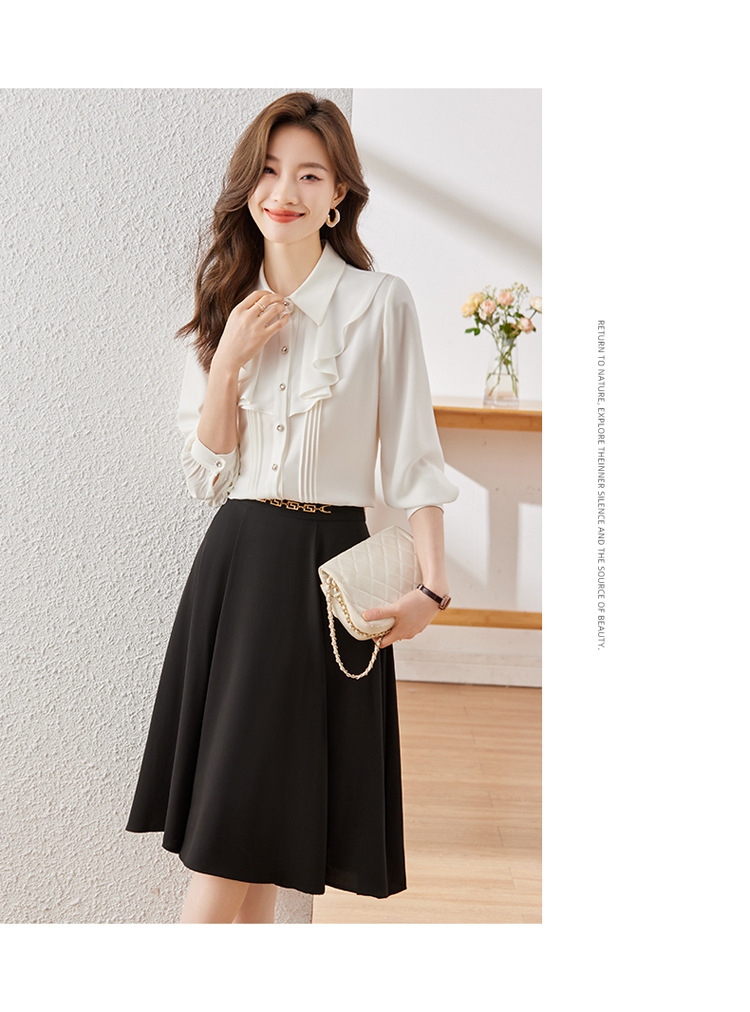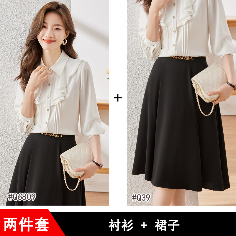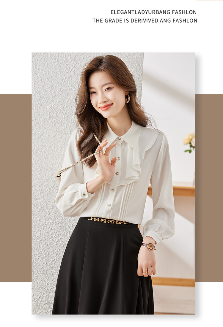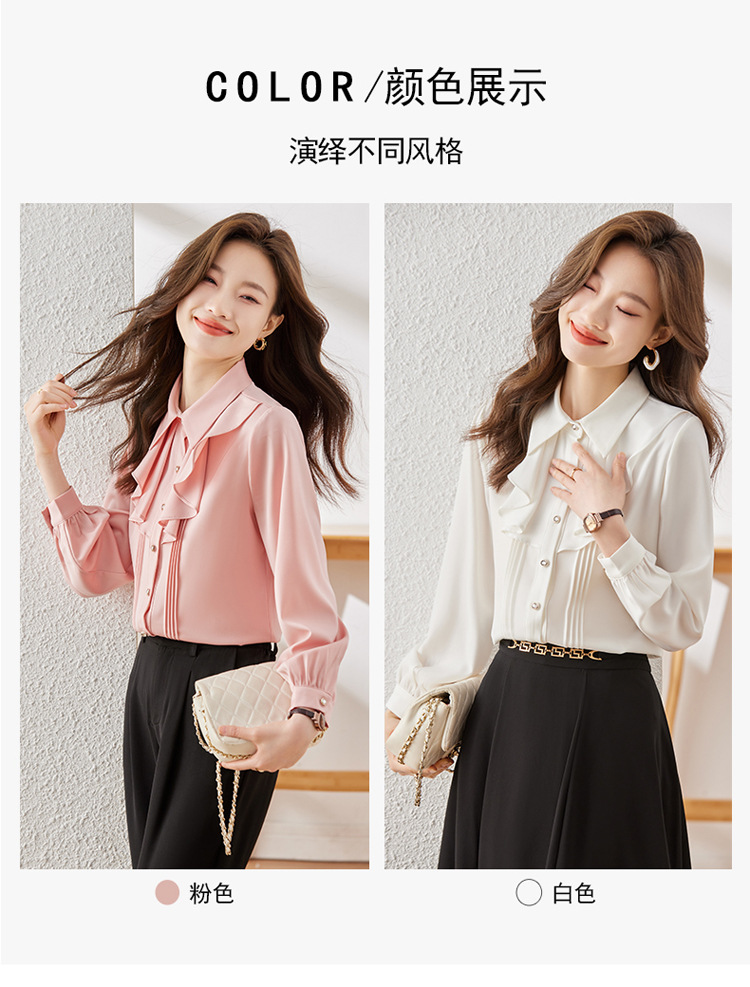 Qigu Niang 이른 가을 흰색 긴팔 셔츠 여성용 새로운 여성용 느슨한 슬리밍 탑 라이트 성숙한 프랑스 틈새 셔츠