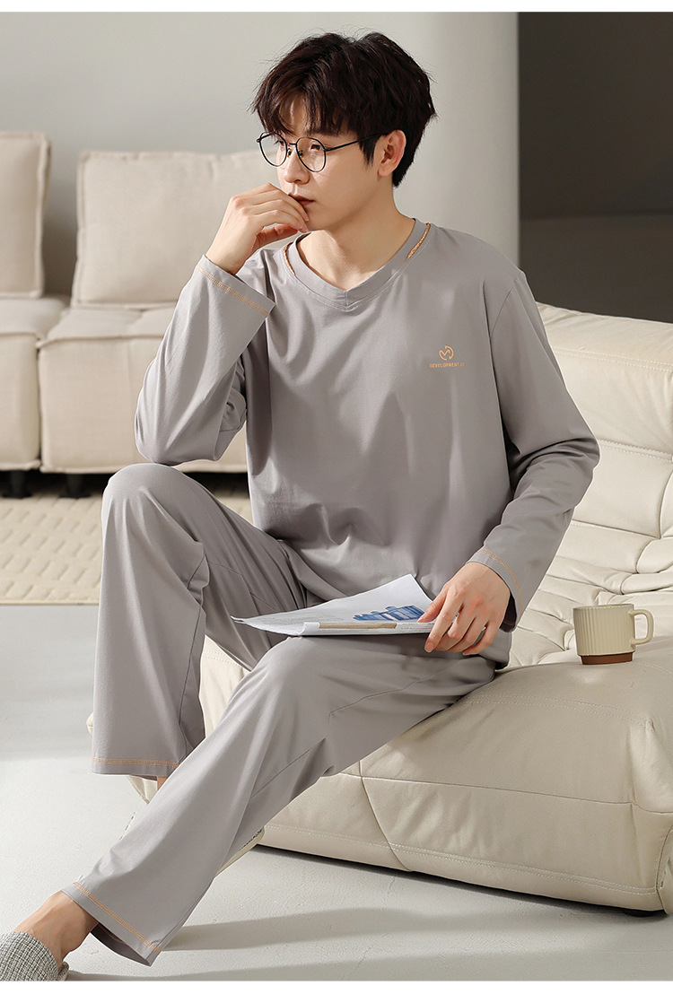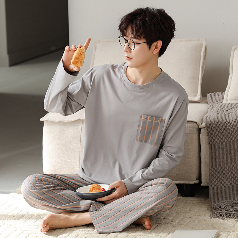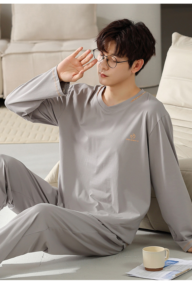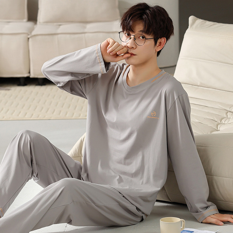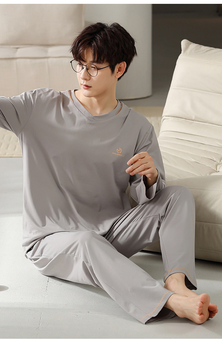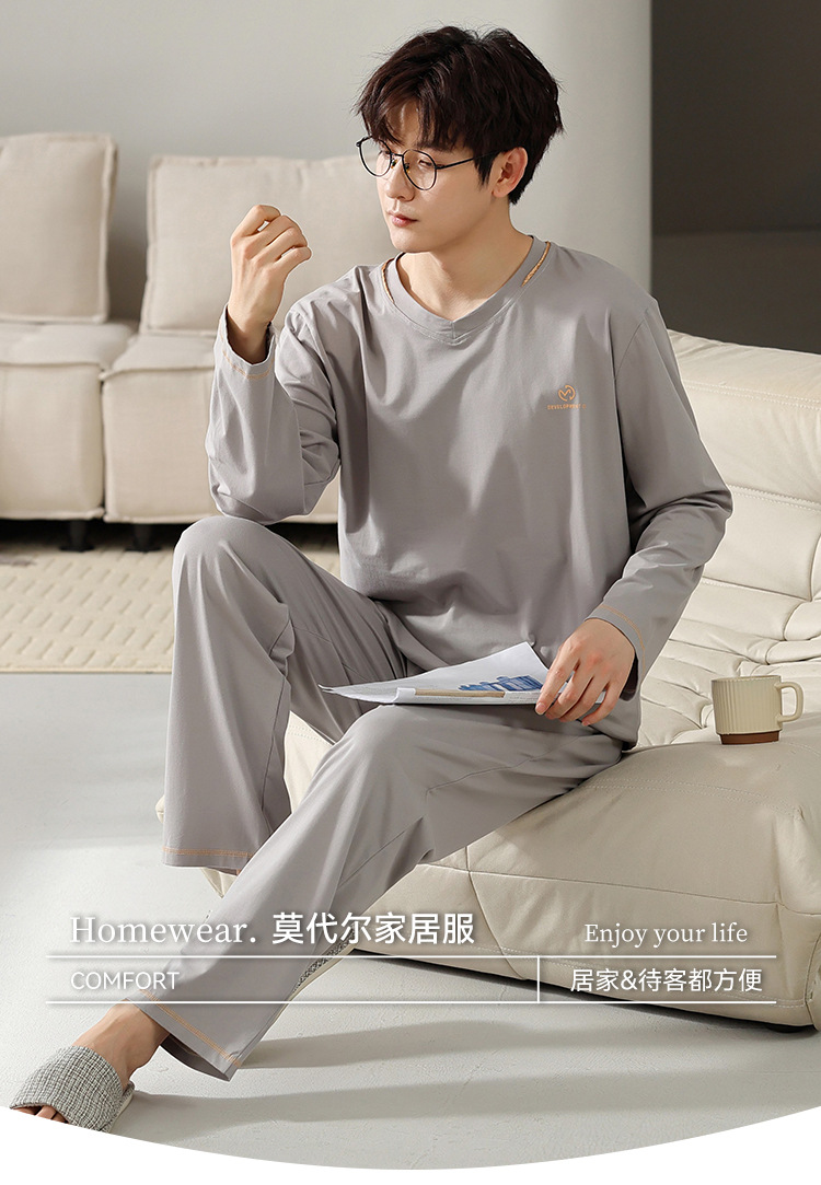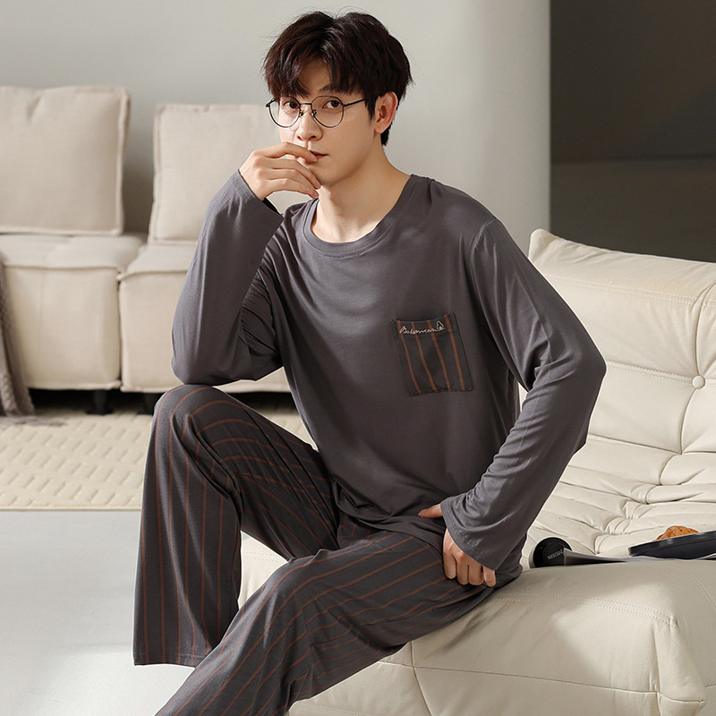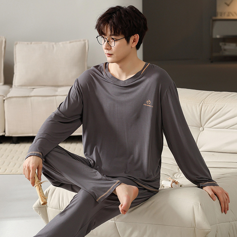 남자의 잠옷 남자의 봄과 가을 모달 청소년 긴 소매 고급 감각 느슨한 플러스 사이즈 가정 옷 세트 도매
