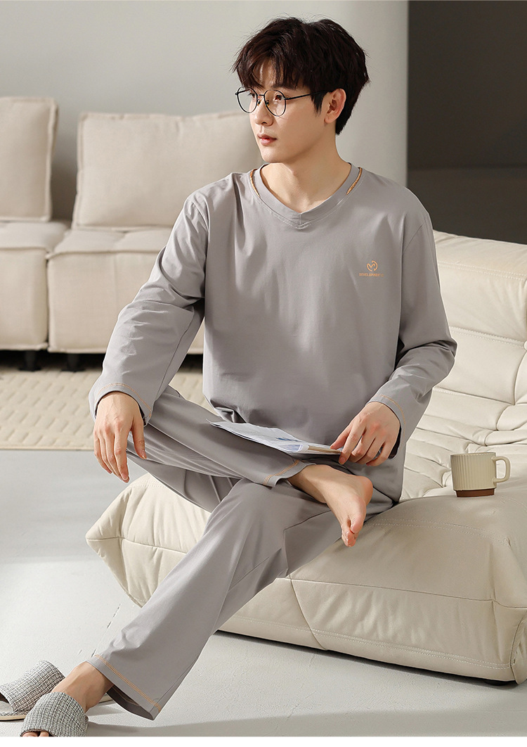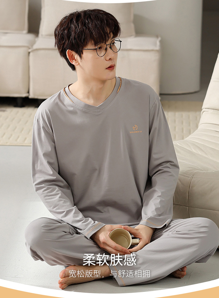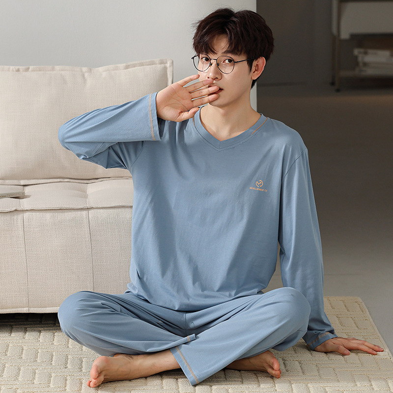 남자의 잠옷 남자의 봄과 가을 모달 청소년 긴 소매 고급 감각 느슨한 플러스 사이즈 가정 옷 세트 도매스토어 가기