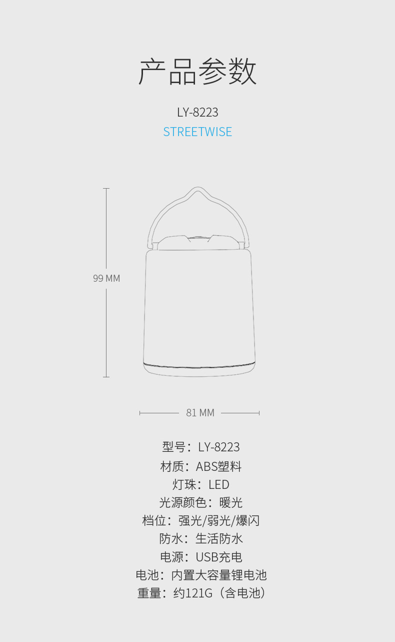 • LY-8288A 야외 캠핑 램프 [카키색, 내장 배터리 1200mAh]