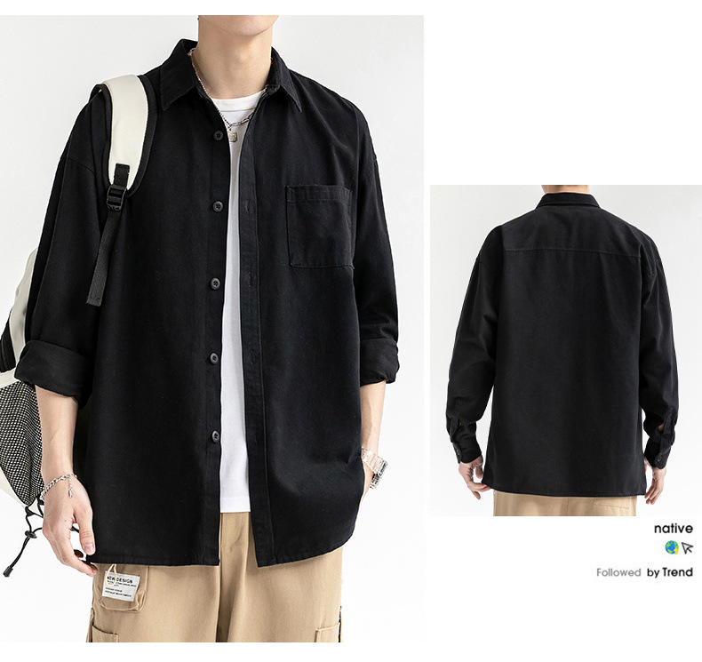 긴 소매 셔츠 남자의 순면 2023 가을 새로운 유행 학생 모든 매치 재킷 잘 생긴 한국 남자 셔츠