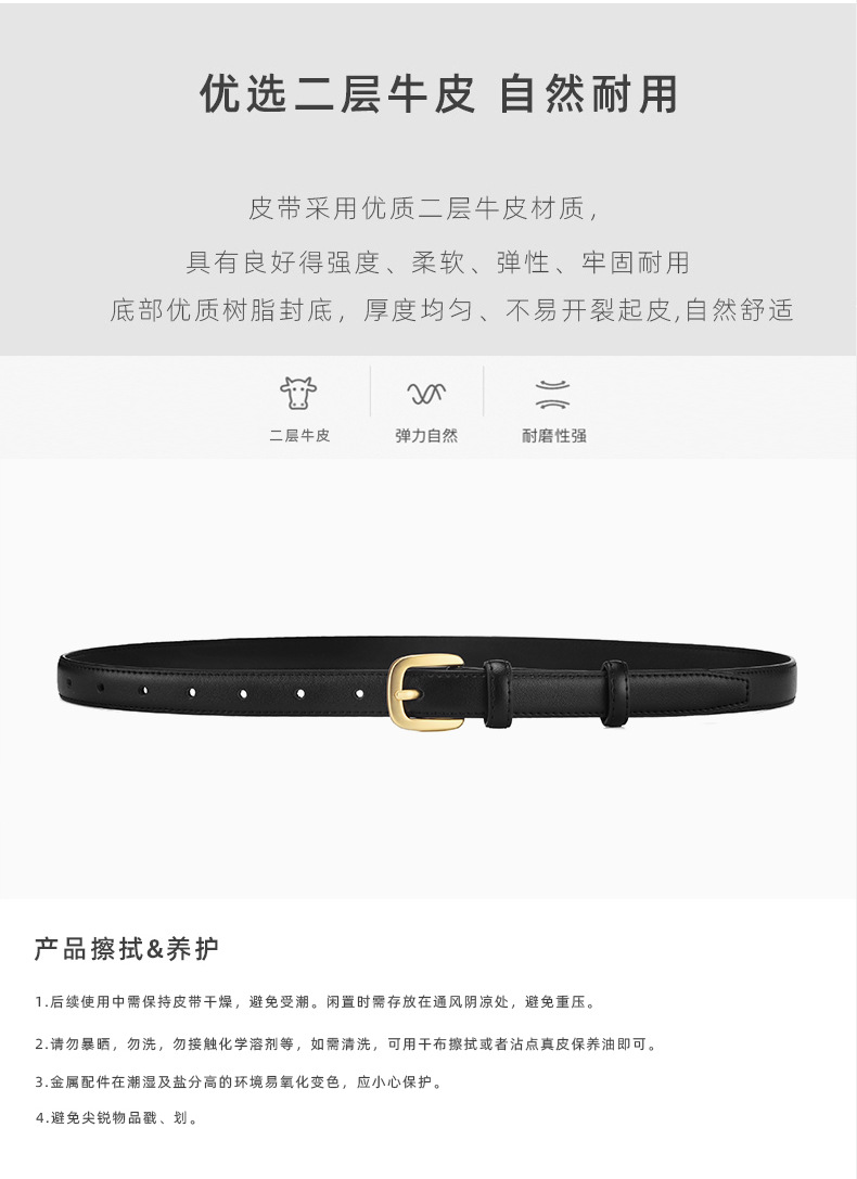벨트 걸스 정품 가죽 심플 올 매치 하이 엔드 바지 벨트 여성용 정품 가죽 블랙 핀 버클 장식 심플 인 스타일스토어 가기