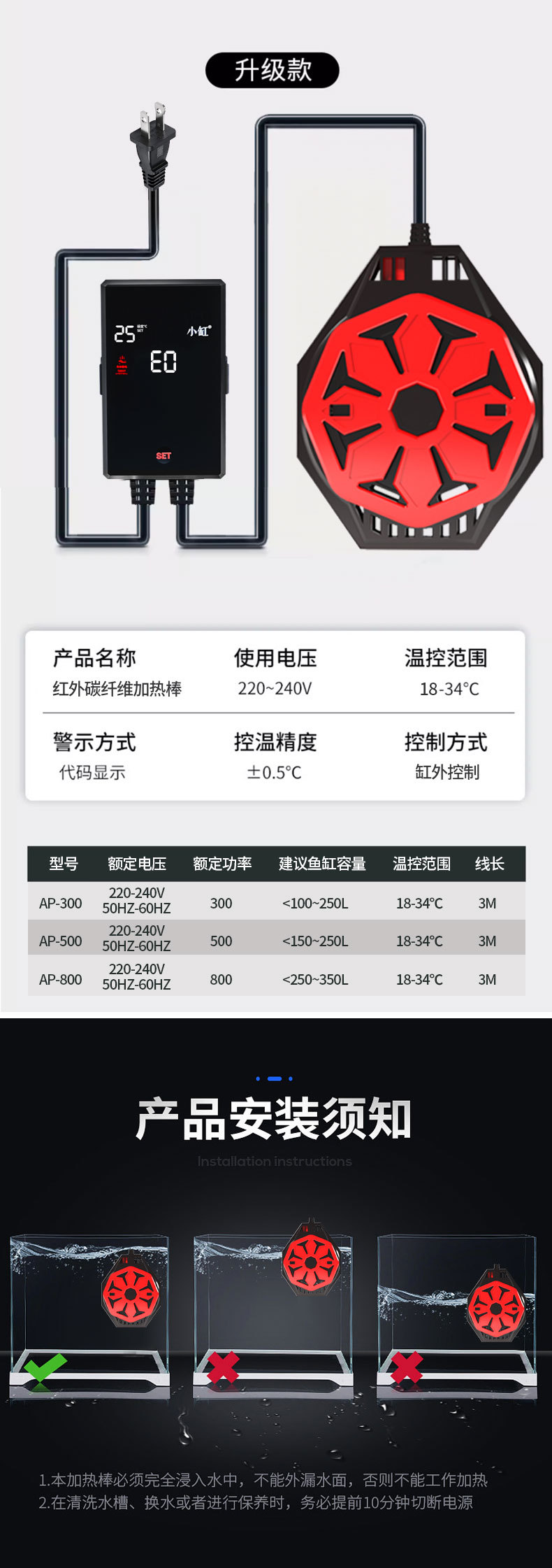 탄소 섬유 히팅 봉 히팅 봉 방폭 자동 일정 온도 거북이 탱크 수족관 히터 어항 히팅 봉,스토어 가기