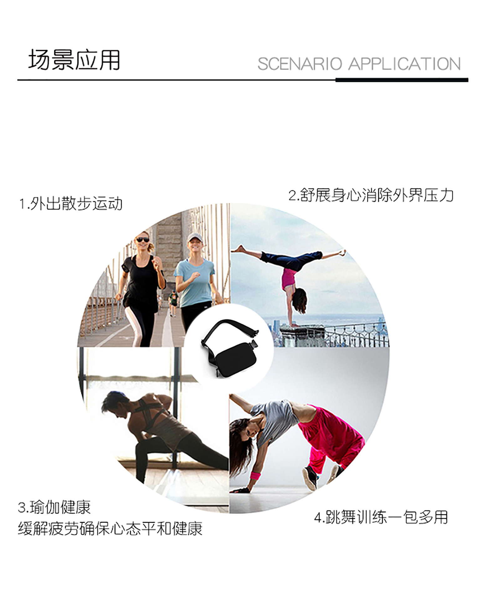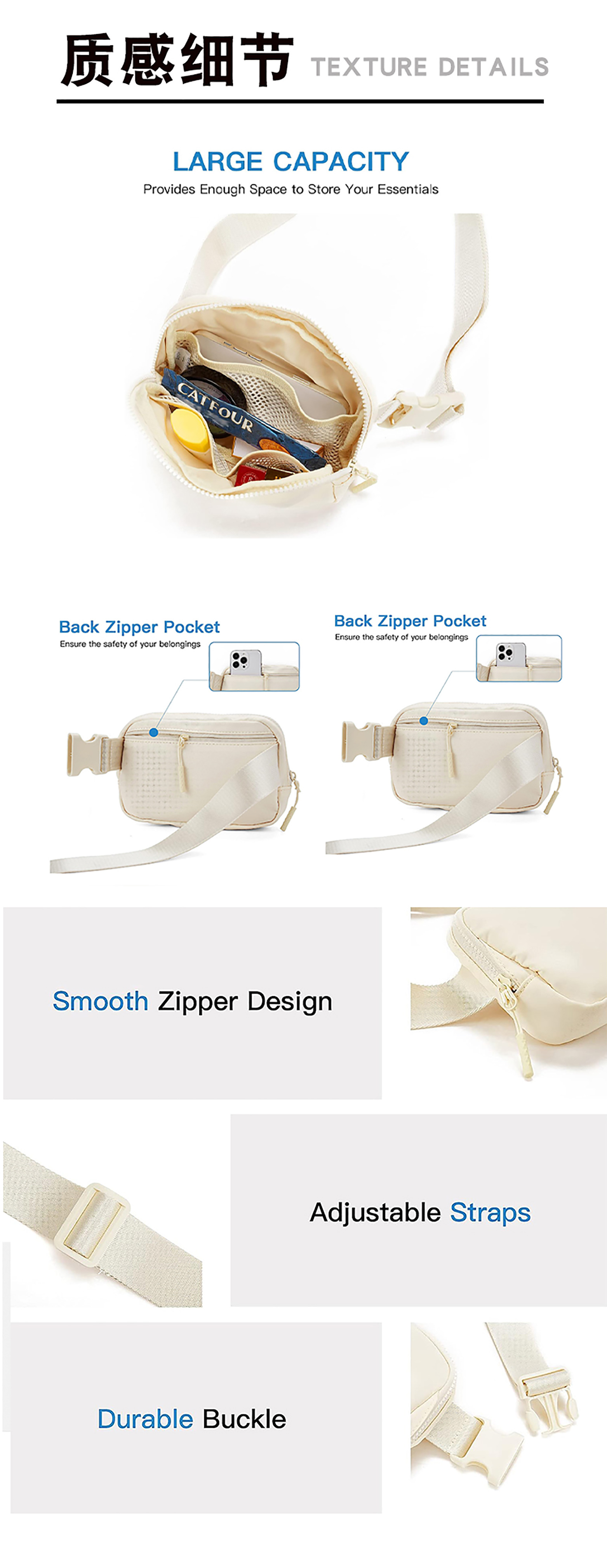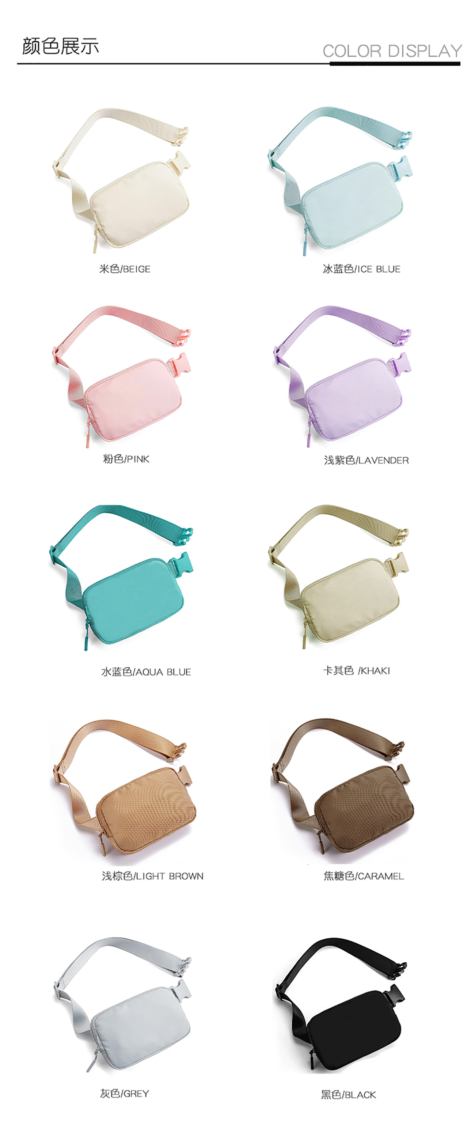 Lulu 같은 스타일의 가방 허리 가방 폴리 에스터 방수 가슴 가방 야외 스포츠 러닝 폴리 에스터 허리 가방 남성과 여성의 휴대 전화 허리 가방