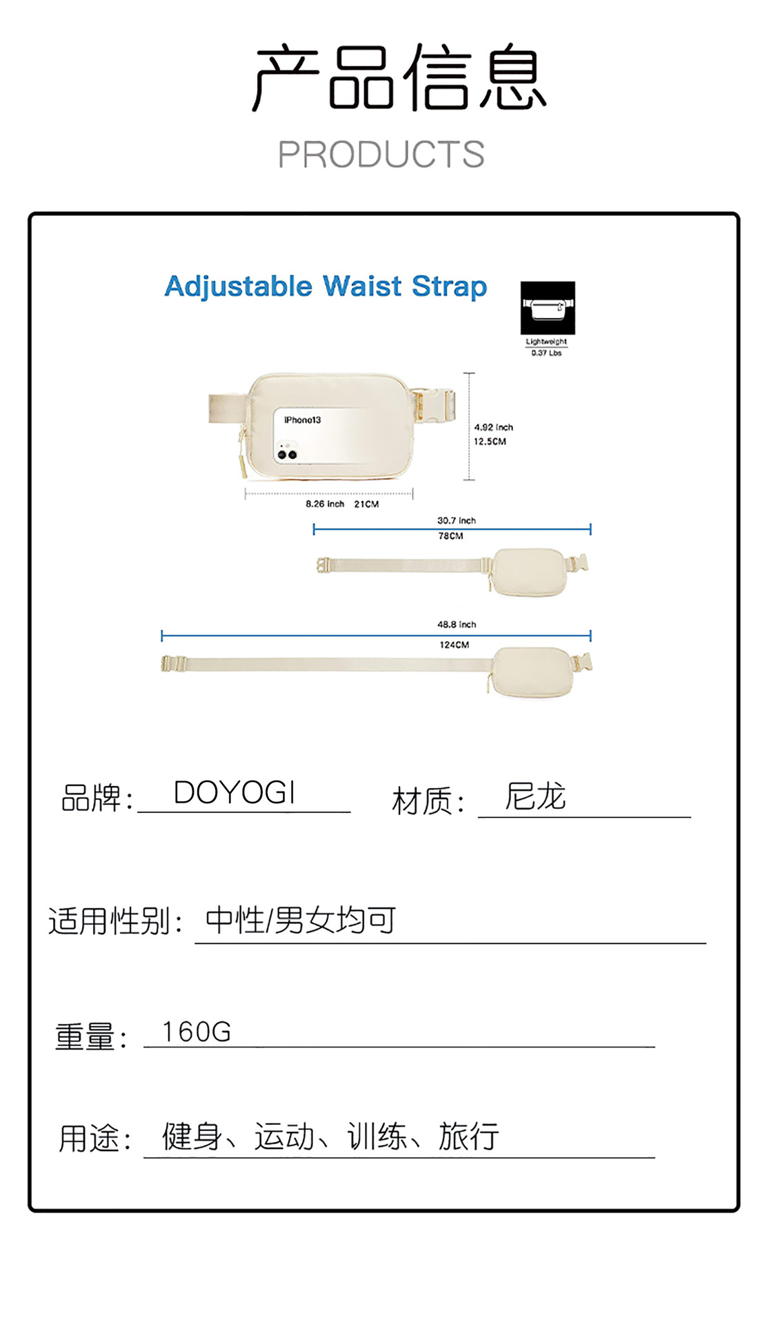 Lulu 같은 스타일의 가방 허리 가방 폴리 에스터 방수 가슴 가방 야외 스포츠 러닝 폴리 에스터 허리 가방 남성과 여성의 휴대 전화 허리 가방스토어 가기