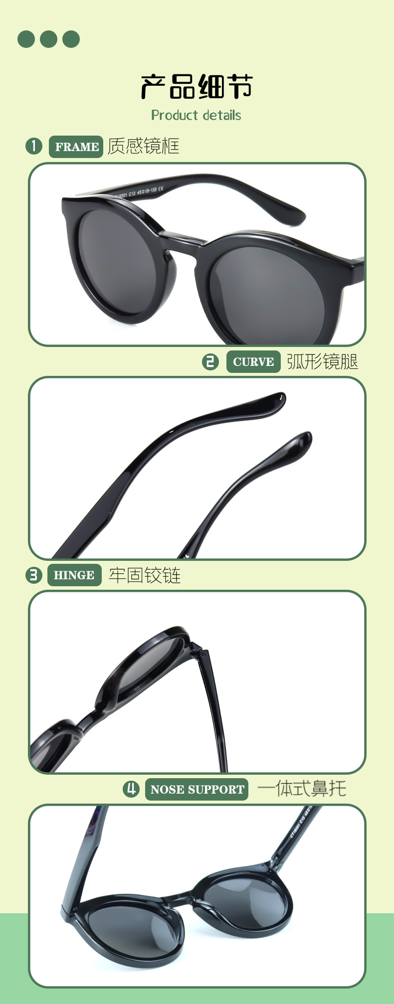 新款儿童偏光太阳镜可爱卡通兔子耳朵造型遮光眼镜小朋友圆框墨镜