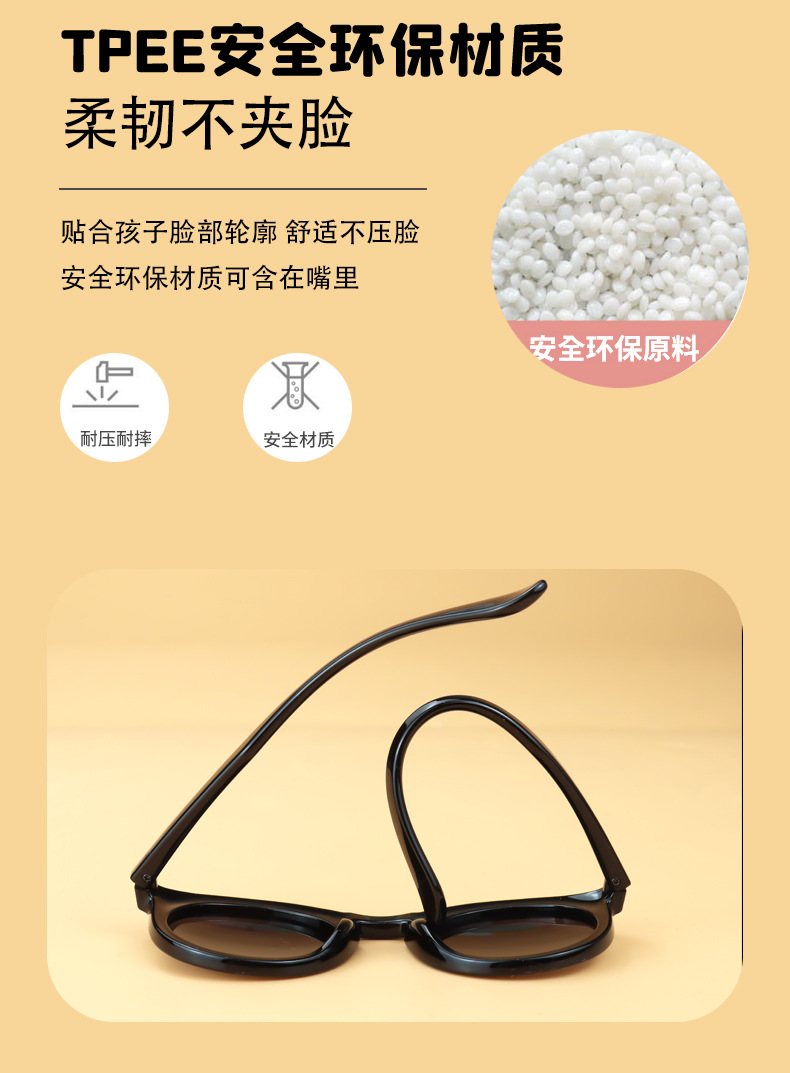 2024新款儿童偏光硅胶太阳镜宝宝男女儿童方框防紫外线墨镜11102
