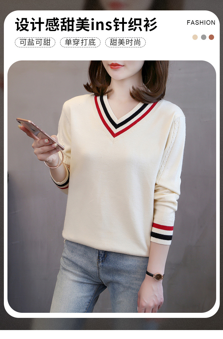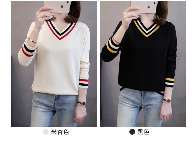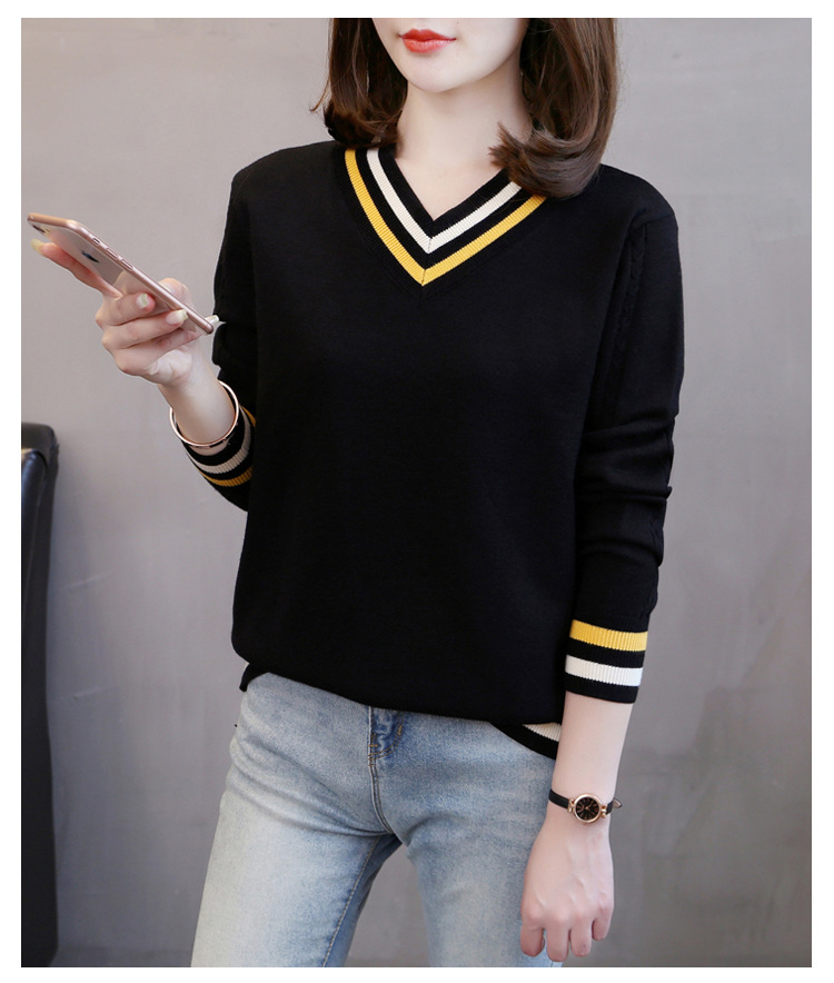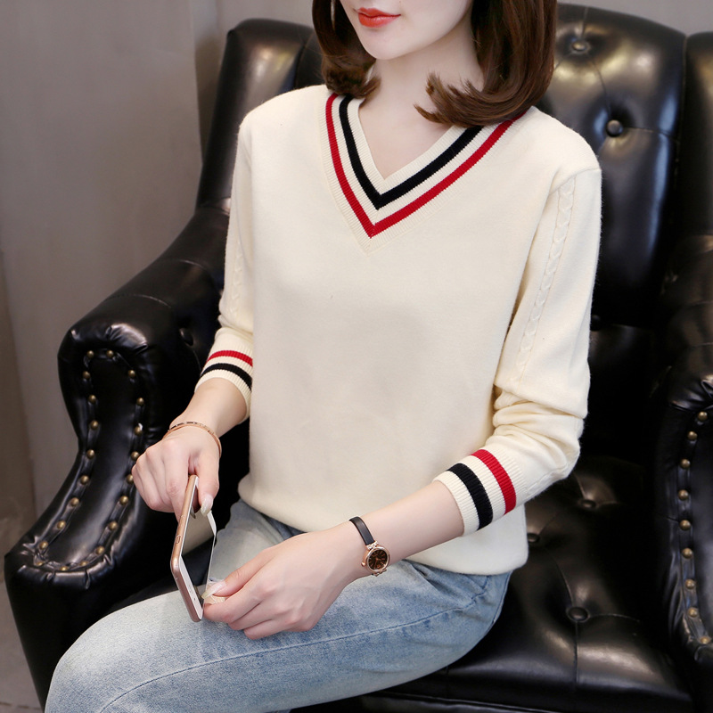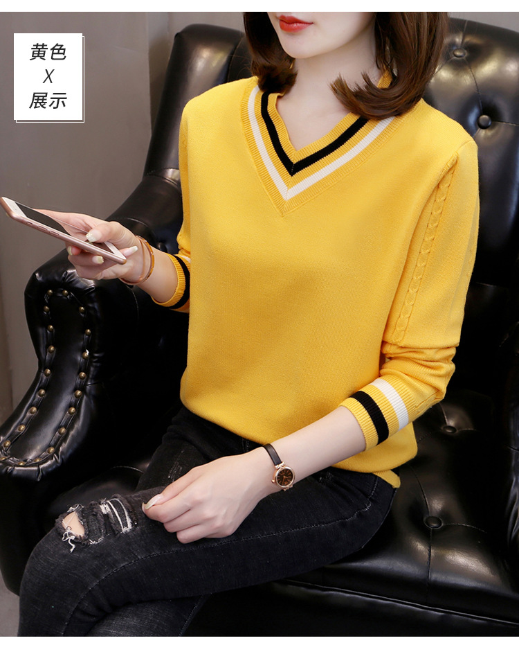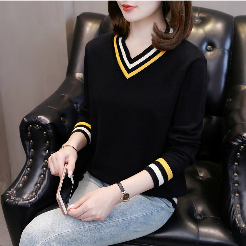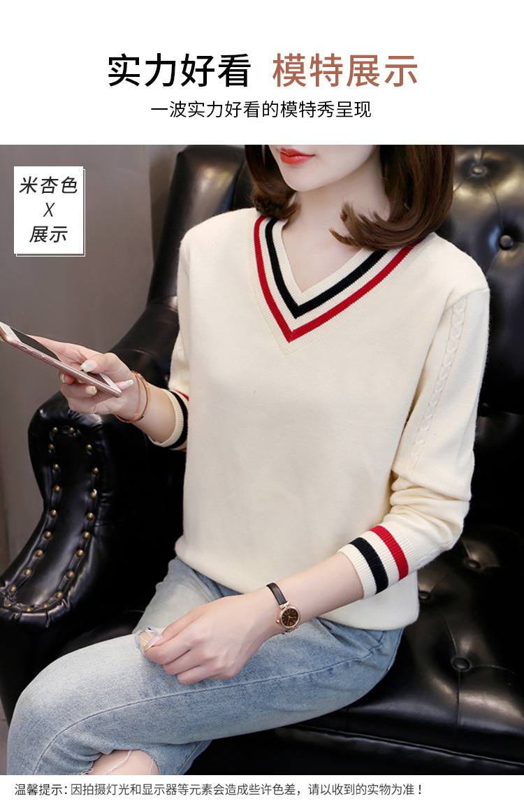 2025년 유행하는 브이넥 긴팔 니트 여성 가을 겨울 신상 패션 다용도 캐주얼 배색 상의 여성 스웨터스토어 가기