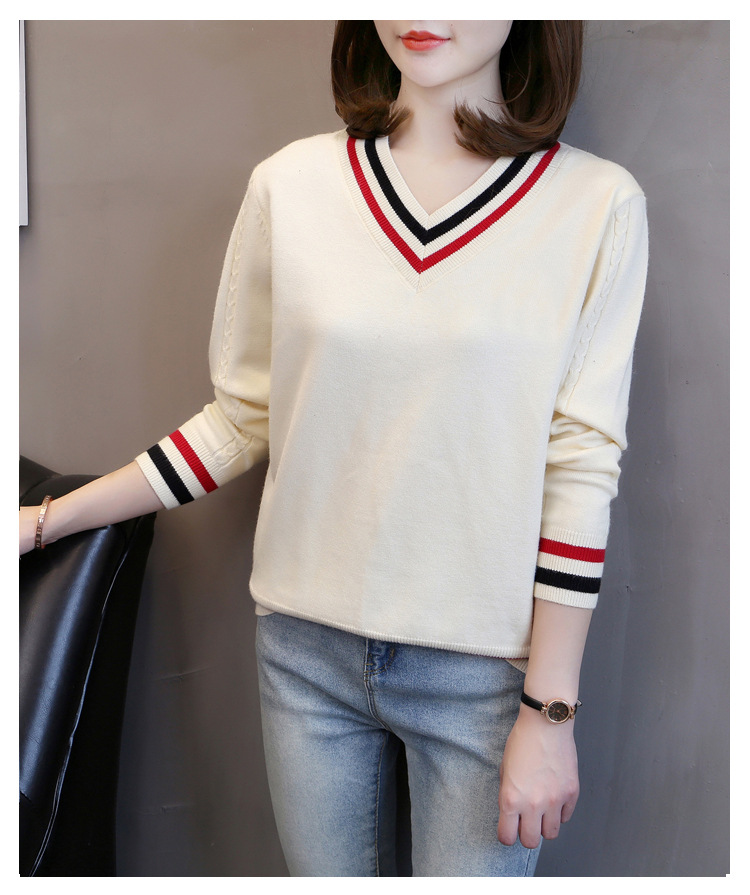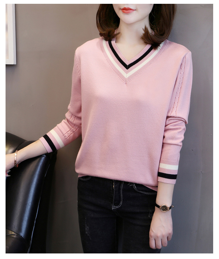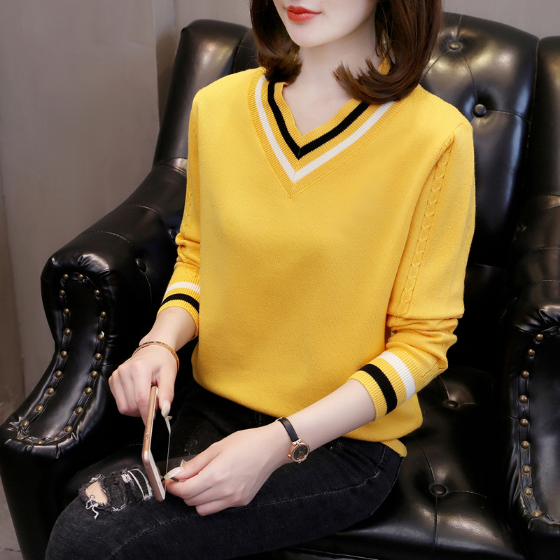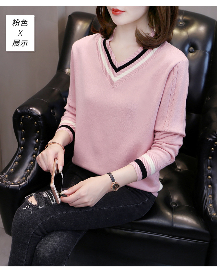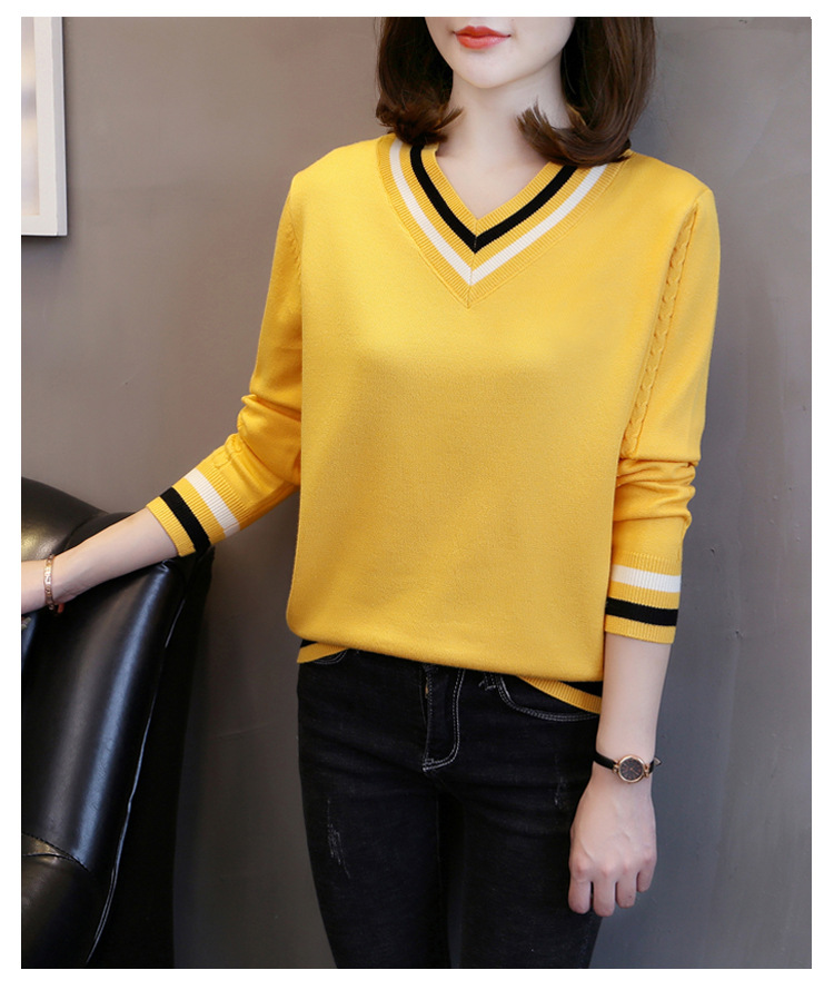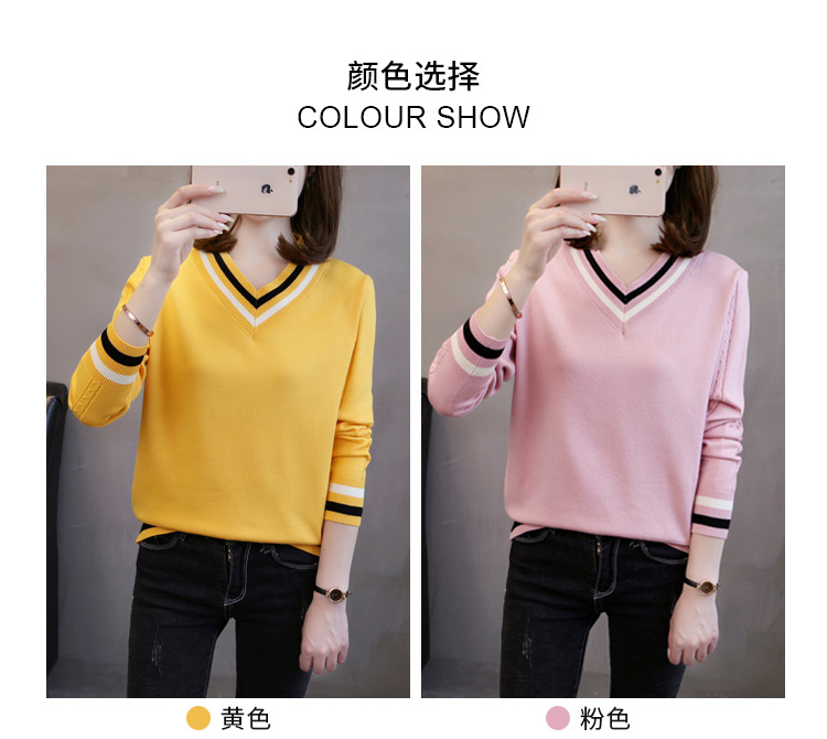 2025년 유행하는 브이넥 긴팔 니트 여성 가을 겨울 신상 패션 다용도 캐주얼 배색 상의 여성 스웨터스토어 가기