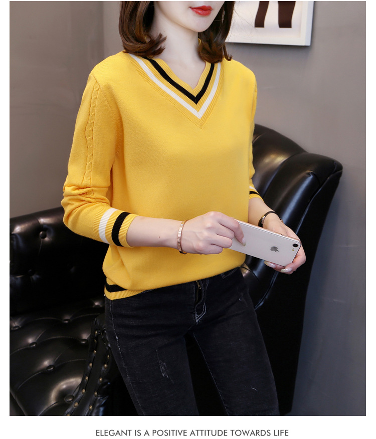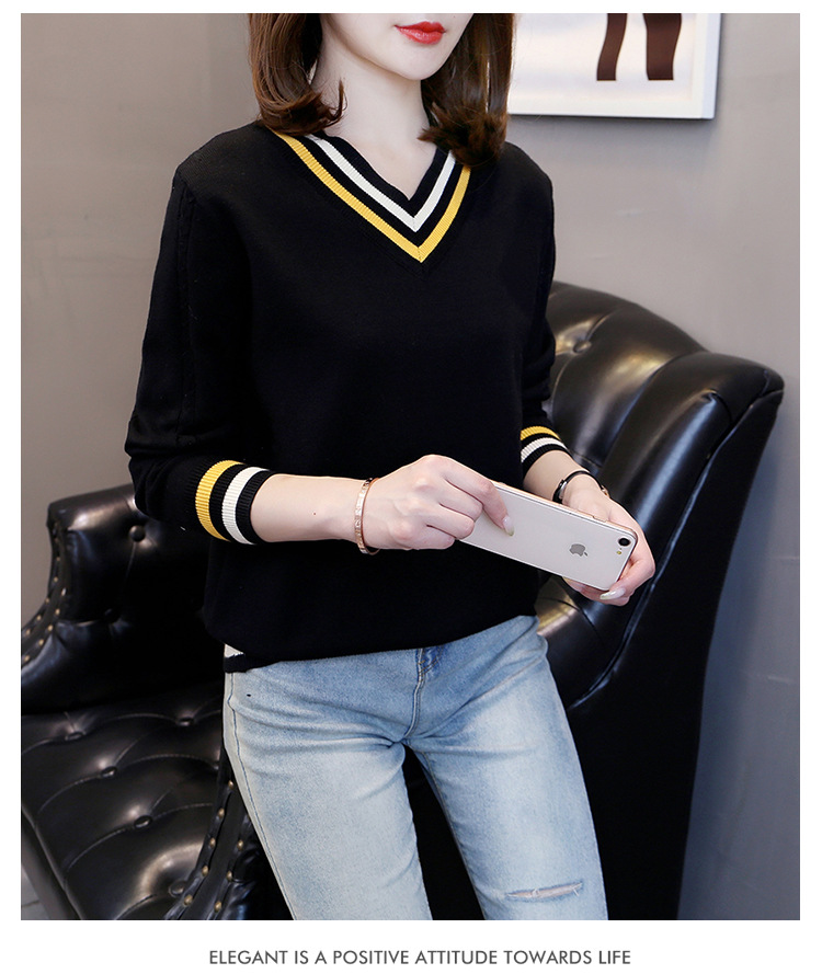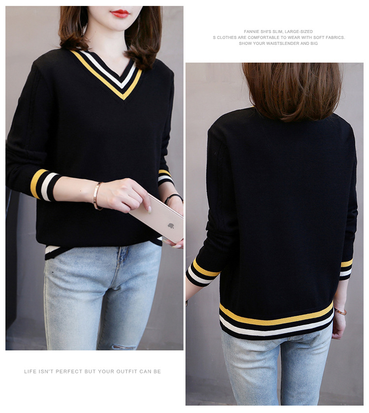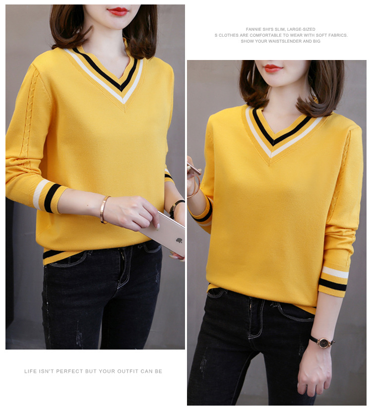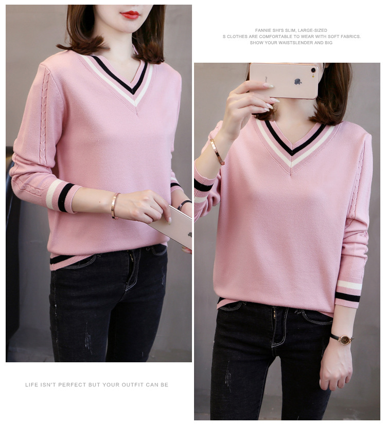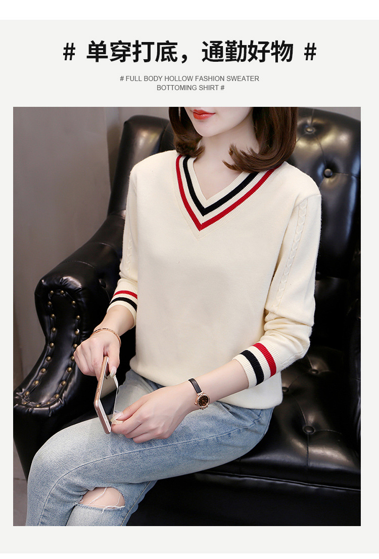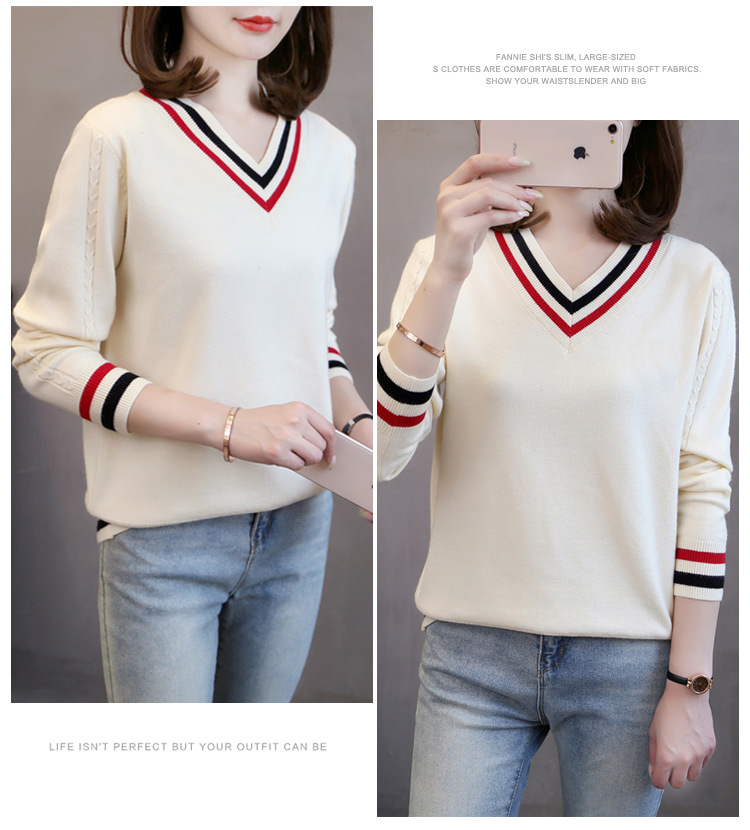 2025년 유행하는 브이넥 긴팔 니트 여성 가을 겨울 신상 패션 다용도 캐주얼 배색 상의 여성 스웨터스토어 가기