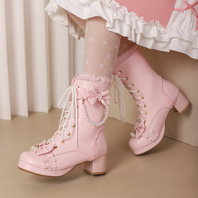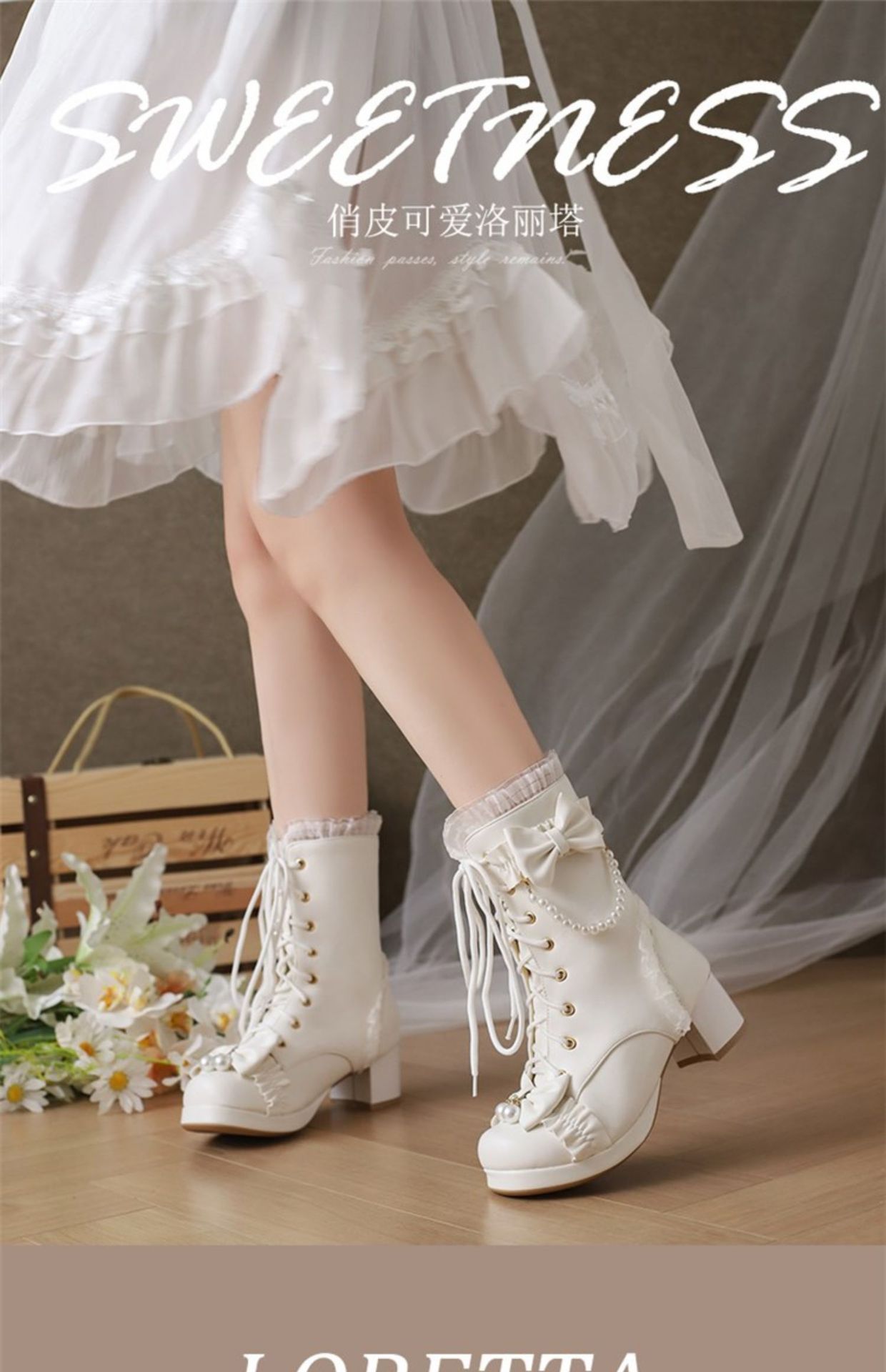 오리지널 로리타 달콤한 페르시 보우 미디엄 부츠 유행 두꺼운 굽 두꺼운 단독 미디엄 부츠 어린이 플러스 사이즈 마틴 부츠스토어 가기
