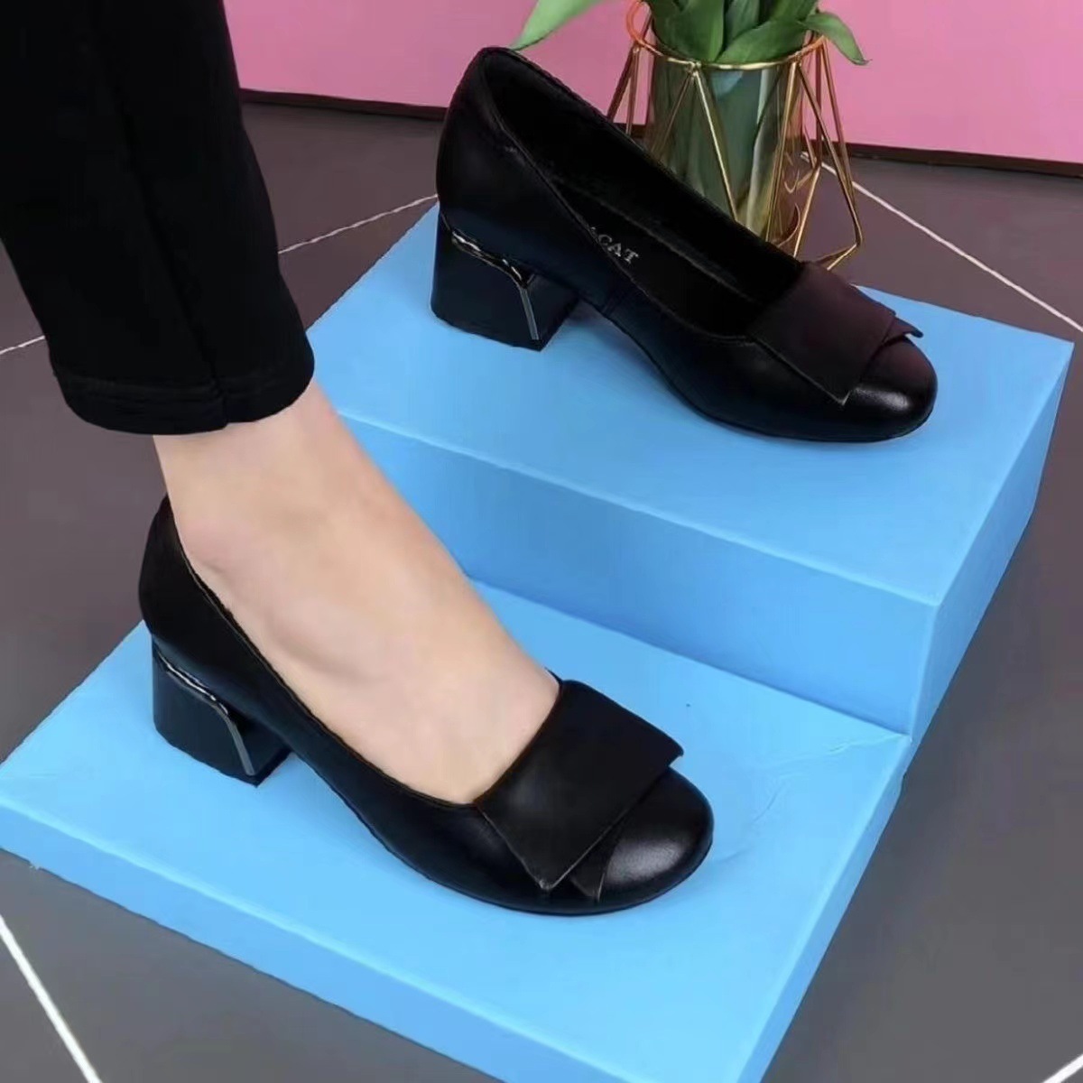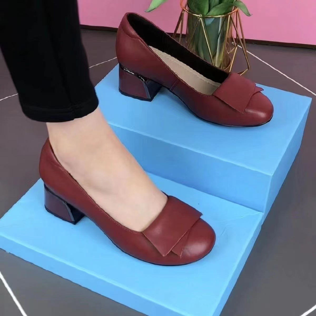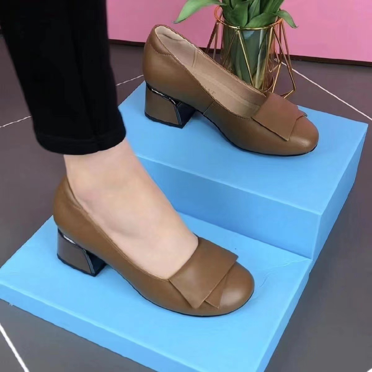 둥근 발가락 낮은 입 플랫 힐 가죽 봄과 가을 여성 신발 부드러운 바닥 어머니 신발 여성 플랫 가죽 신발 패션 신발 캐주얼 신발
