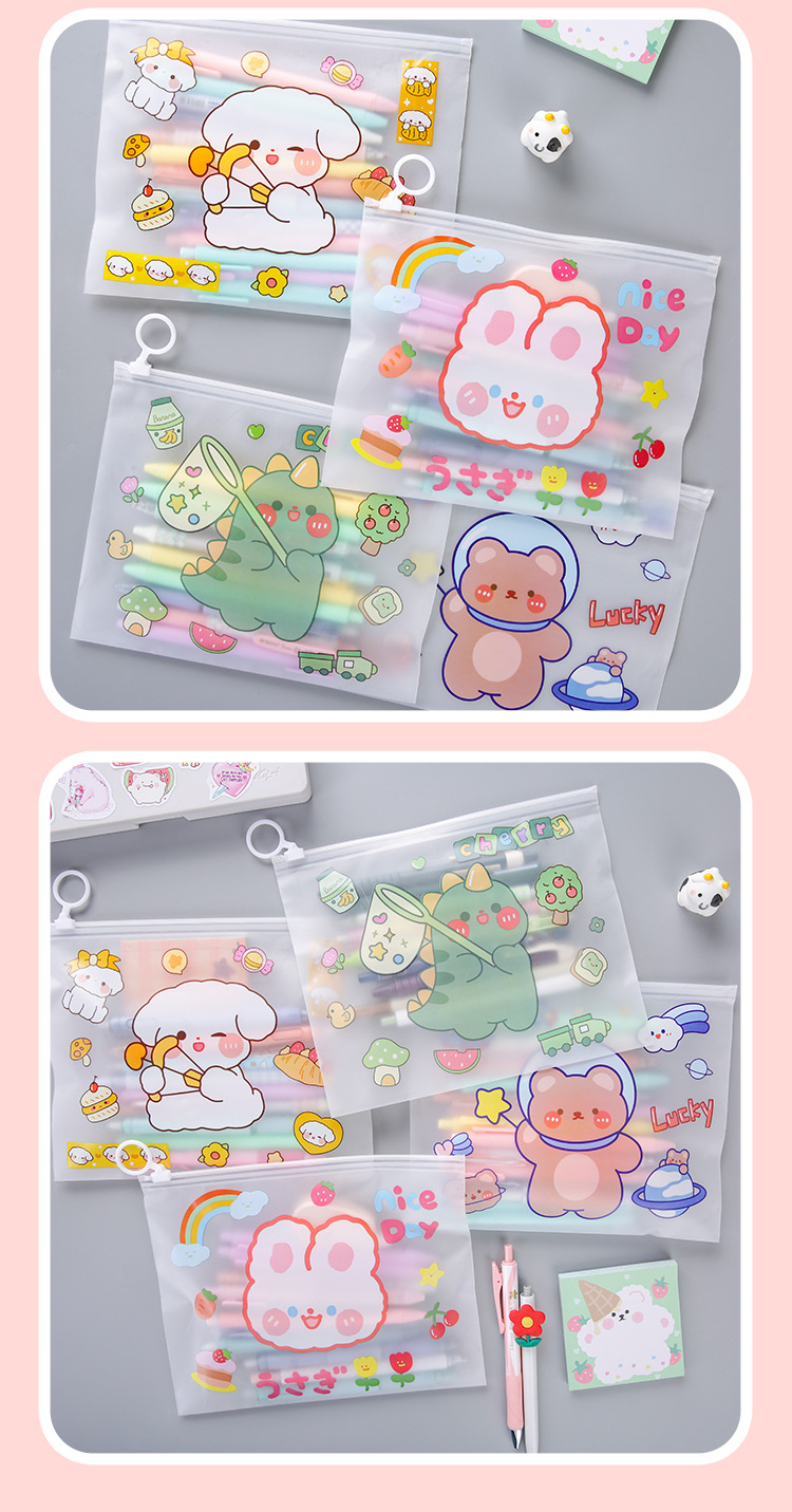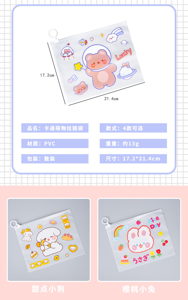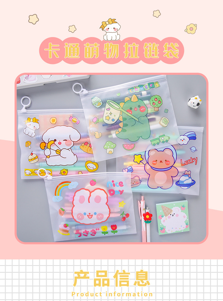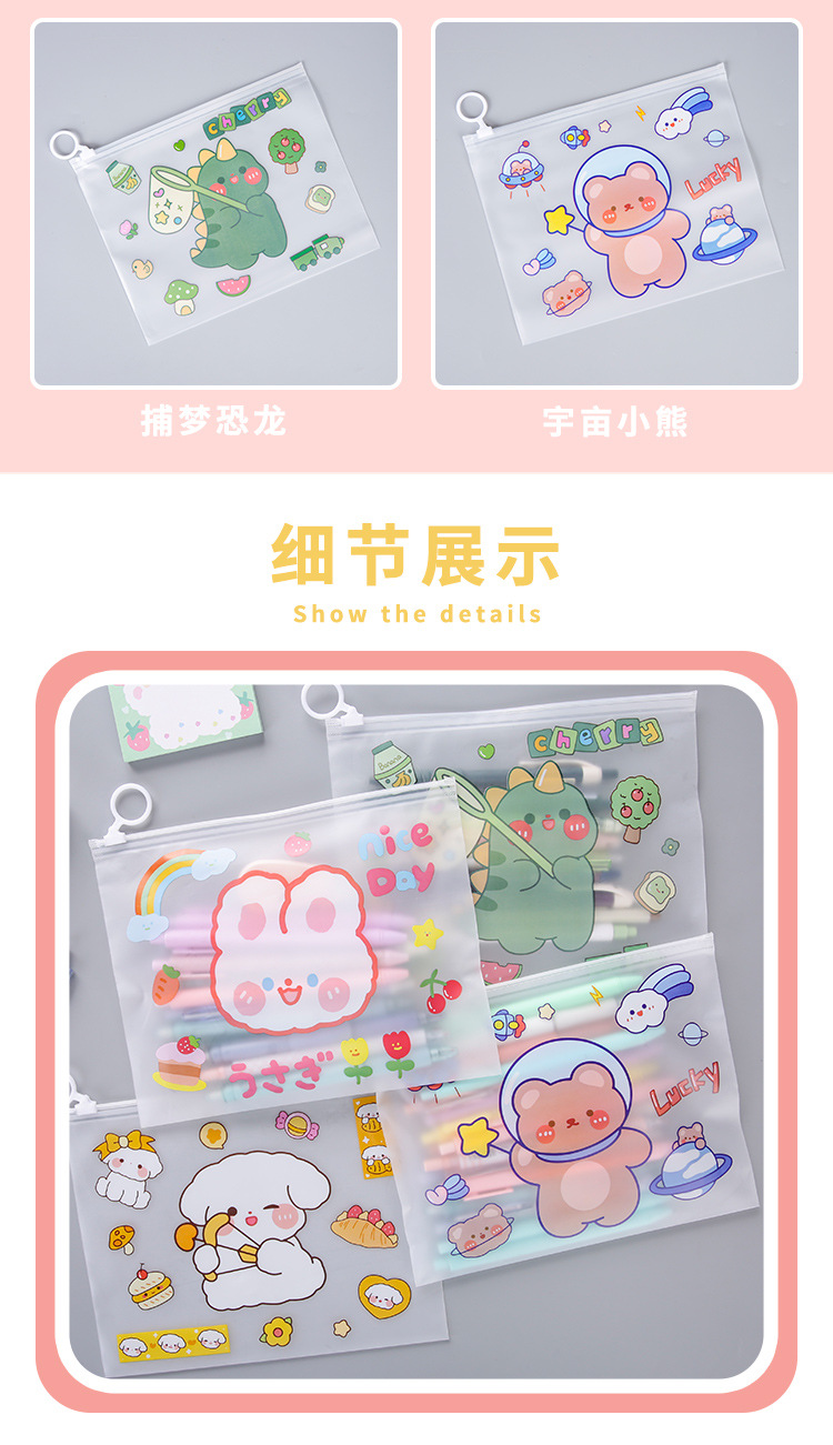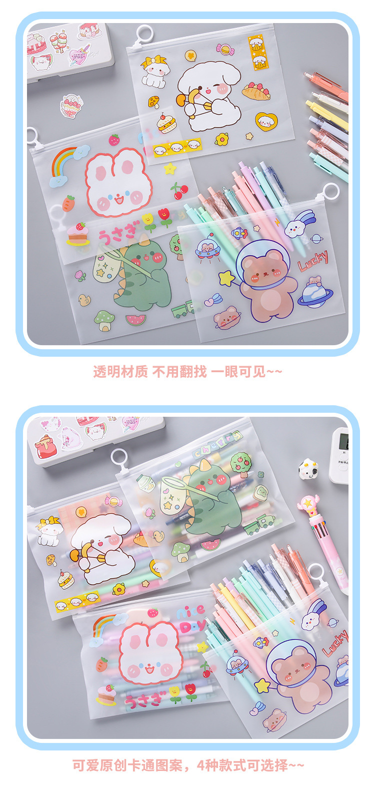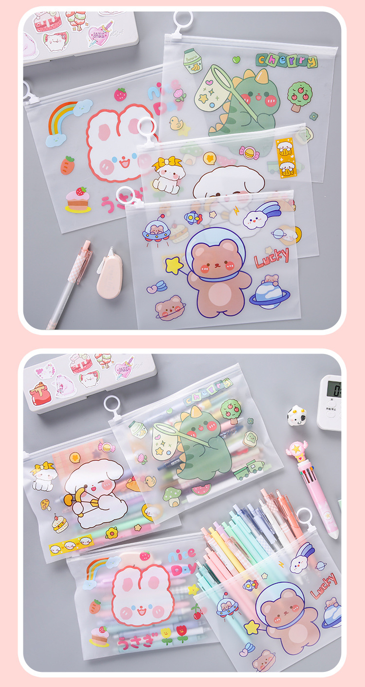 만화 투명 초등학교 귀여운 파일 가방 어린이 PP 문구 보관 가방 소녀 마음 창조 학교 시즌스토어 가기