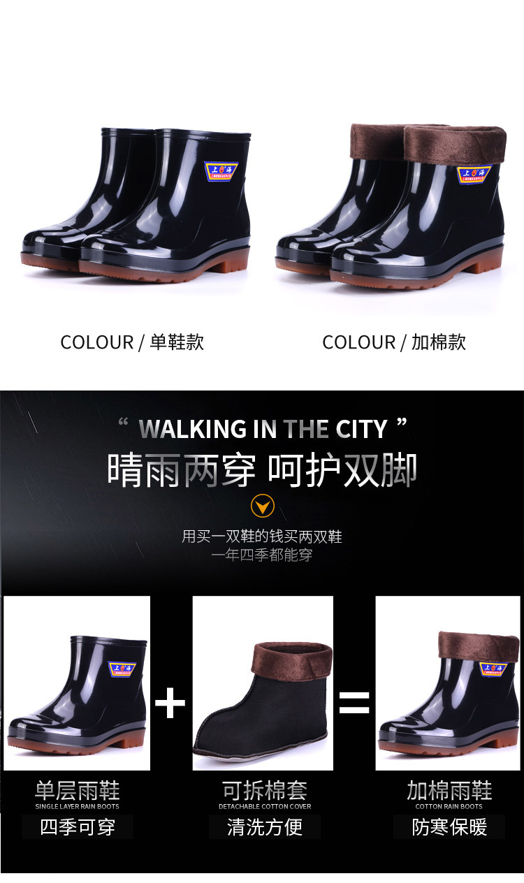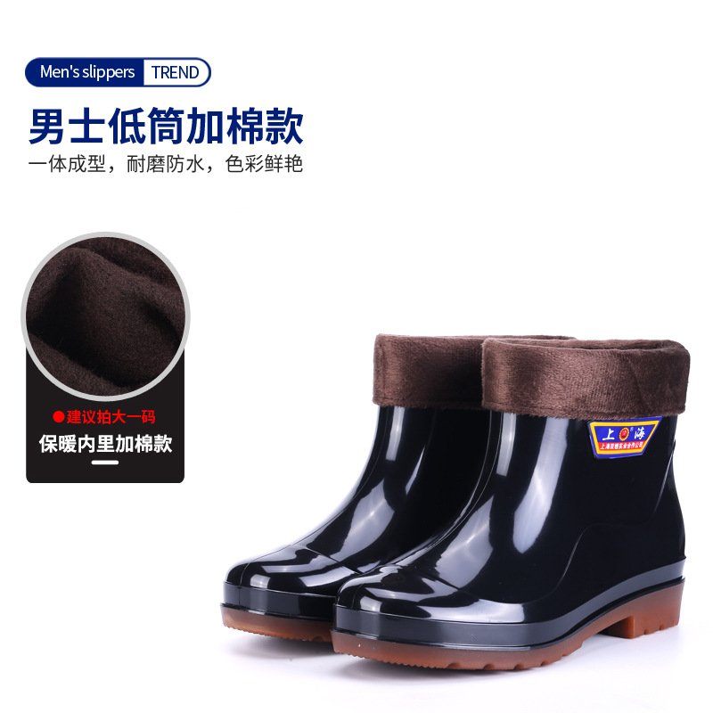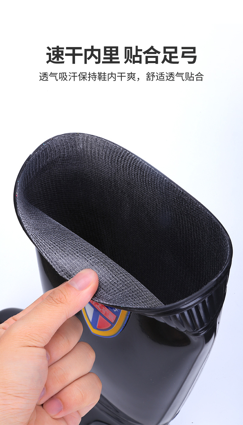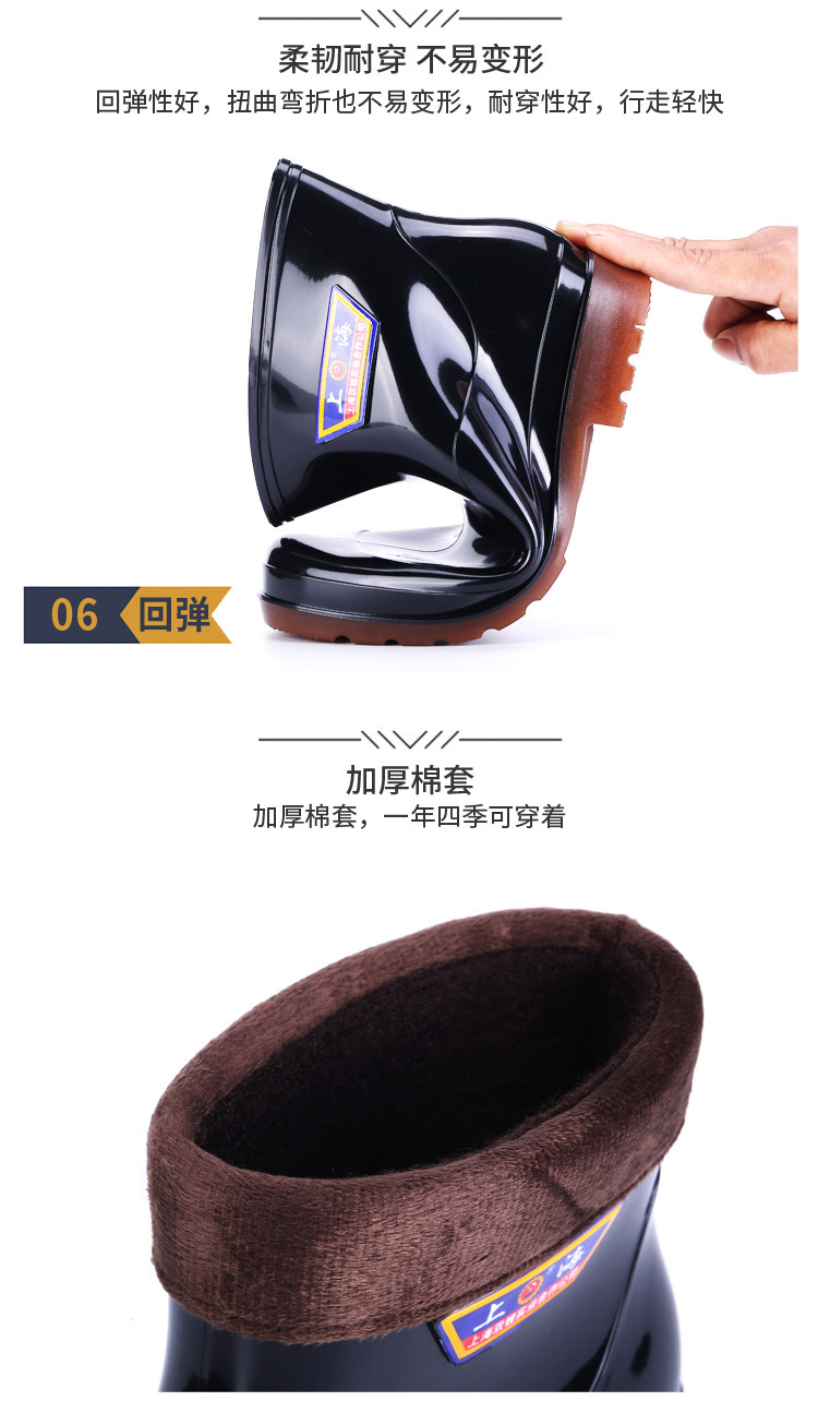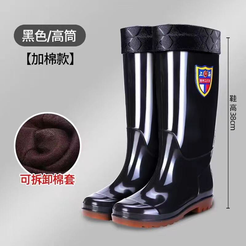 상하이 Shuangqian Sjiemei 레인 슈즈 남성용 하이 배럴 황소 힘줄 바닥 물 신발 롱 배럴 기모 미끄럼 방지 내마모성 노동 보호 건설 현장스토어 가기