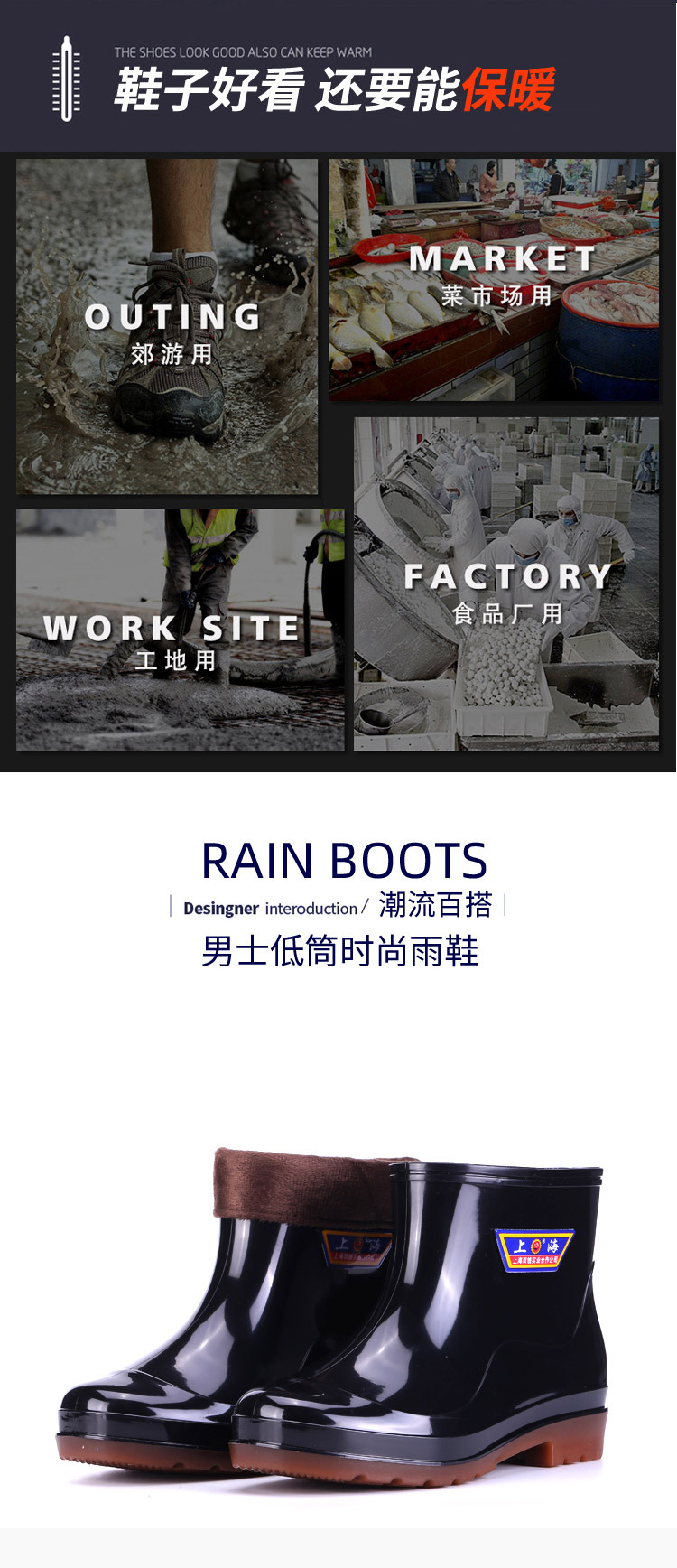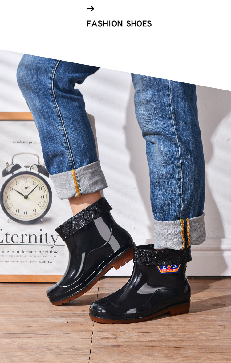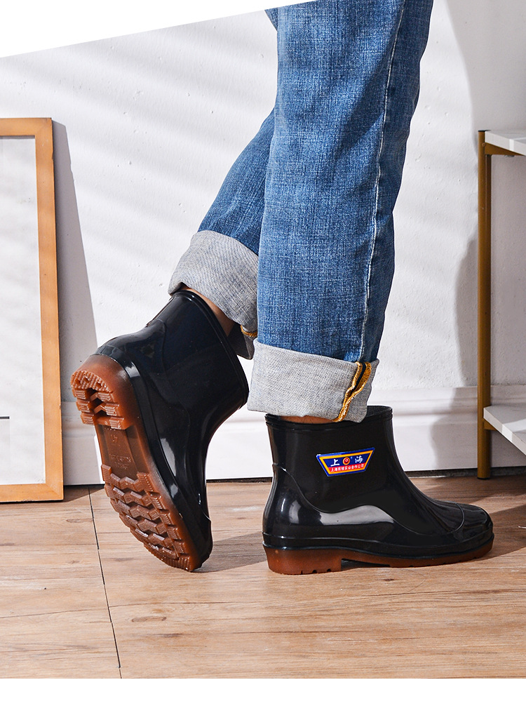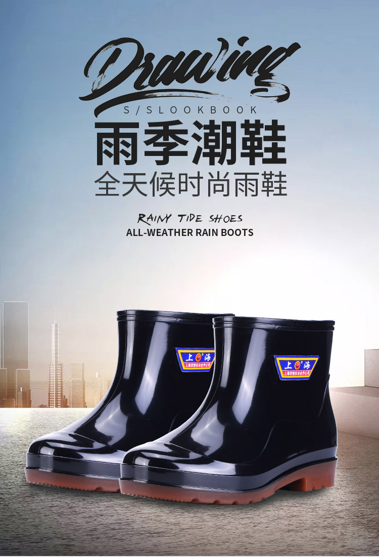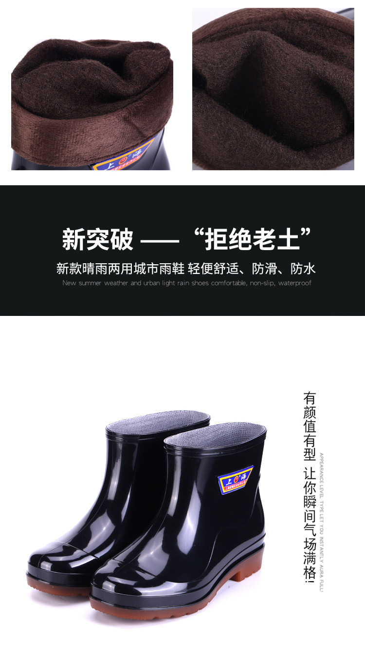 상하이 Shuangqian Sjiemei 레인 슈즈 남성용 하이 배럴 황소 힘줄 바닥 물 신발 롱 배럴 기모 미끄럼 방지 내마모성 노동 보호 건설 현장스토어 가기